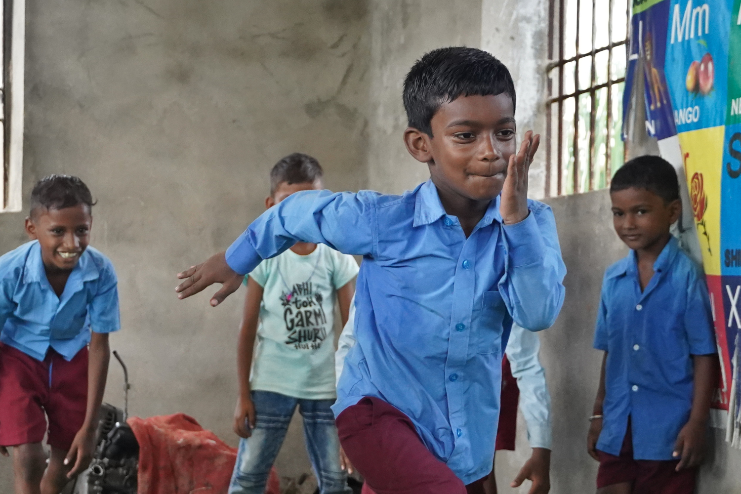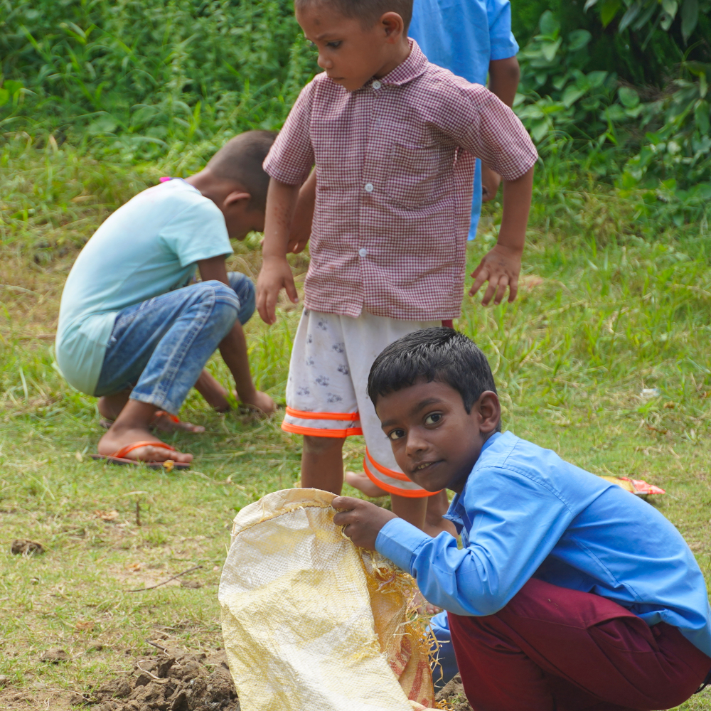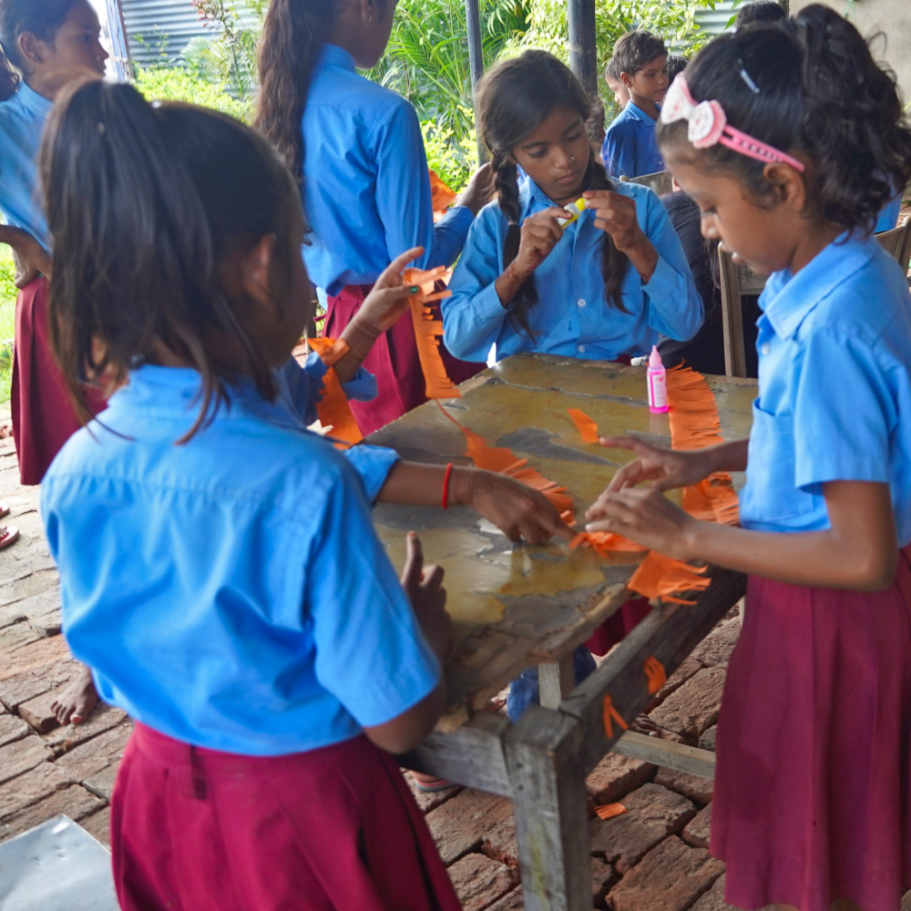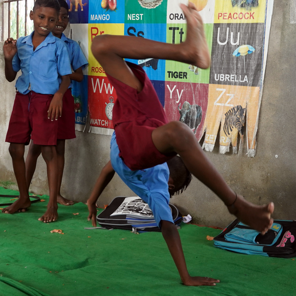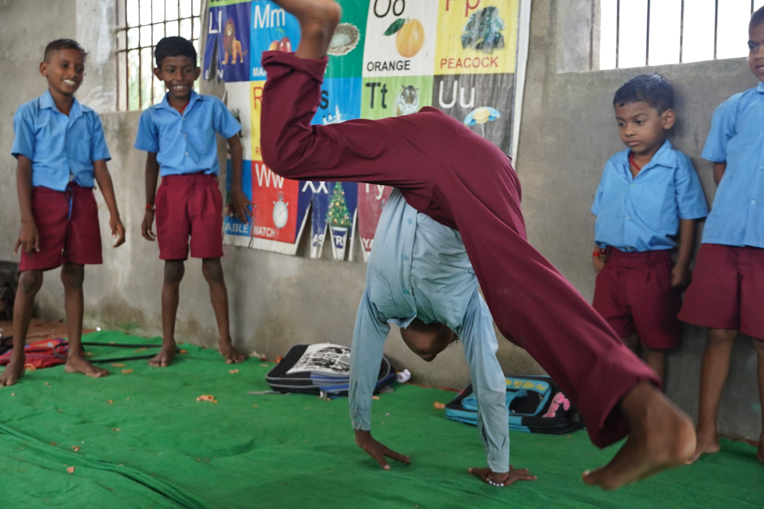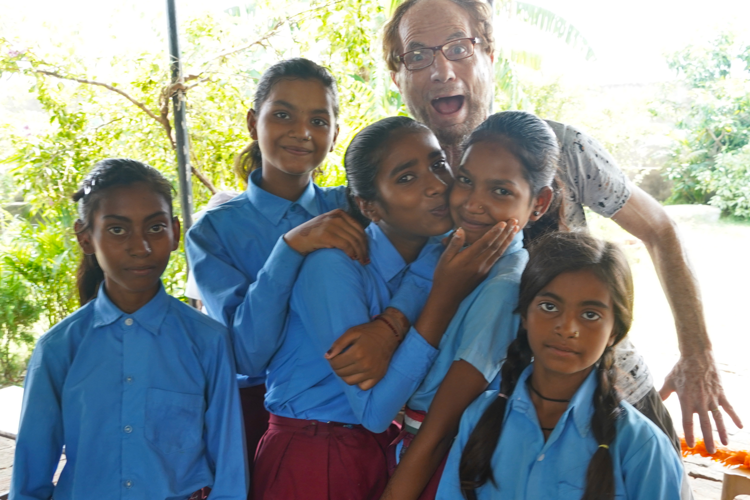 August 13 and 14 were busy days at our school in Bodh Gaya, even though there were few classes. The students and teachers, and a couple of assistants, were excitedly decking out the school for India’s Independence Day. The preparations included decorating and erecting a long, thick bamboo pole to serve as the flagpole. (Construction workers in India, where frugality is the norm, often use this kind of bamboo to construct scaffolding.) The students nonetheless took the time to join us in indulging in some handstands, cartwheels and other physical shenanigans. Good thing it wasn’t a competition — they might have beaten us hands down, as it were.