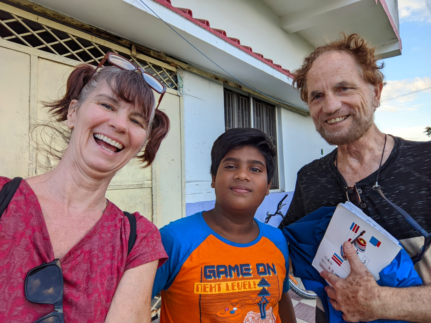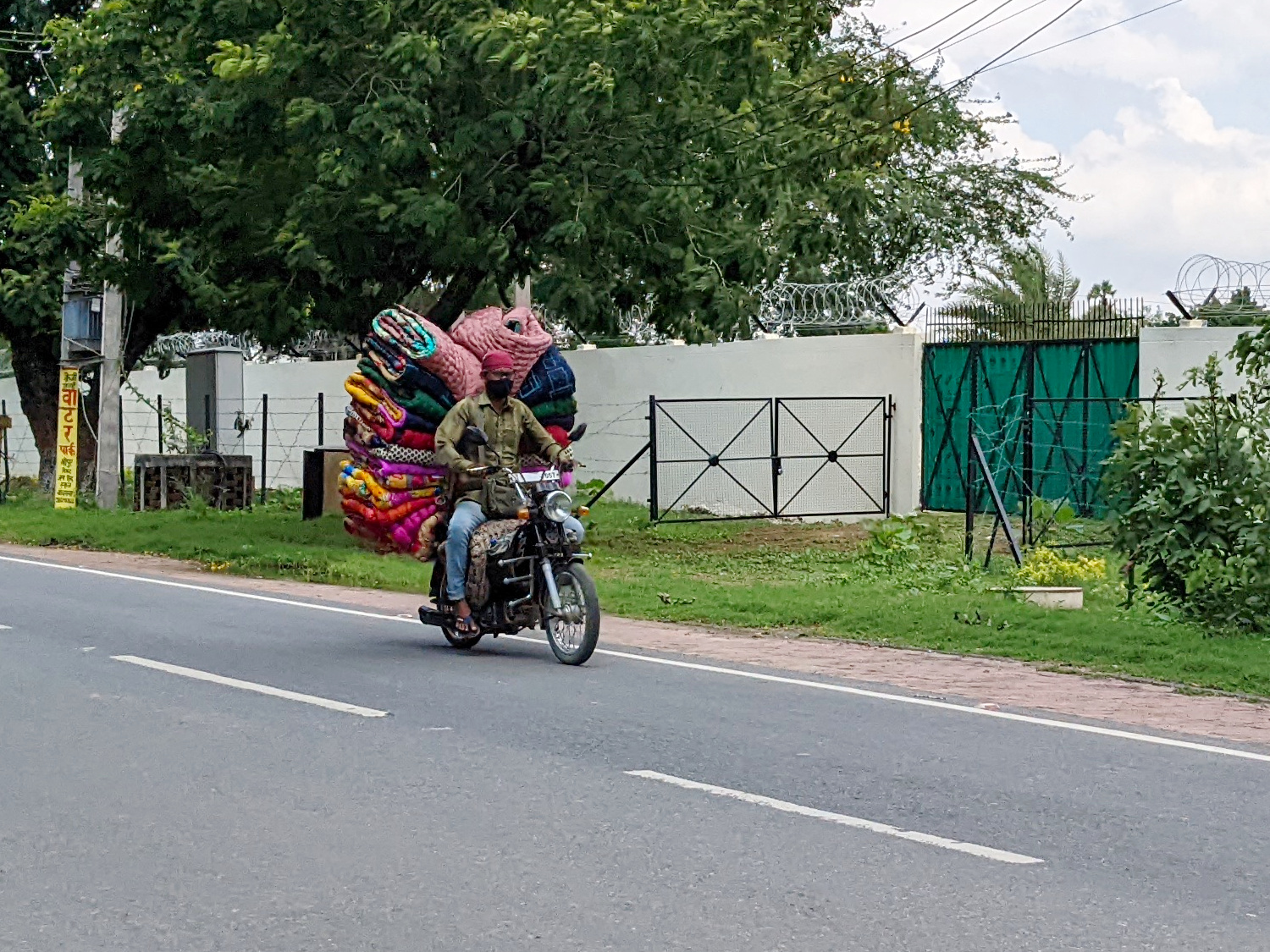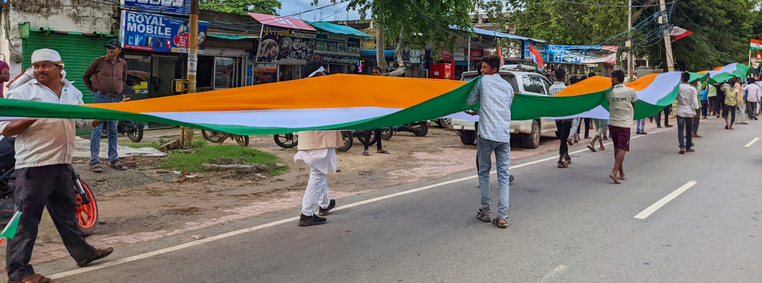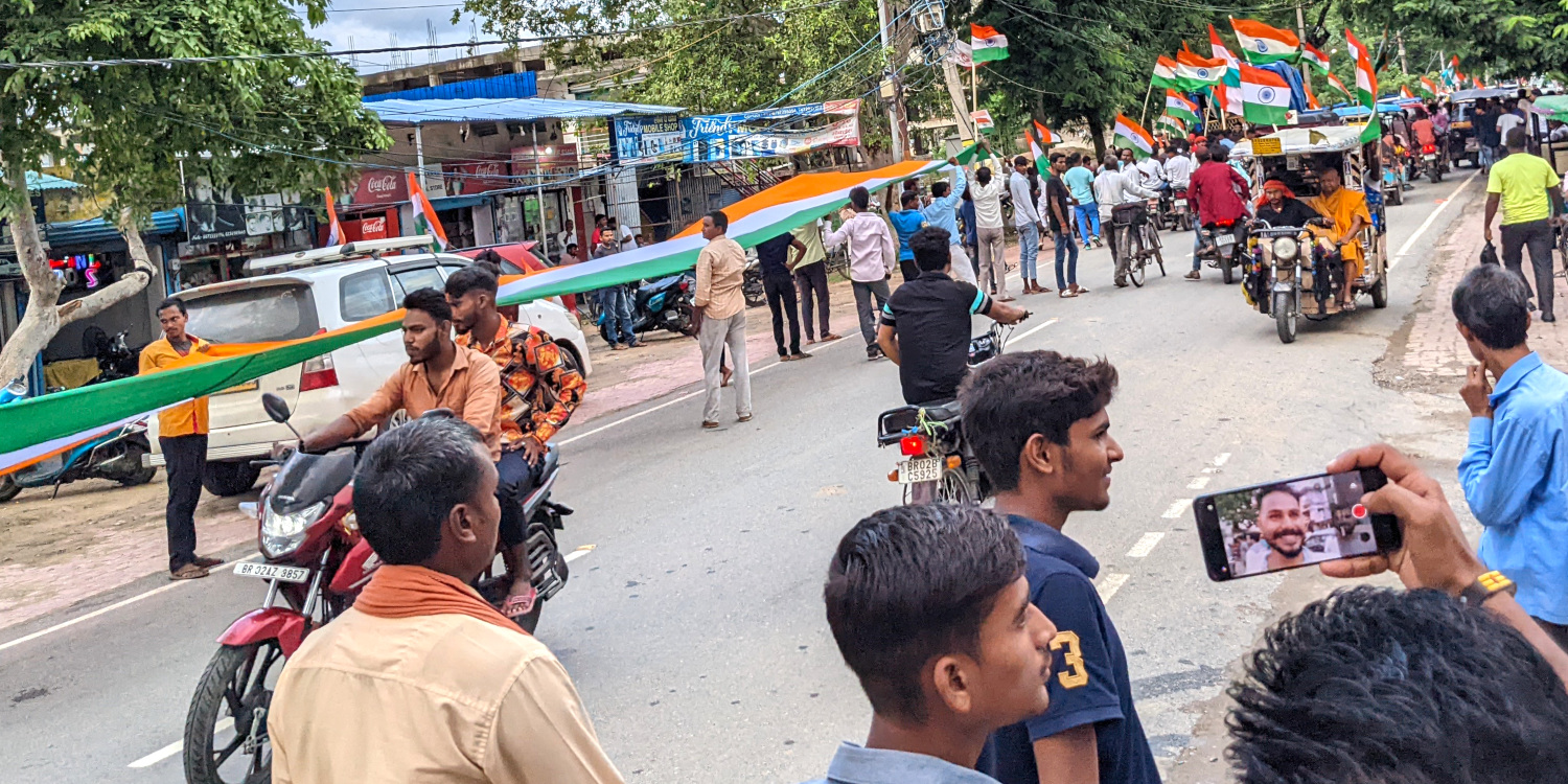 On Tuesday the 14th, we were sitting in the travel agency owned by our host, getting some work done on our laptops, when an Independence Day parade passed by. It included an Indian flag that was, honestly, about a block long. The parade wasn’t as loud as a typical U.S. Independence Day celebration (no fireworks), but it was — and forgive us if we overuse these words — quite colorful and fascinating.