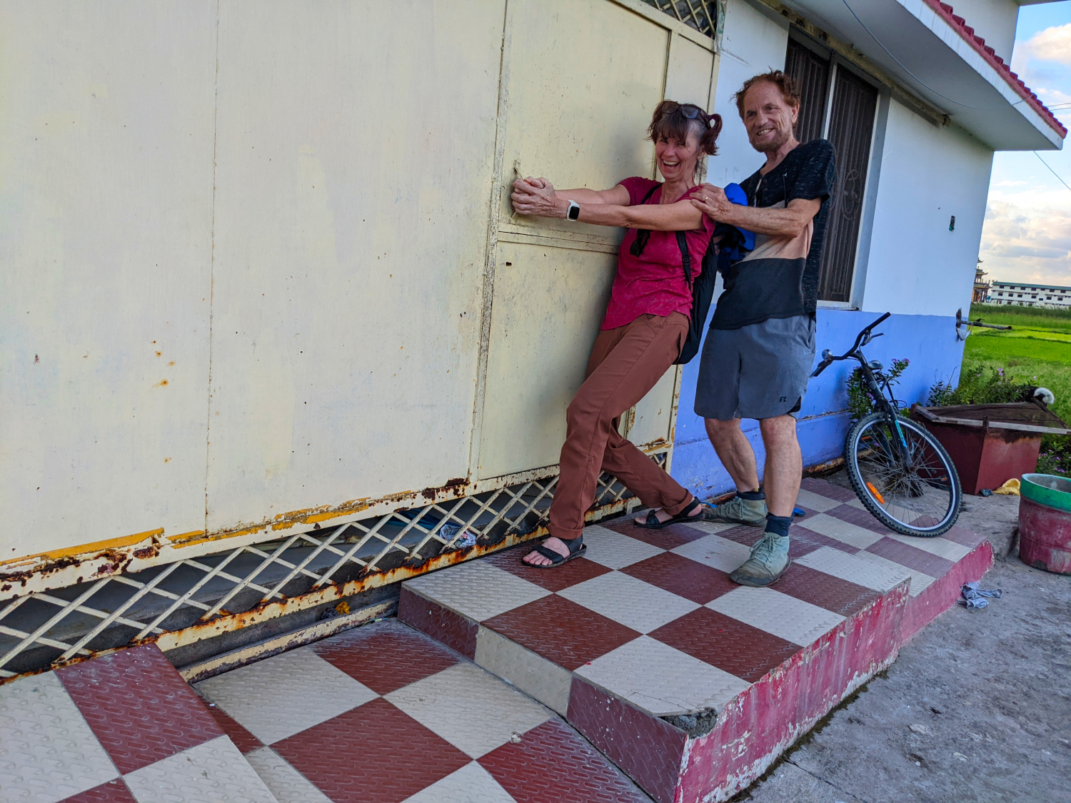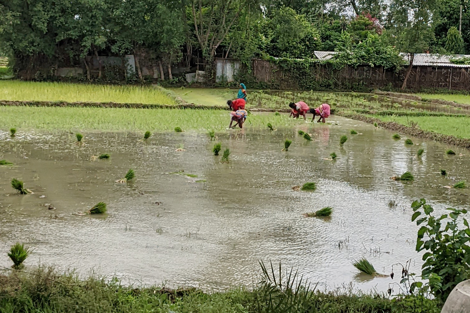 We also spent some time getting acquainted with the children of our host families and relatives, who spoke varying degrees of English — the older boy was most fluent. He told us that a year earlier, they had found (and killed) a cobra in their front yard. Apparently, it was (so we hoped) a rare occurrence. But we couldn’t help but admire the bravery of the workers who toiled in the marshy rice paddy beside us, with nary a shoe or boot among them.