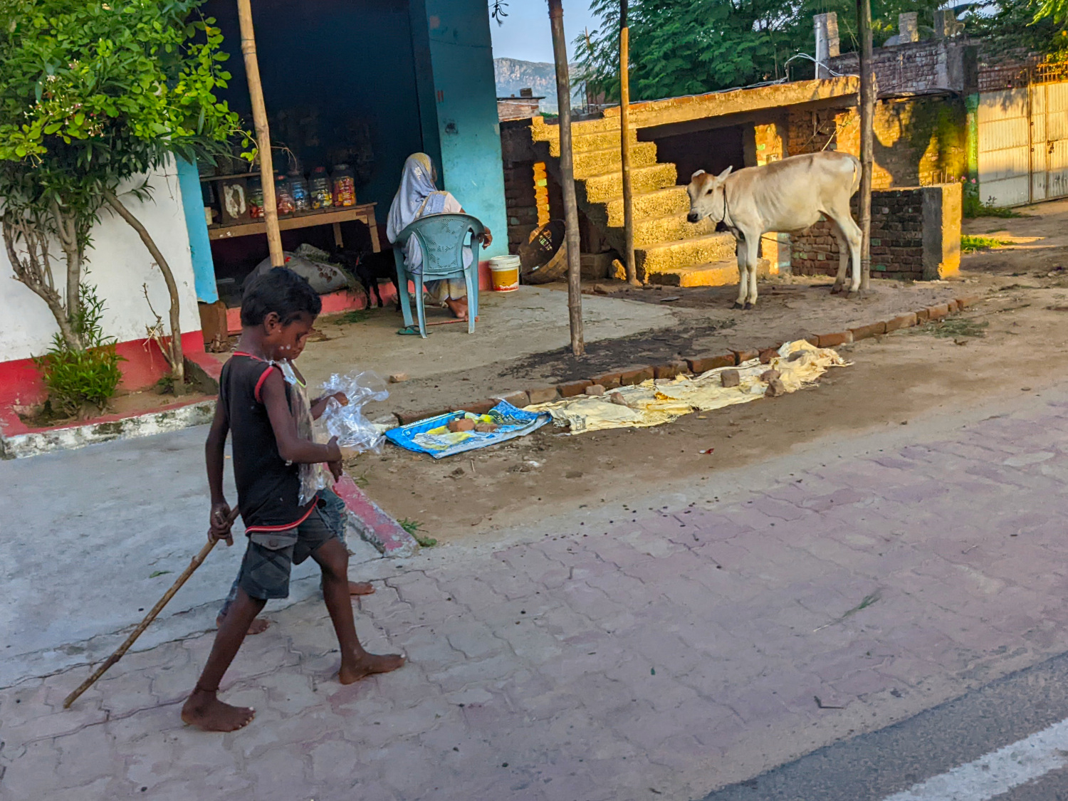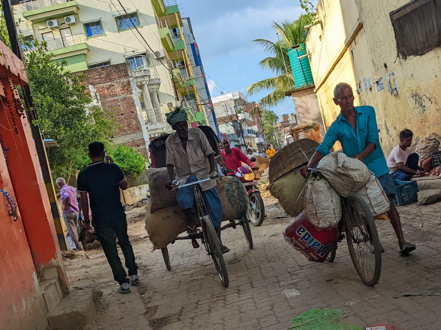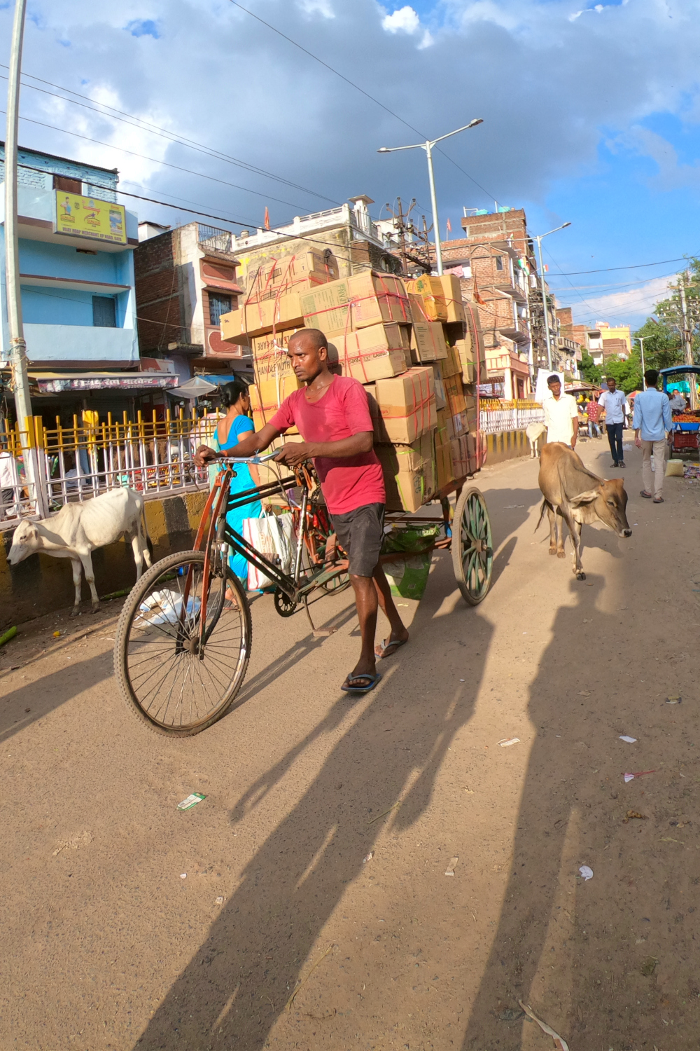 On Tuesday, Aug. 16, we decided to make another excursion into Gaya in the afternoon. In the morning, of course, we taught at the school as usual — and had a little session in doing the hokey – pokey. The kids took down the Independence Day decorations from the previous day, including the big flagpole, and put them away for another year.