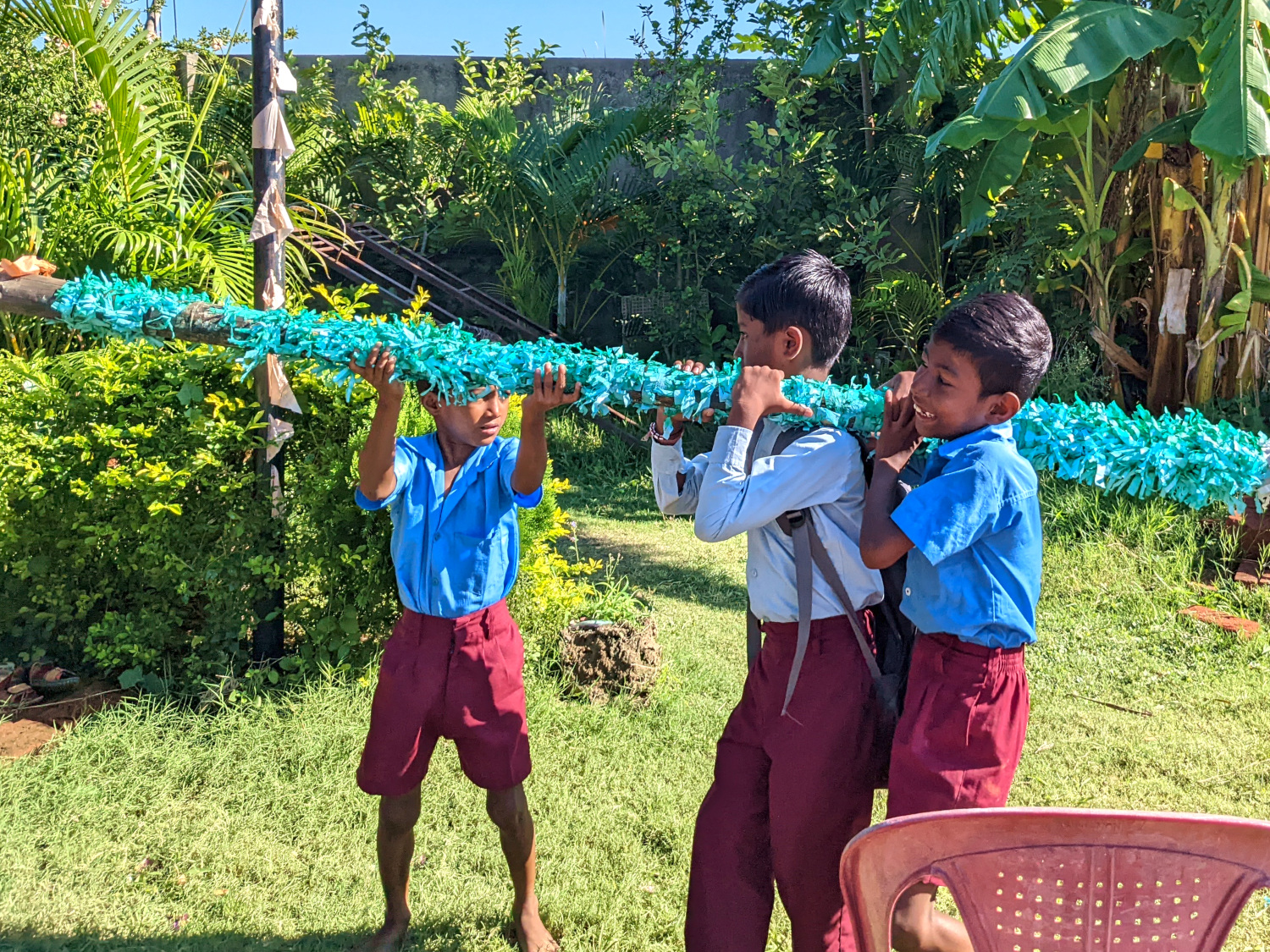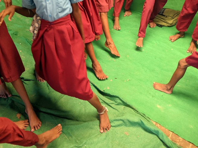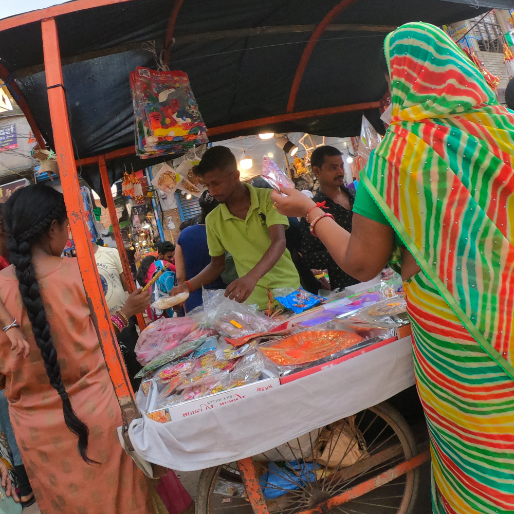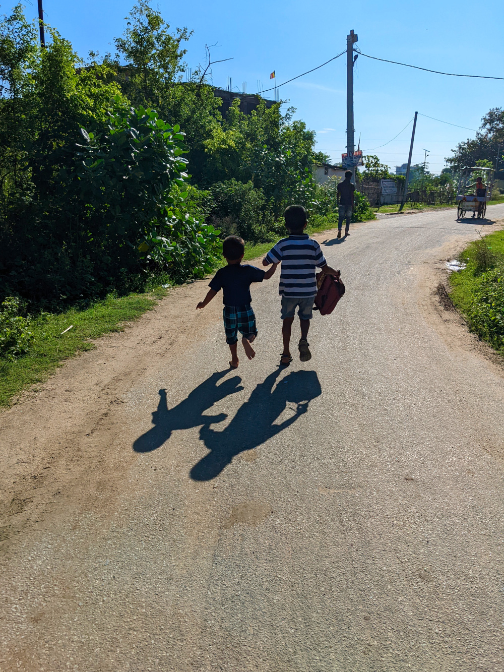 On Tuesday, Aug. 16, we decided to make another excursion into Gaya in the afternoon. In the morning, of course, we taught at the school as usual — and had a little session in doing the hokey – pokey. The kids took down the Independence Day decorations from the previous day, including the big flagpole, and put them away for another year.