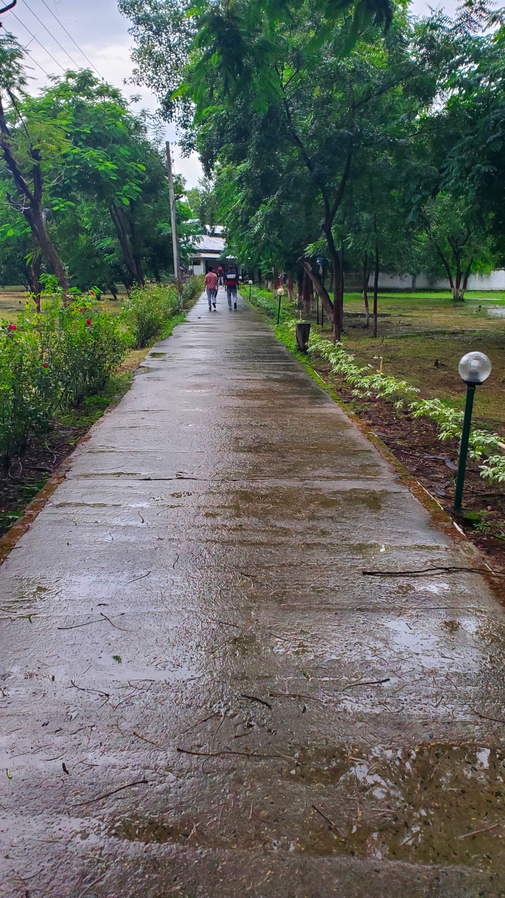 The food was tasty, varied, vegetarian, and generally copious. The one exception to the latter was in the evening, when we didn’t get dinner as such, but just a snack: crisped rice (rather like Rice Krispies, except not sweet), warm milk to go with it if we wanted, and fruit — usually apples and bananas. In the morning and evening there was also hot tea — none was served at lunch, curiously enough, so if you wanted some to perk you up at midday, you’d have to have the foresight to bring a thermos to breakfast and take some to go. After eating we’d wash our own dishes; they were the stainless steel variety that is standard issue in India, and they can be a bit precarious to hold when you’re dishing up hot grub.