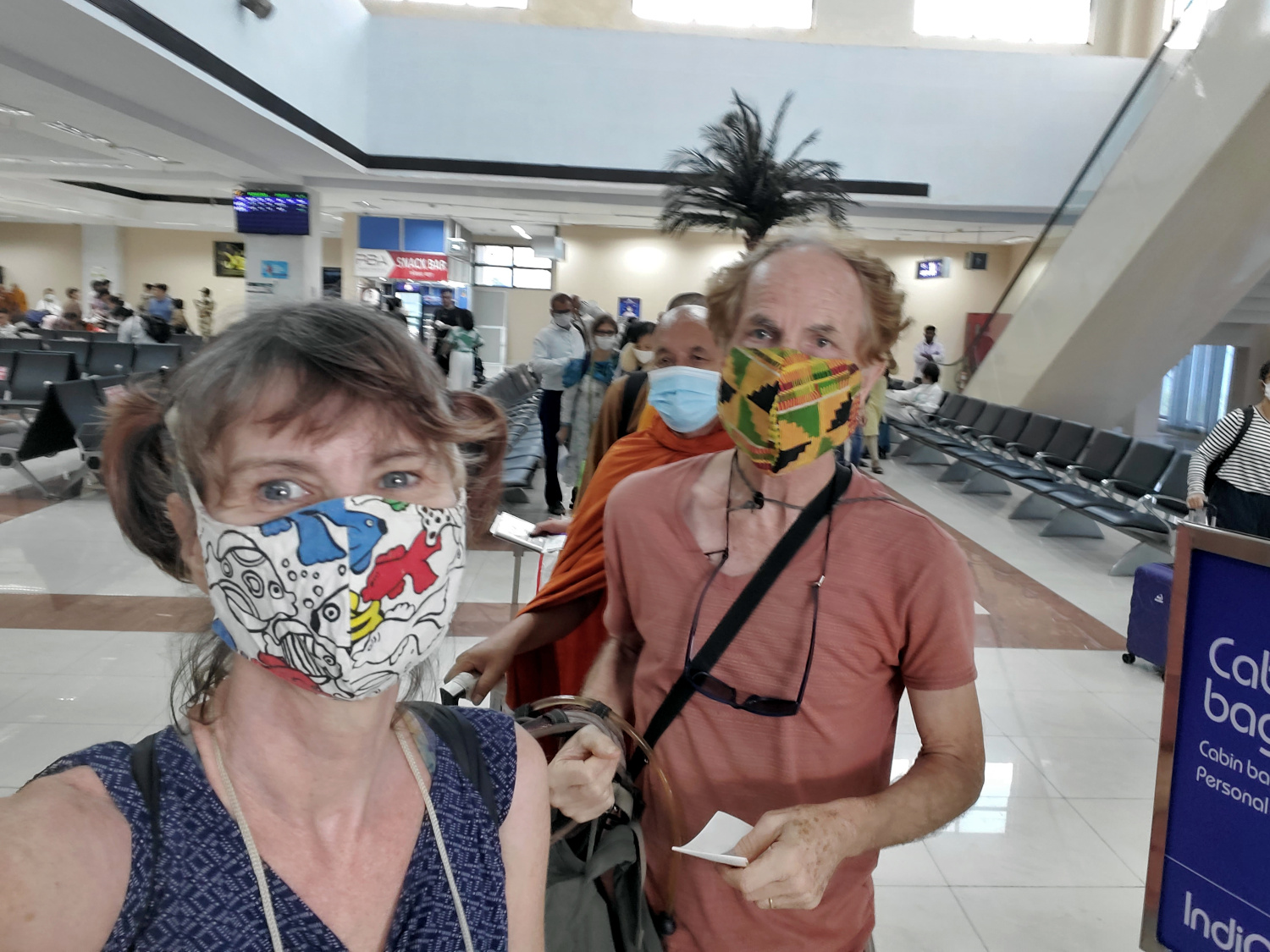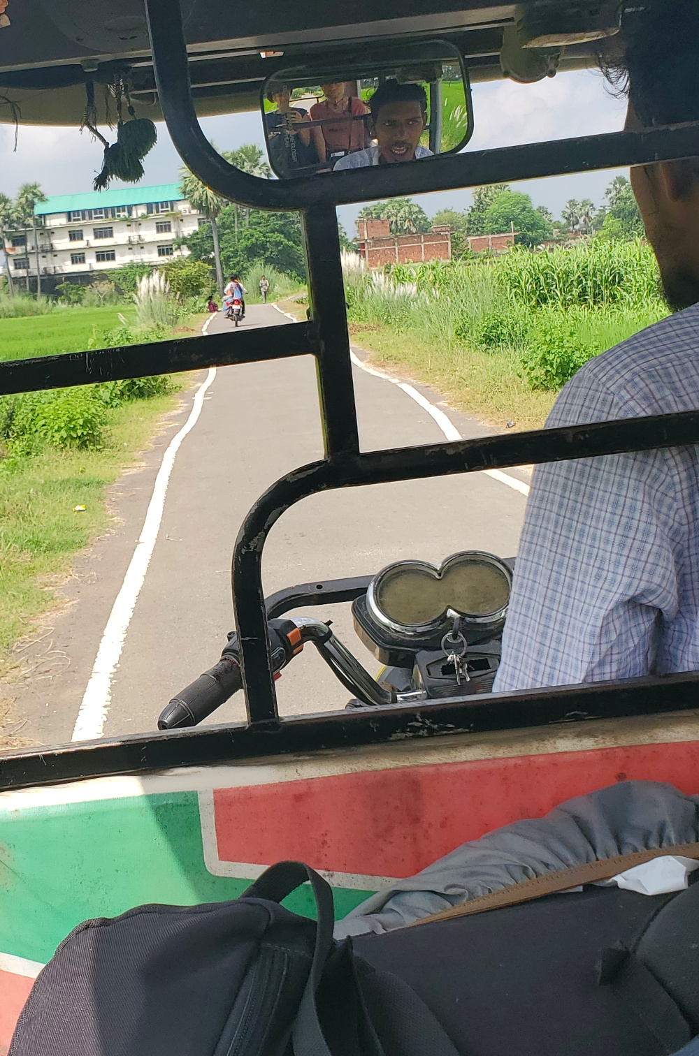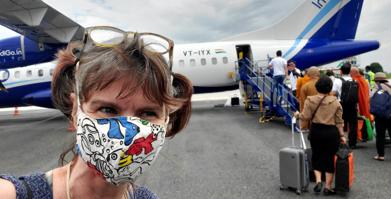 Then we said our goodbyes and caught a tuk-tuk to the airport. Our driver was the son of the driver who’d brought us out there the previous day; but while we’d been able to bargain Dad down from the fare he’d originally quoted, Junior wouldn’t budge one cent. (We strongly suspect the pair had been in collusion on this point.) So, having little recourse out there in the sticks, we agreed to his price of 600 rupees (a little over 7 dollars).