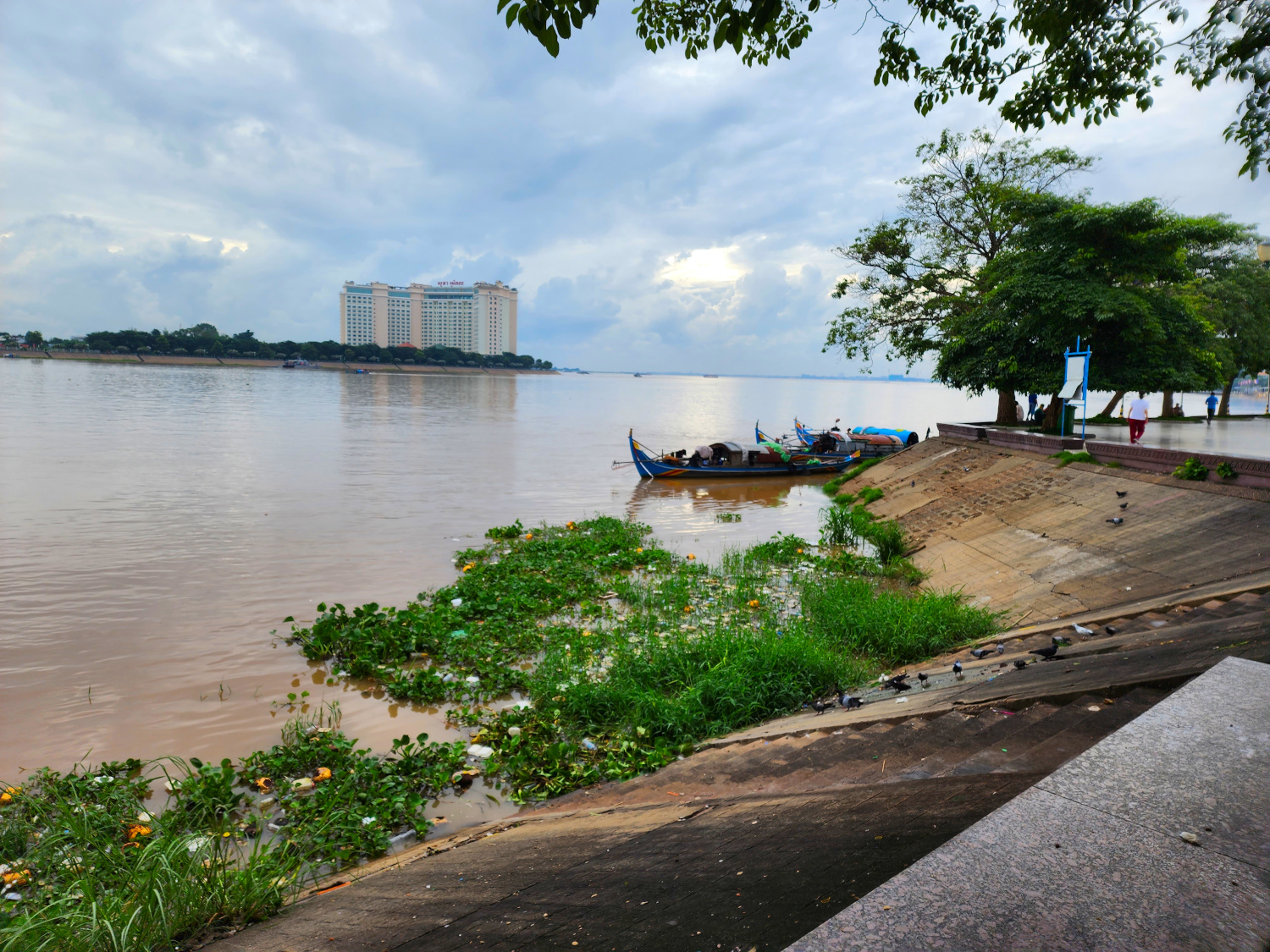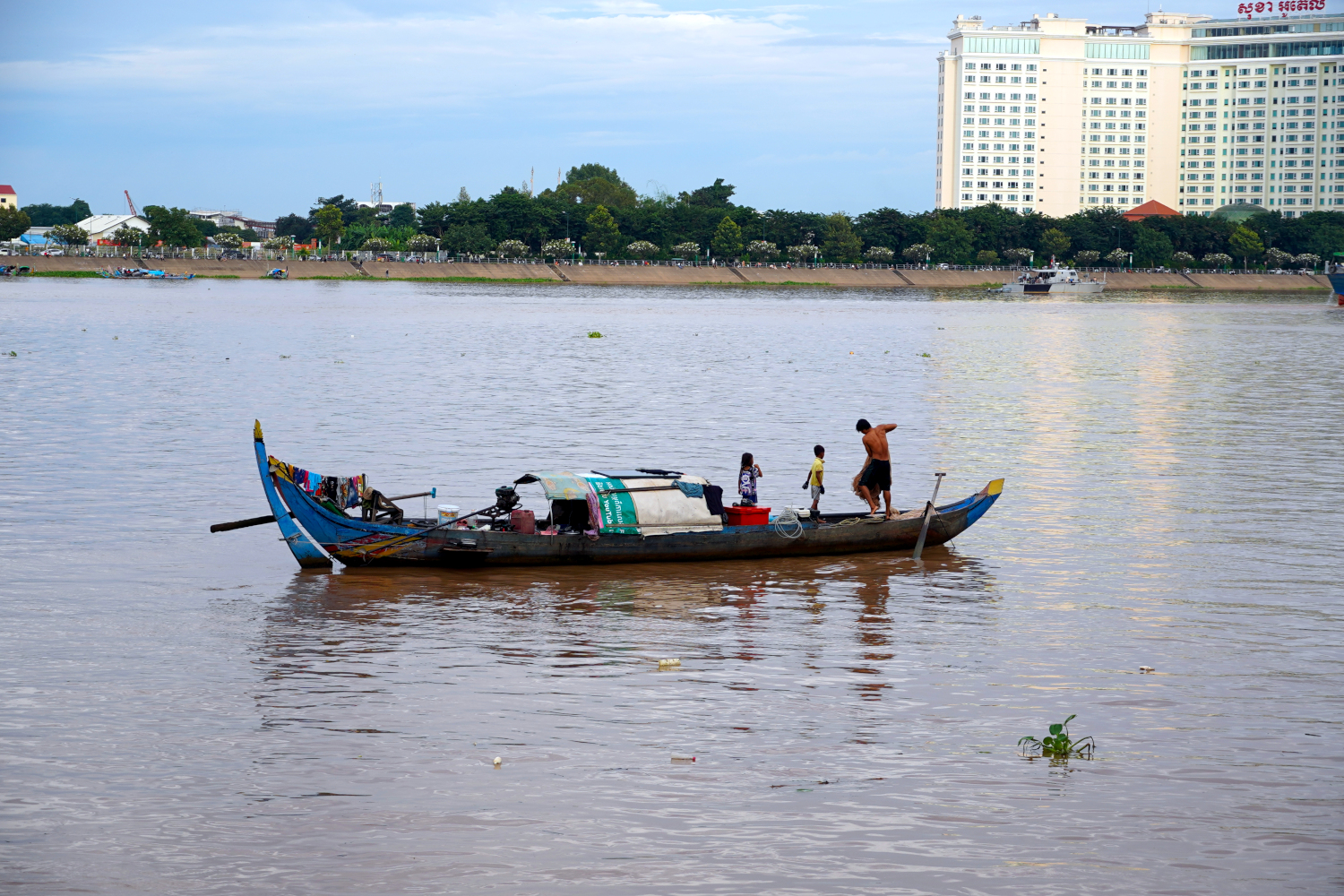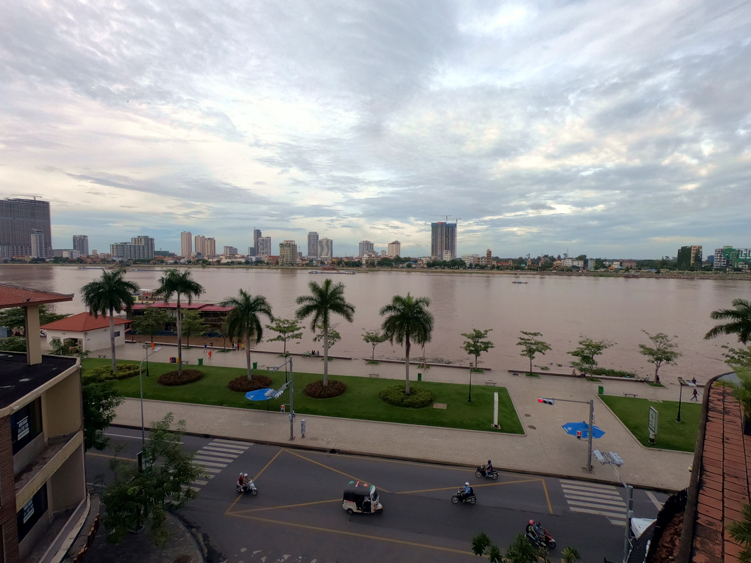Our first full day in Phnom Penh, a city where we’d be spending many full days in the future, naturally centered on the river that we were staying in front of. It wasn’t exactly the famed Mekong River, but the Sap River; but the Sap joins with the Mekong just a few hundred yards downstream from our hostel. And when you look out across the Sap River, you see the very narrow spit of land that separates the two rivers.