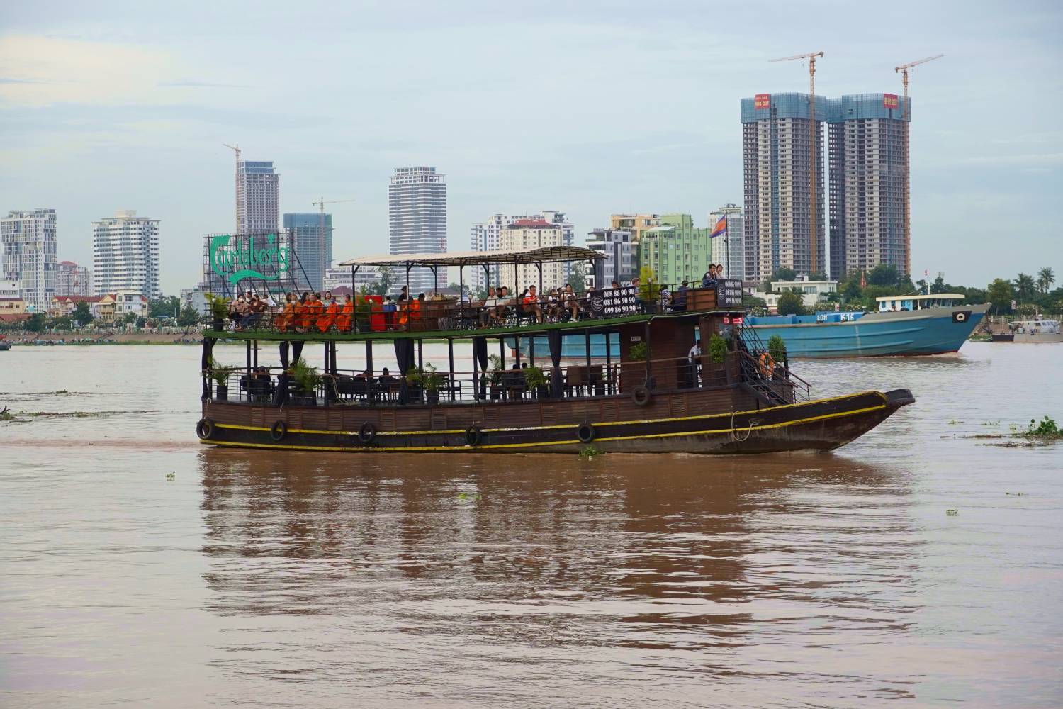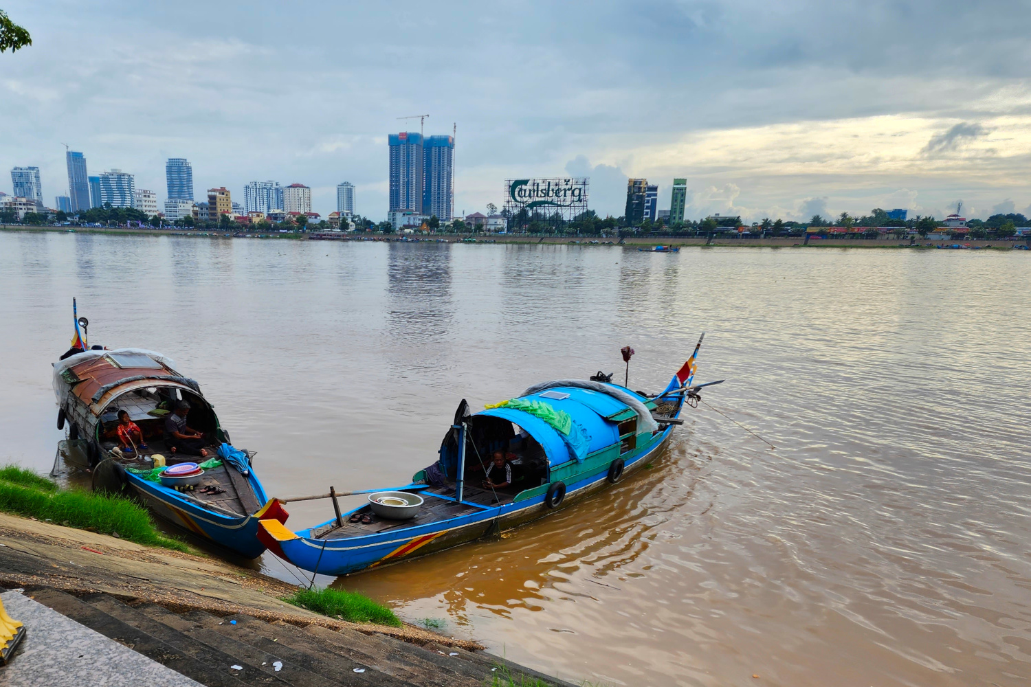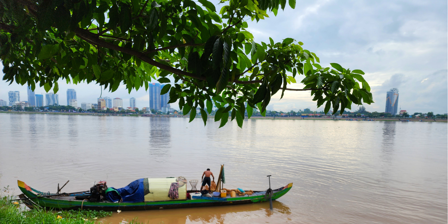 Our first full day in Phnom Penh, a city where we’d be spending many full days in the future, naturally centered on the river that we were staying in front of. It wasn’t exactly the famed Mekong River, but the Sap River; but the Sap joins with the Mekong just a few hundred yards downstream from our hostel. And when you look out across the Sap River, you see the very narrow spit of land that separates the two rivers.