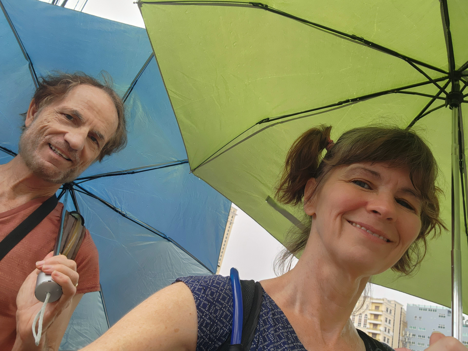 Then we had breakfast, which required going to the other part of the hostel, which was in another building across the street. In the lobby cafe, we were able to obtain hot water for our tea and oatmeal — not by heating it ourselves, but by requesting that the staff bring it from the kitchen, which they were happy to do at no charge.
