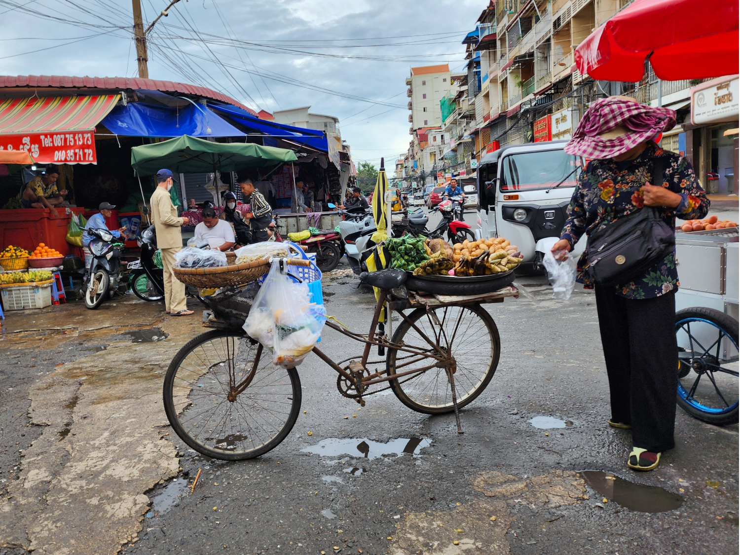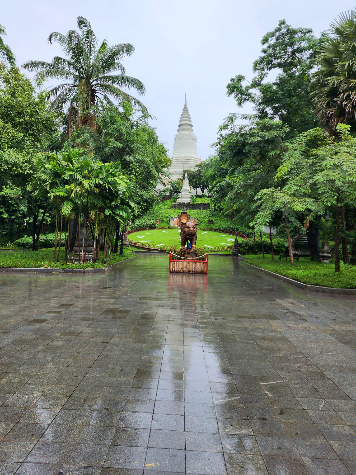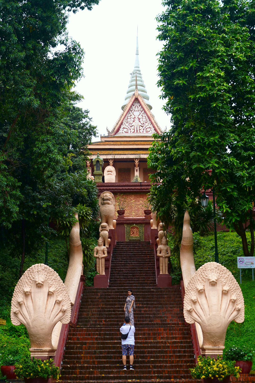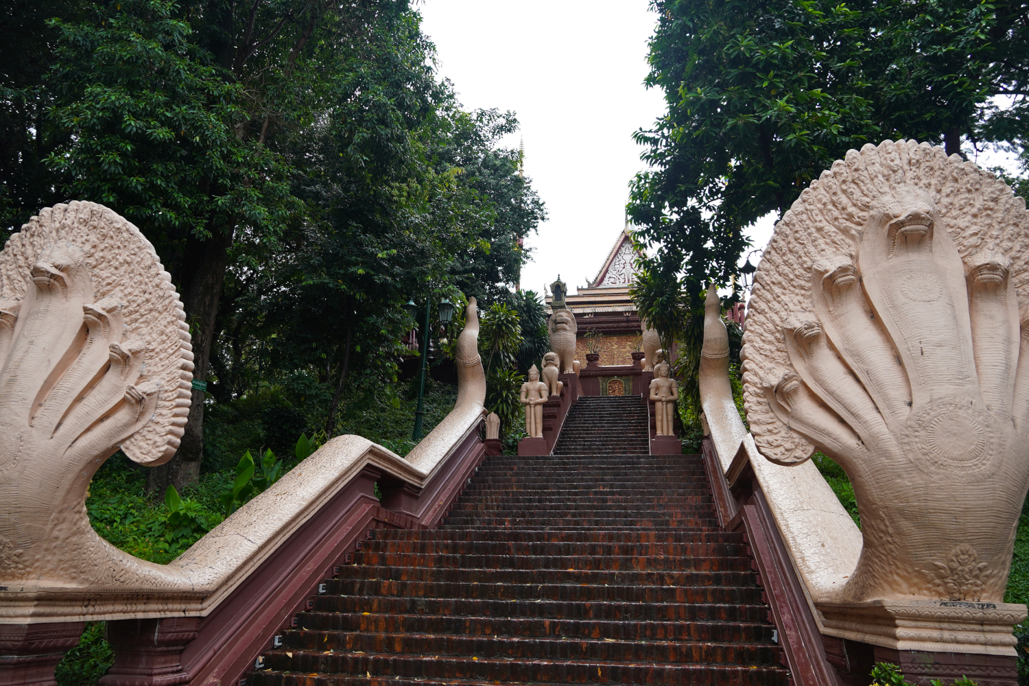 After breakfast, we went scouting for a supermarket to stock up for the rest of the day, and the next day’s journey to our next destination. It was difficult to find what we needed, but we ultimately stumbled upon a decent little store that was part of a chain called Lucky — no similarity to the American supermarkets of the same name. First, however, we stumbled upon something else that demanded to be investigated: Wat Phnom.