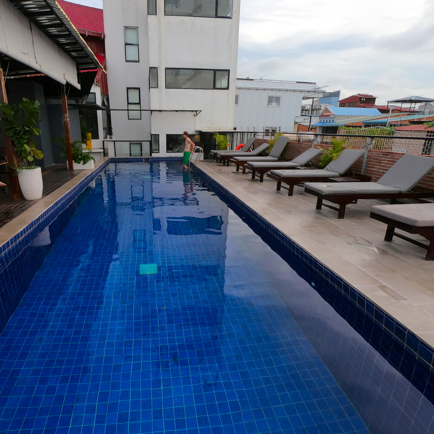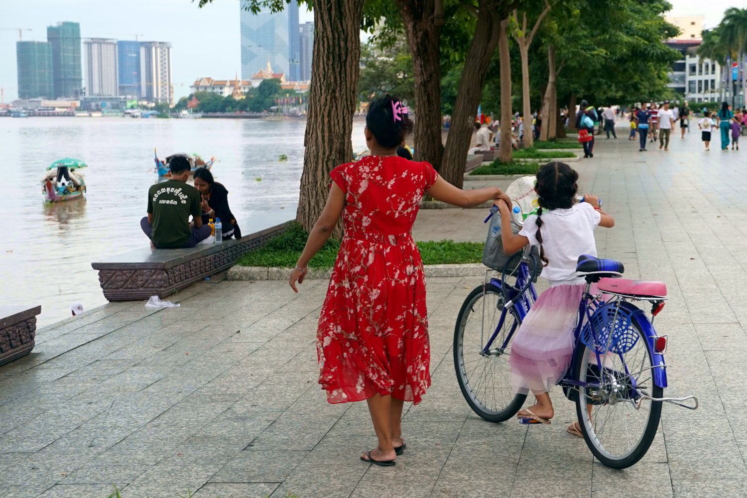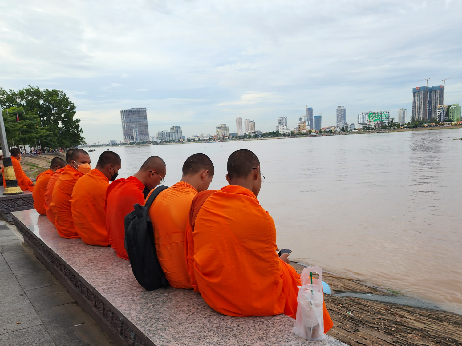 In the afternoon, we went swimming in our hostel’s little rooftop pool. And then later we went back down to the river, where throngs of people had begun to congregate for the festivities. We weren’t aware of the occasion at the time, but as we’d learn later, the holiday was called Pchum Ben. It’s a festival, unique to Cambodia, at which Buddhists pay respect to their ancestors and give offerings to monks, who gladly accept them.