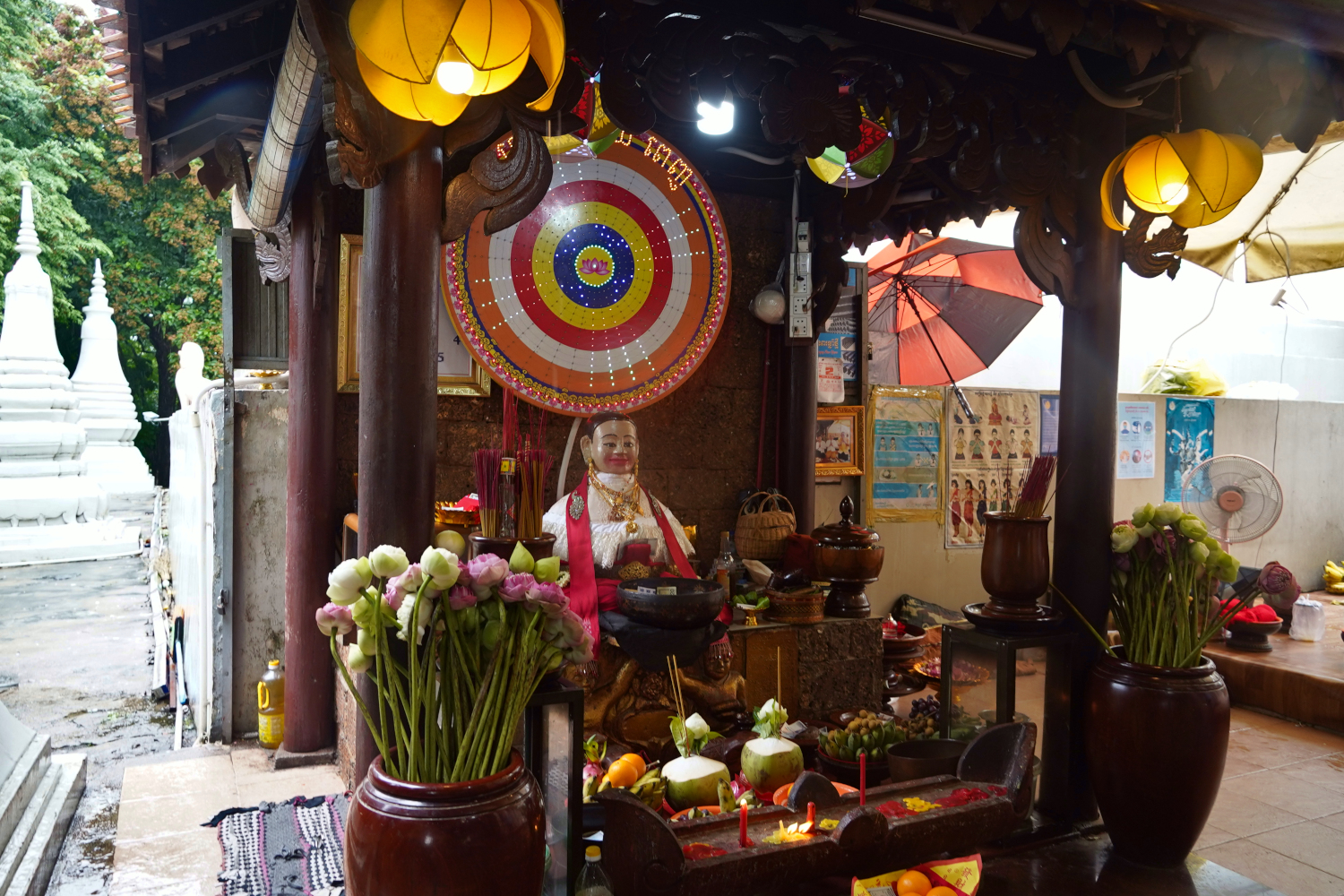 Perhaps the most curious thing we saw, however, was a little shrine with a spinning wheel with lights — it resembled a wheel of fortune. It appears to be a variation on the Buddhist “prayer wheel”, though the latter are normally cylindrical. And inside the main temple, we saw a black cat wandering around, which we were not quite sure how to interpret.