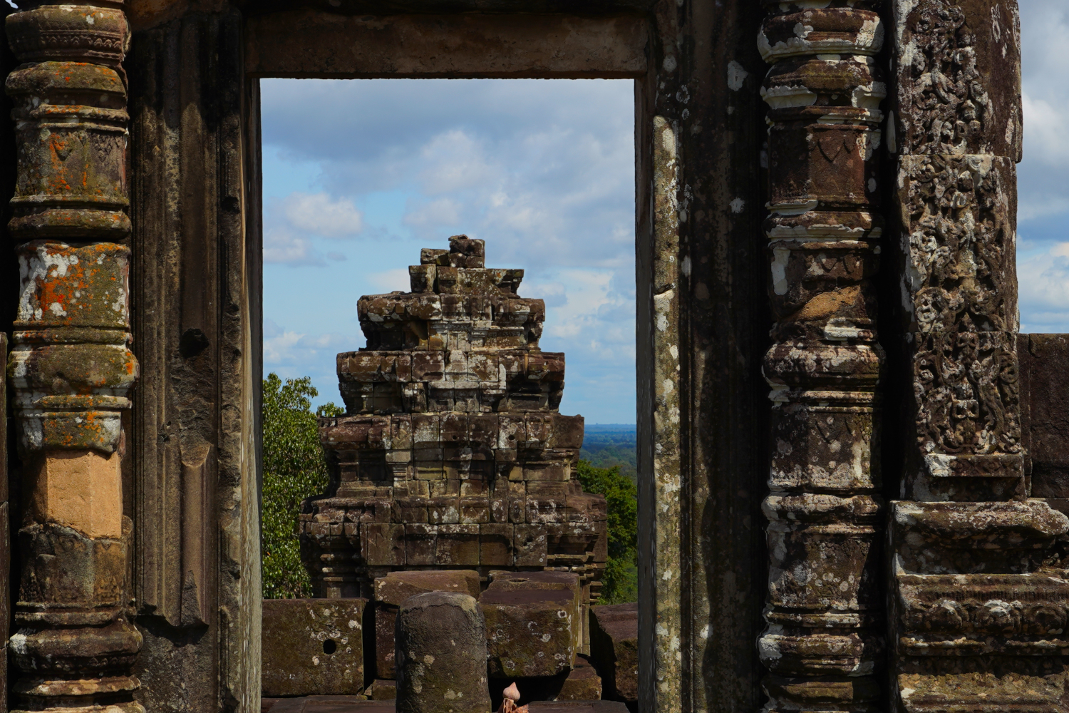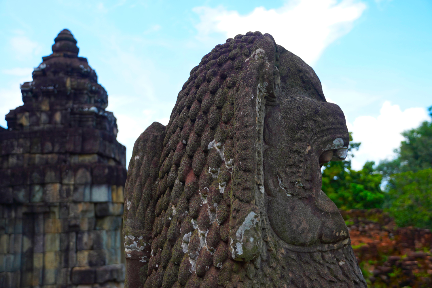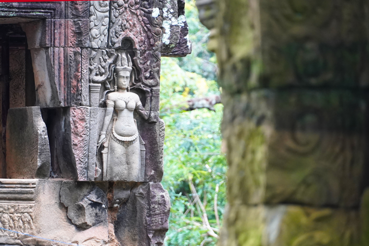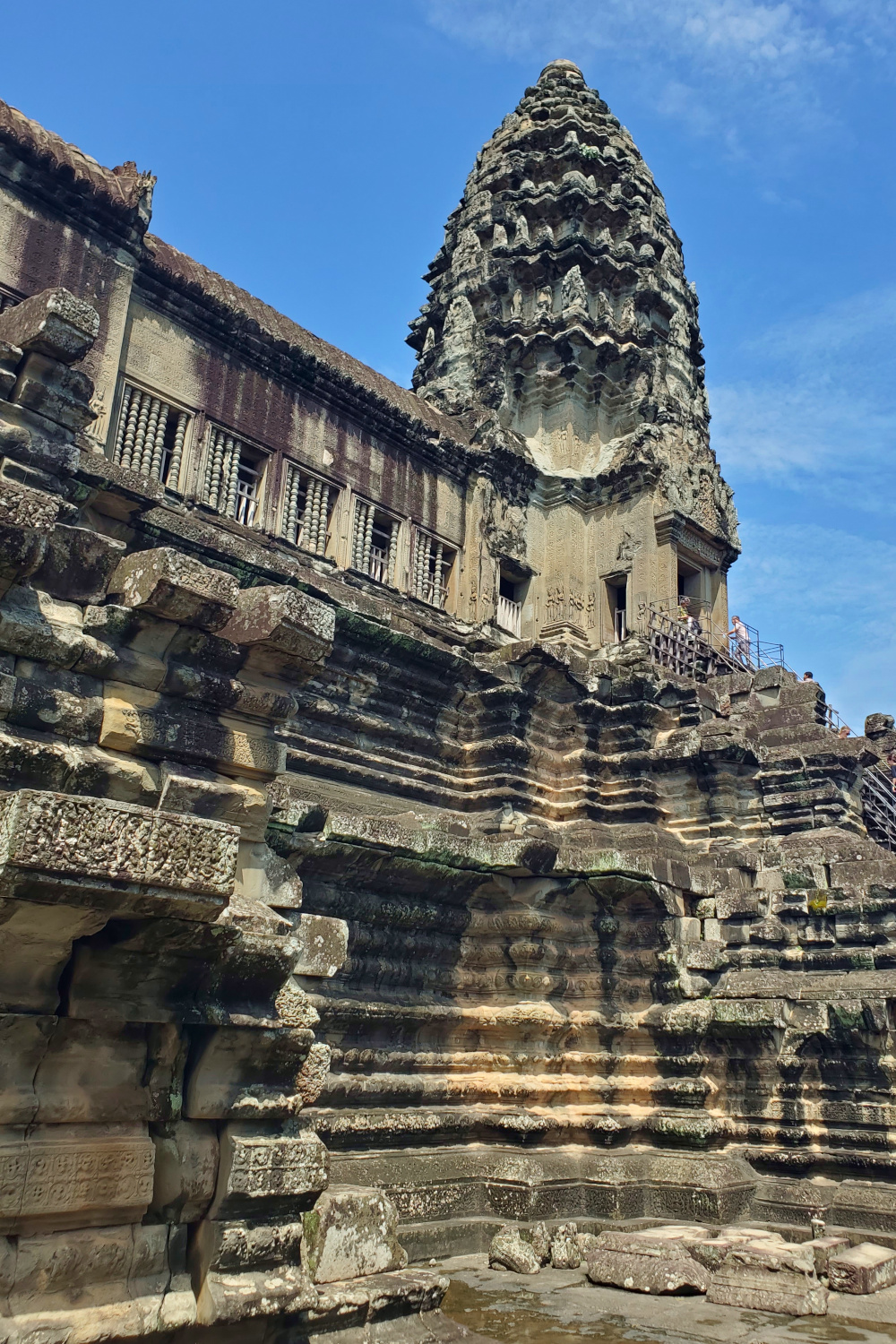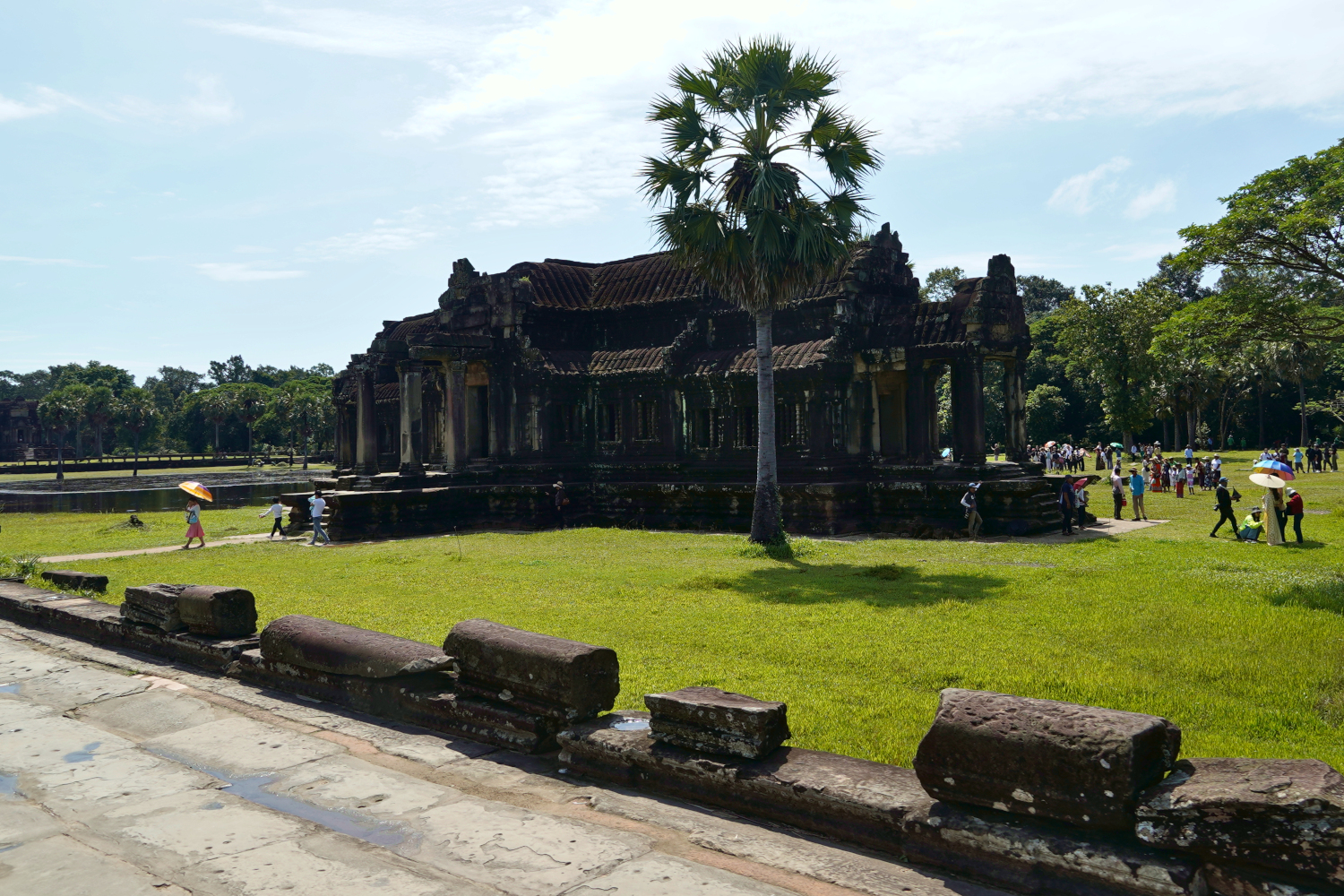 Well, to be more precise, part of it is depicted on the flag and widely known all over the world. A very, very small part. What you always see is one temple out of more than FIFTY, covering an area of about 150 square miles. This was the site of an ancient city — angkor wat means “temple city” in Khmer. The secular structures were made of wood, so they perished long ago. But the temples were stone, so they still stand, albeit some of them in less than mint condition after so many centuries. And since people back then really really loved their temples, there are a lot of them to gawk at today.
