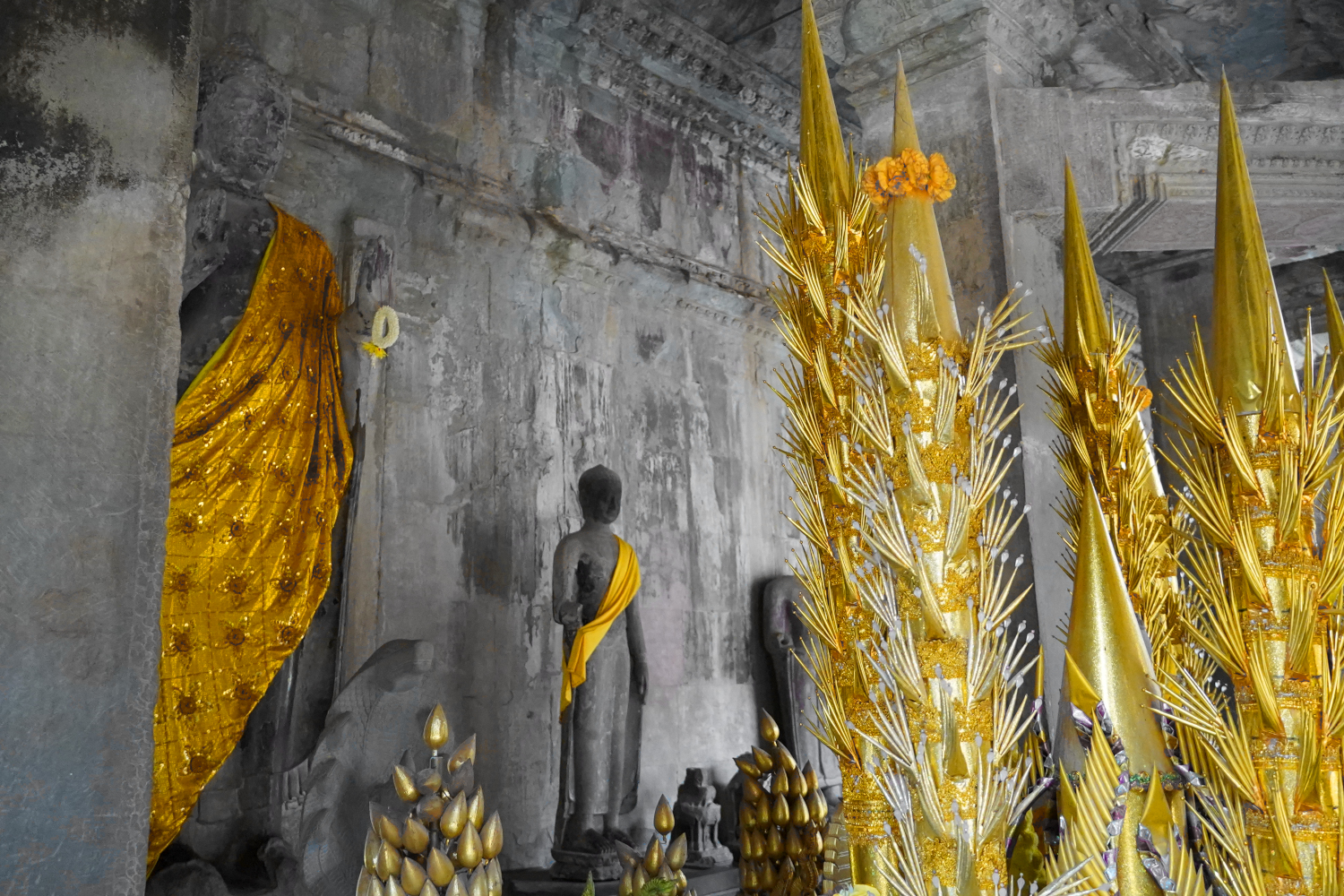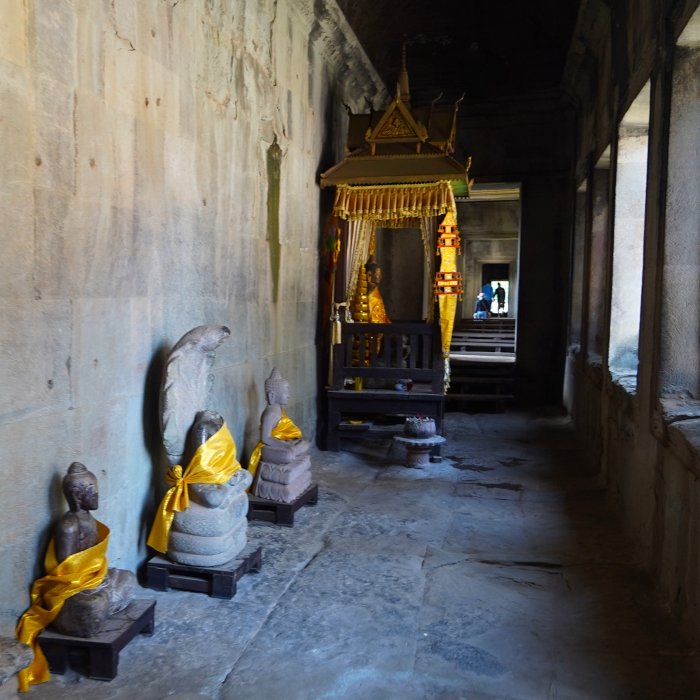 Construction on the temple complex was completed about 1150 CE, making it nearly 900 years old. Originally Hindu in conception, its layout and design details pay tribute to the cosmology and heritage of Hinduism. But the Buddhists took over in very short order, and have run the show ever since. Although Angkor Wat has been a Buddhist sacred site continuously, most of the complex was neglected for many centuries, until it was rediscovered about 100 years ago and reborn as a traveler’s destination.