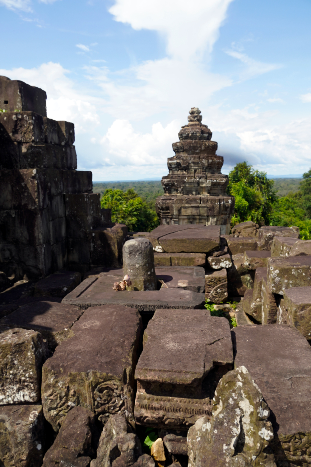 The next structure on our itinerary was called Phnom Bakheng. Not as impressive as the main temple, but it certainly had its own charms. At this one too, we were able to climb to the top. At first we were the only ones up there, but then another couple came up to join us. They also spoke English with an American accent, so we talked to them and learned that they were from Utah.