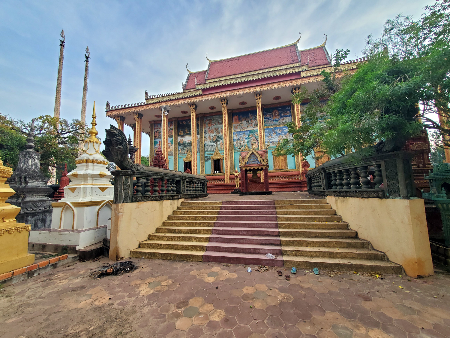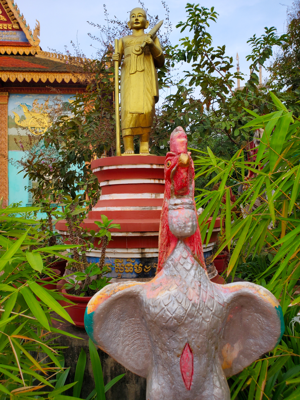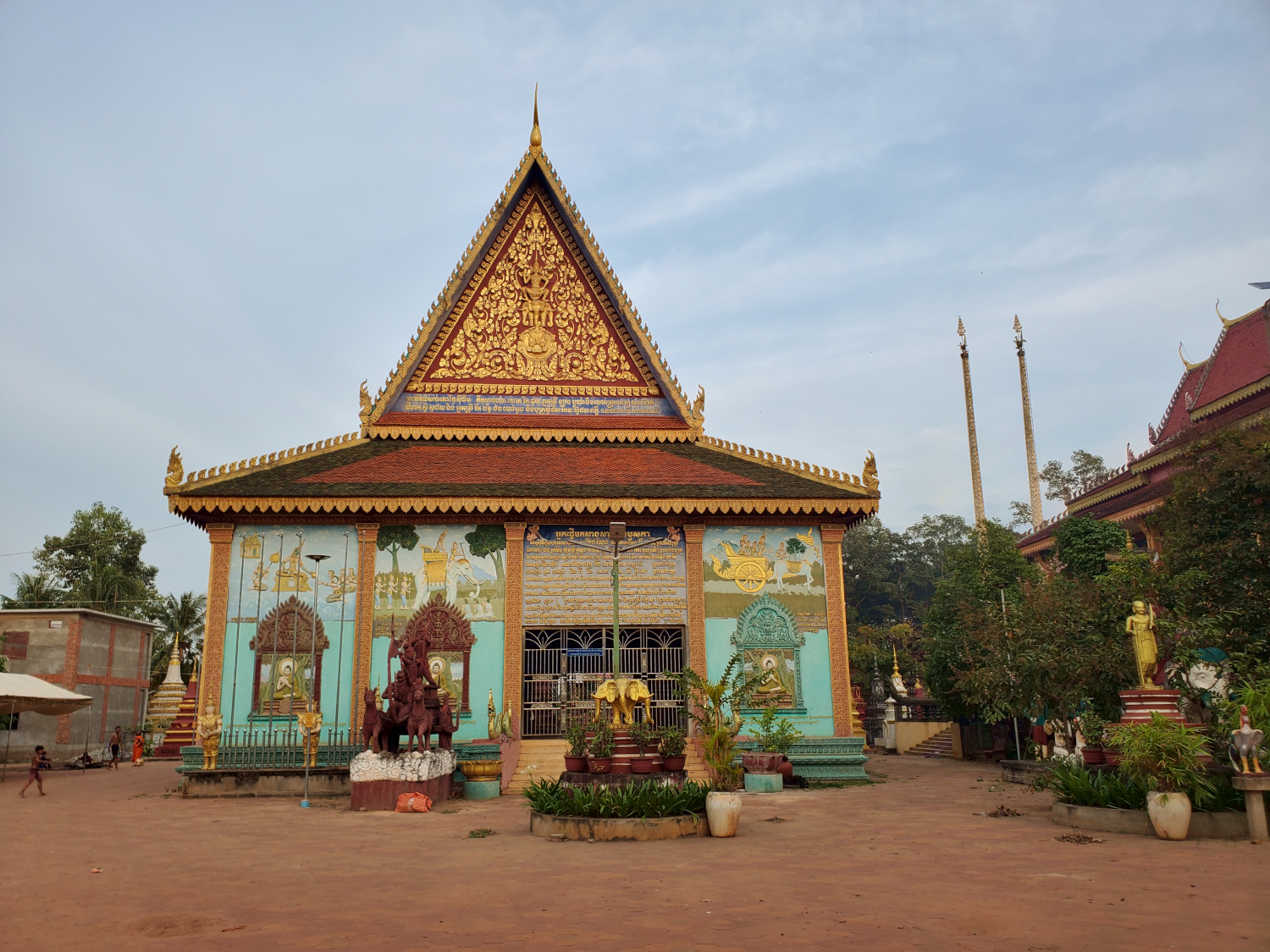 With our visits to the Angkor Wat temple park concluded, all we had to look forward to in Siem Reap was our final week of volunteer teaching at the little school where we’d spent most of the month living and volunteering. But we still had an opportunity to explore another wat (temple), albeit it was a contemporary one: Wat Po Banteaychey, which was almost directly across the street from us.