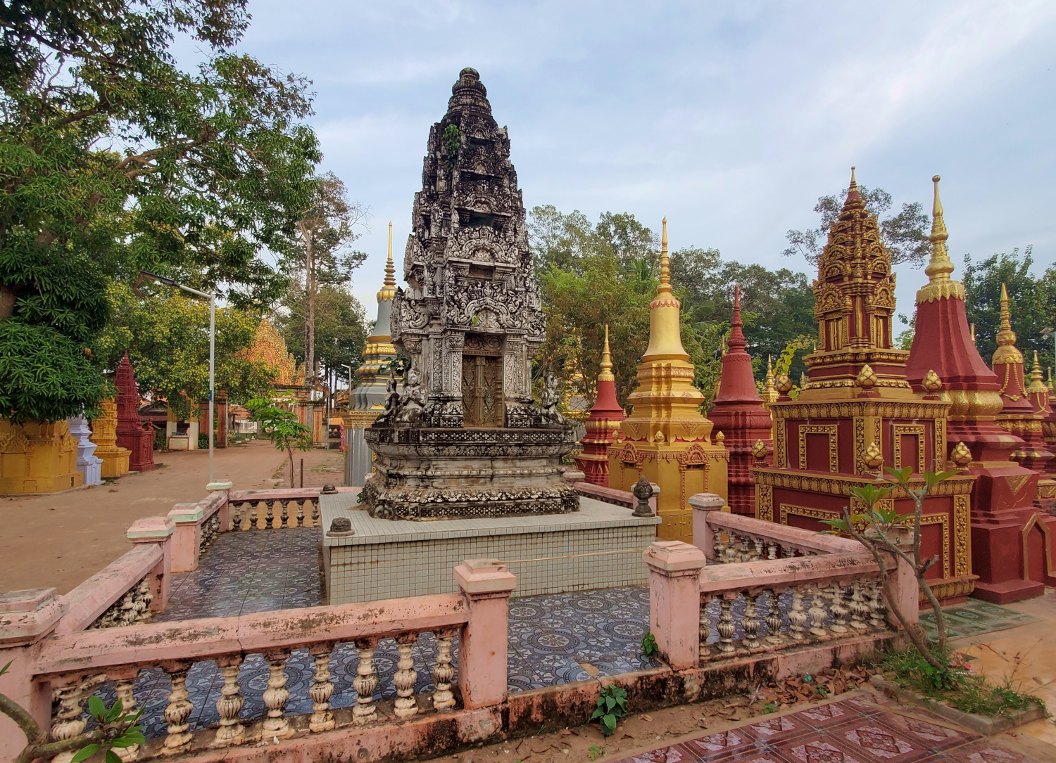 Though it doesn’t have the archaic grandeur of the decaying architectural masterpieces at Angkor, Wat Po Banteaychey is much more colorful, with red, gold and green competing for your eye’s attention at a frantic pace. The structures included little tombs, apparently for monks.