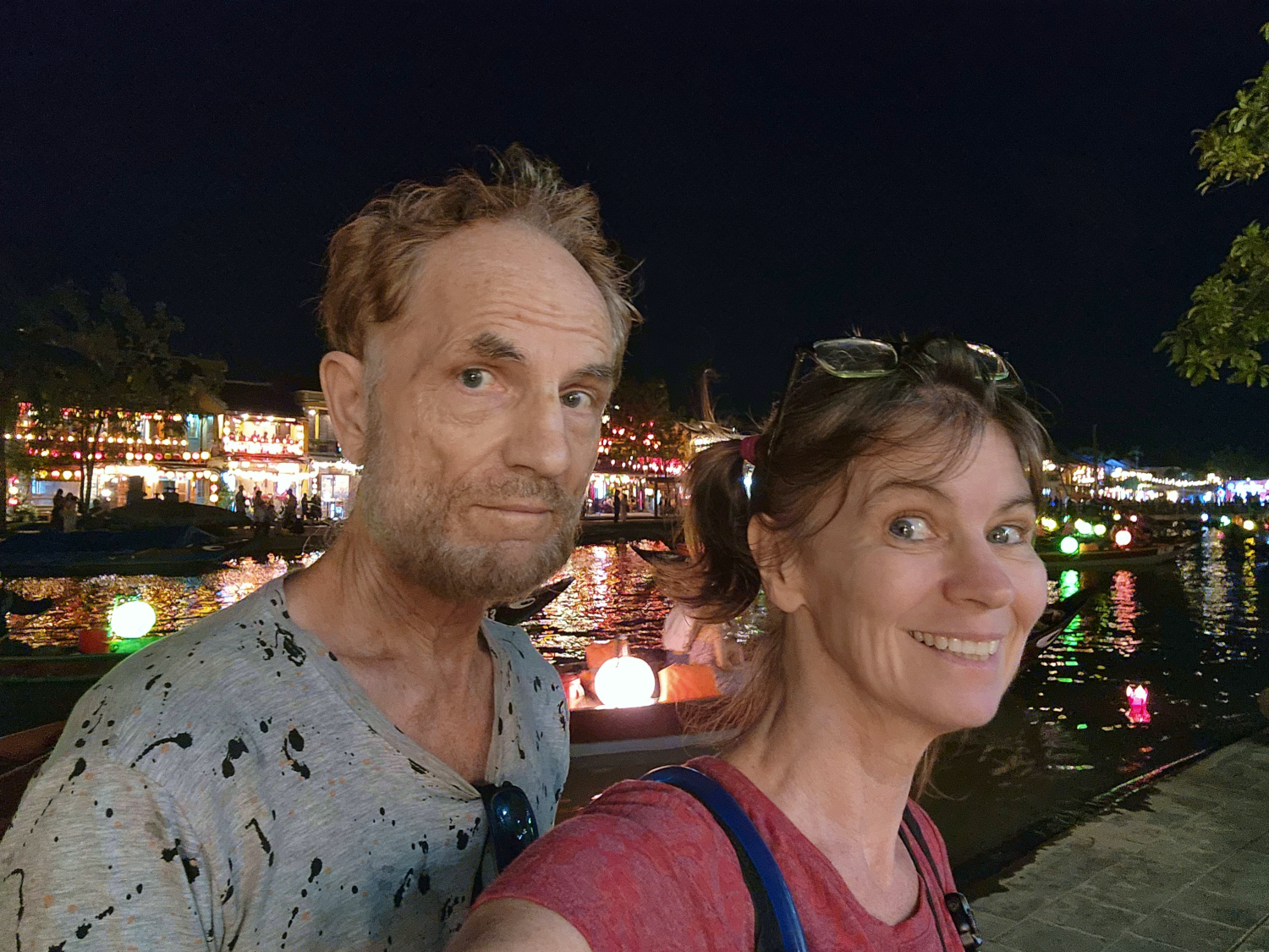 The river was full of quaint boats, many of them carrying (mostly tourist) passengers. They also carried something else: colorful lanterns. At night when these were lit, along with others hanging from trees or displayed elsewhere in the streets, the effect truly was an enchanting atmosphere.