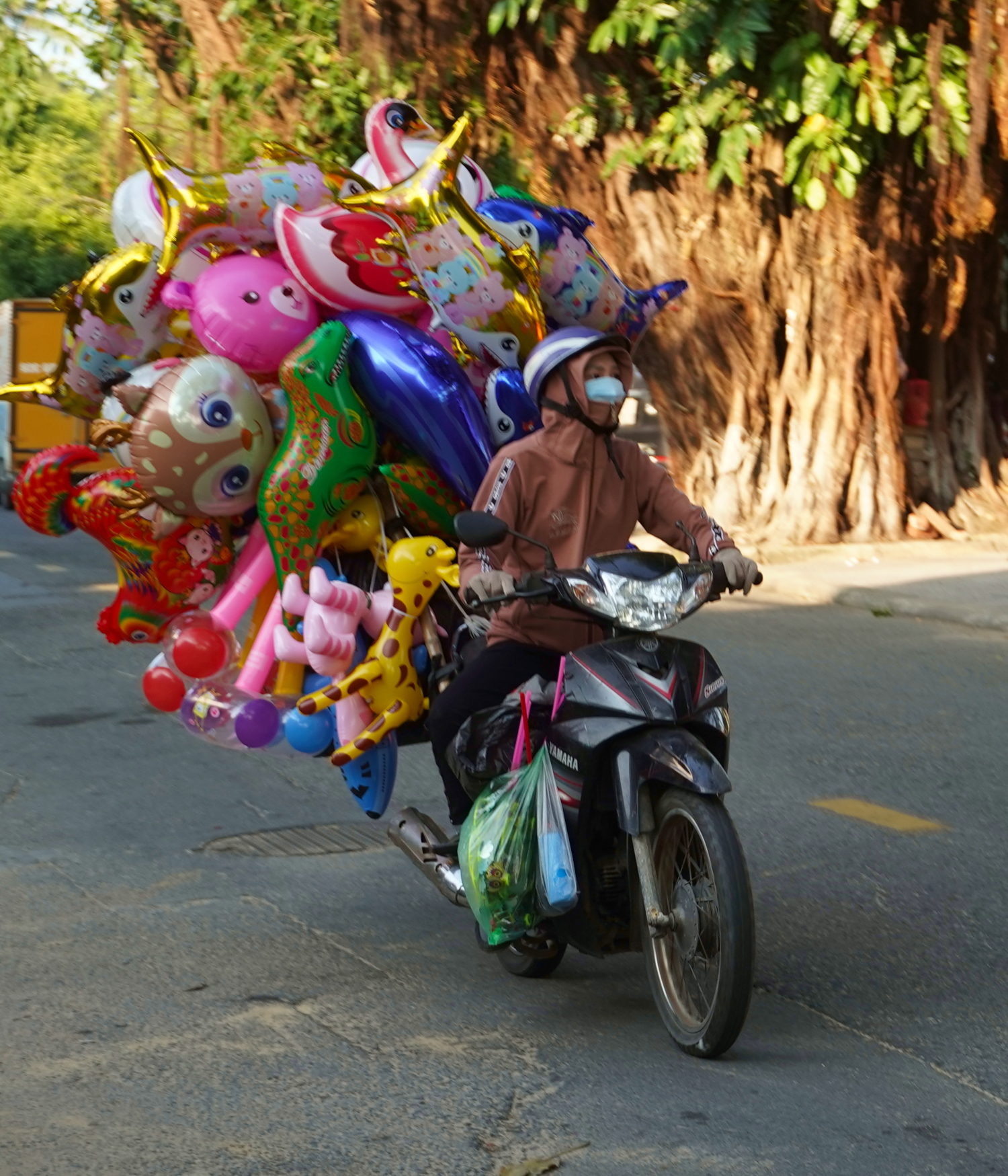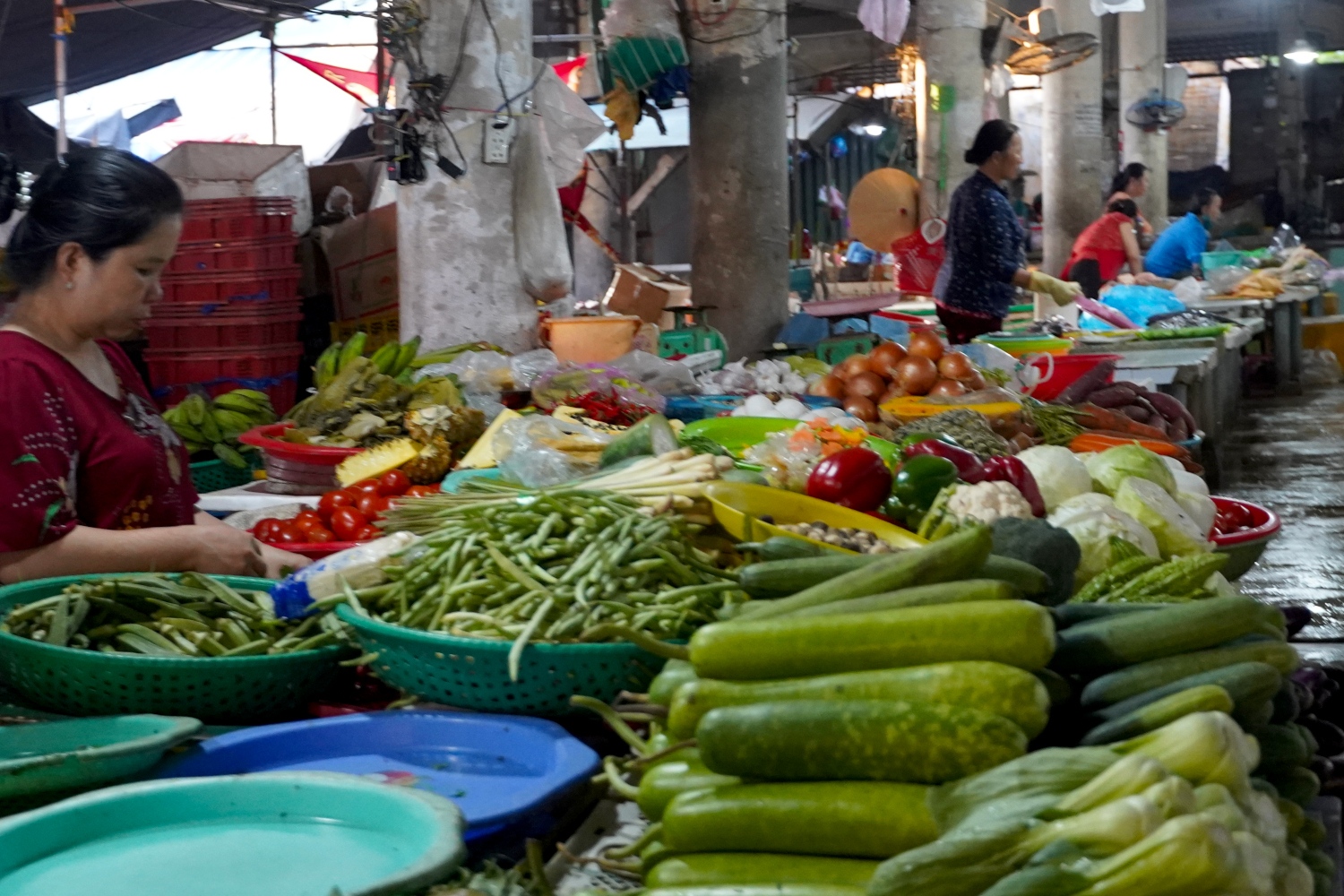The local marketplace continued to be one of our regular haunts — not only to buy produce, but to soak up the native vibe. At one point, we even tried haggling with a produce vendor, as is reportedly the custom in these parts. But we had no success at all. The lady just shook her head and said, “Same same Vietnam”. Which we’re guessing translates as, “you won’t beat this price anywhere in the whole country, buster, so take it or leave it.”
