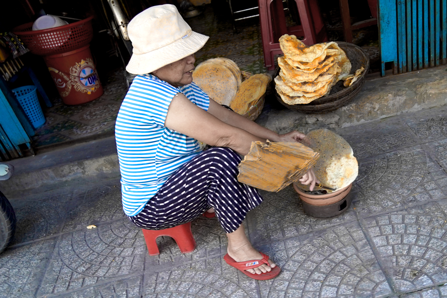 On Thursday, the school director dropped in to say goodbye before heading off for a couple of weeks in — ironically — America. She helped us arrange a ride into Da Nang, but when we found out the price would be 15 dollars each way, we decided we didn’t want to spend that much just to go shopping. She also brought us a snack, a kind of large rice cracker we’d never seen before.