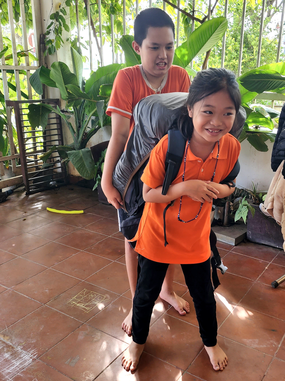 Once we had our backpacks all packed up and were ready to go, we brought them down to say goodbye to everyone. Some of the kids couldn’t resist the opportunity to try out the backpacks for themselves. Finally we took our leave and hopped into a hired vehicle to take us back to Da Nang.