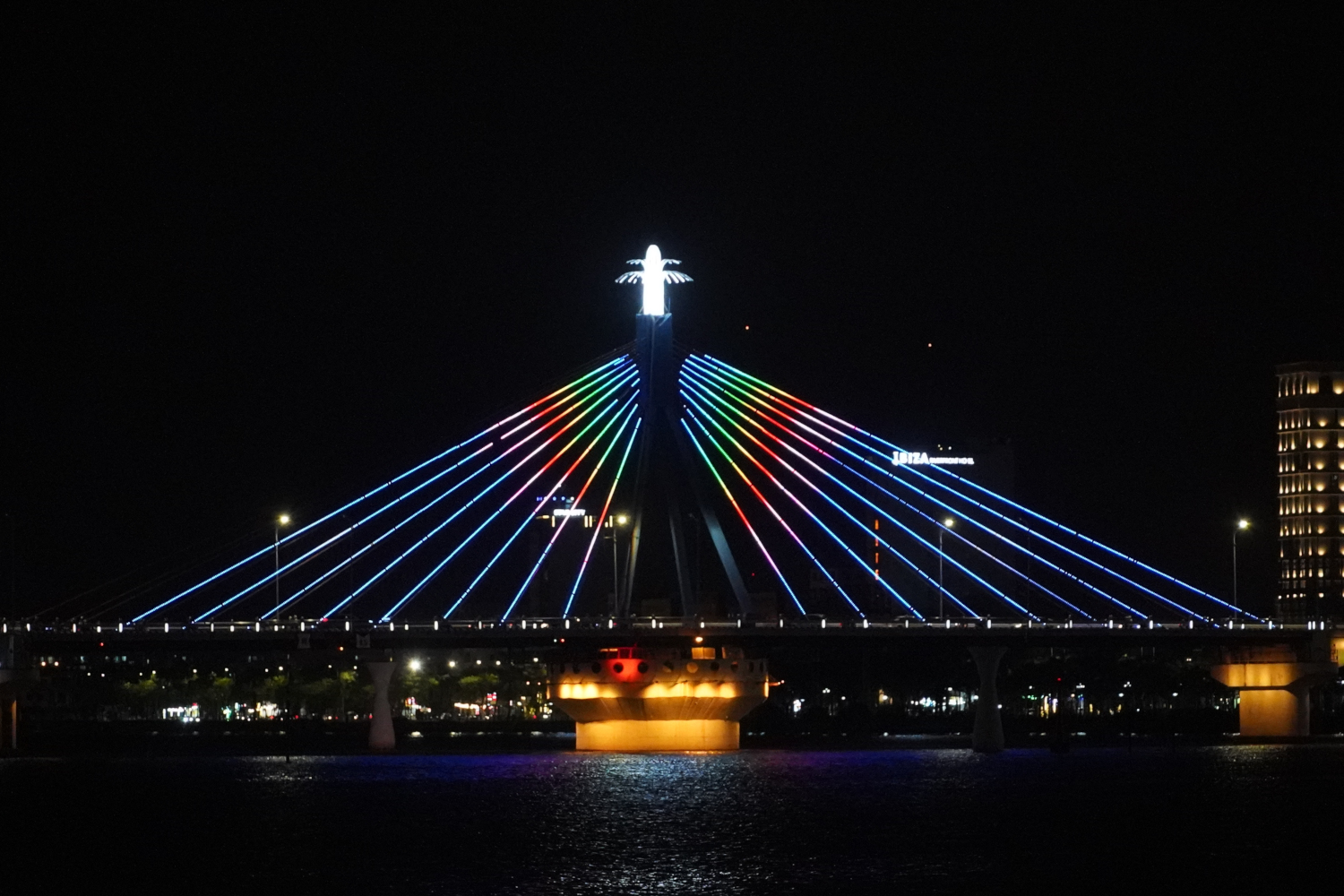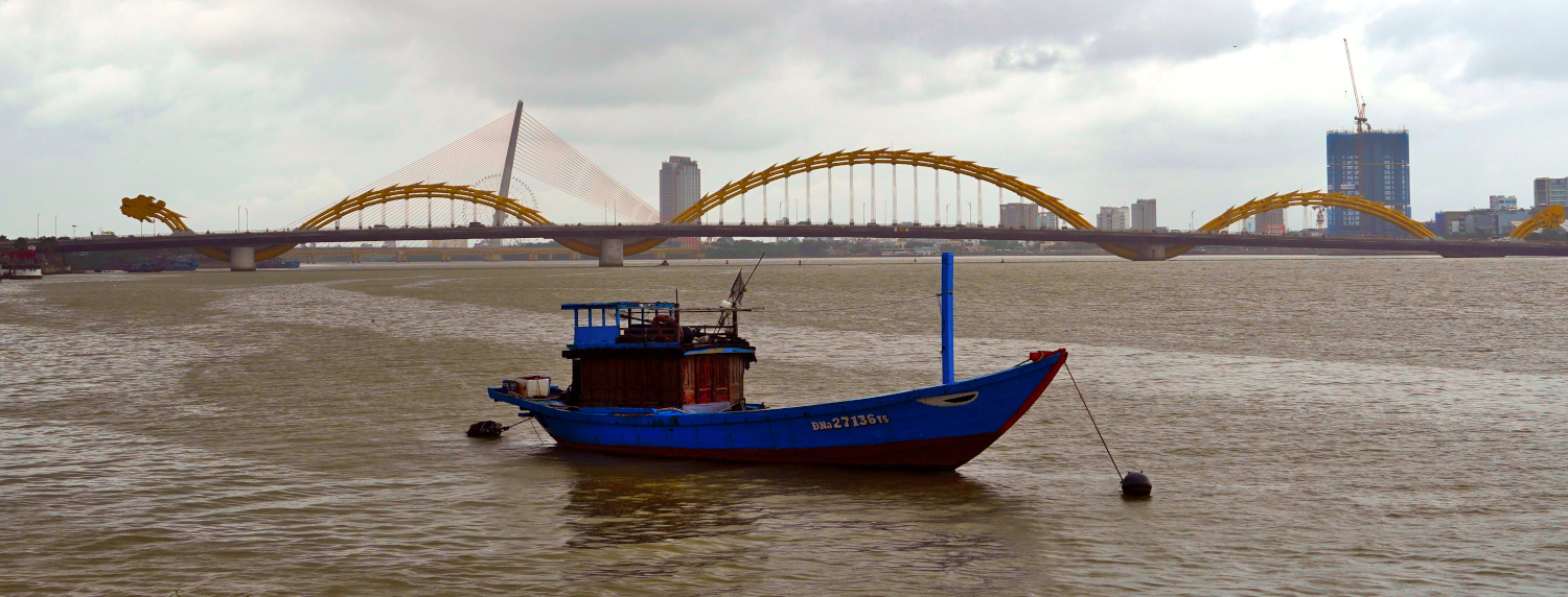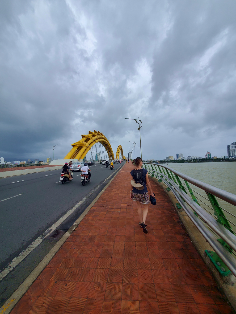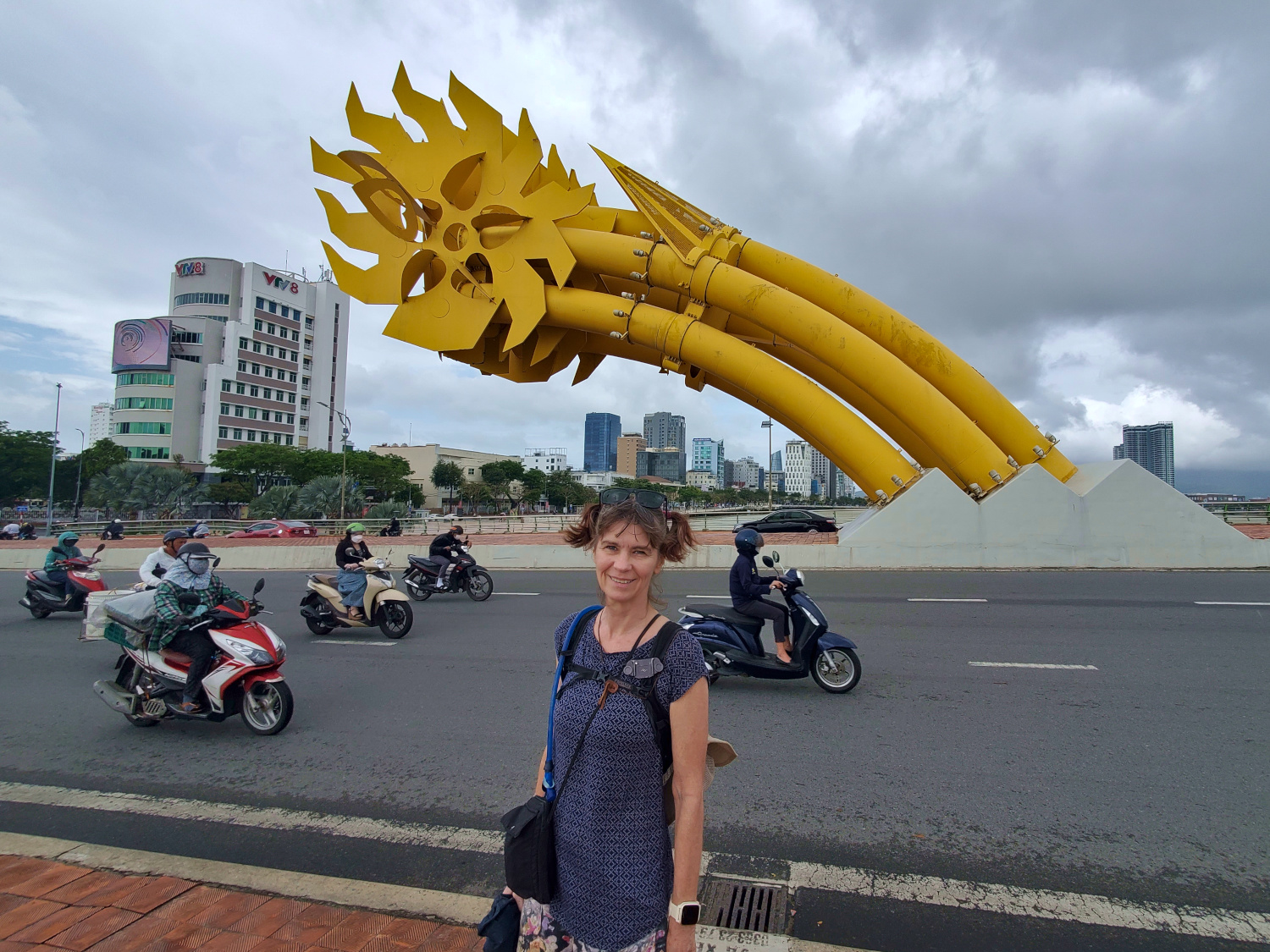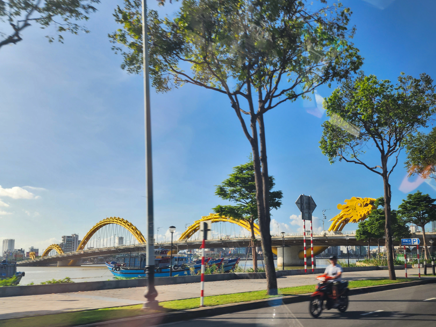 The Dragon Bridge, which is 666 meters long (about 2100 feet), was completed in 2013 and opened on the anniversary of the seizure of Da Nang by North Vietnamese forces (an event the Vietnamese call The Liberation of Da Nang) during the Vietnam War (which the Vietnamese call The American War). It was designed by an American firm, and is quite an imposing sight from a distance as well as up close.