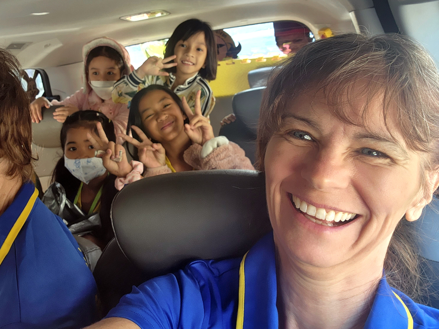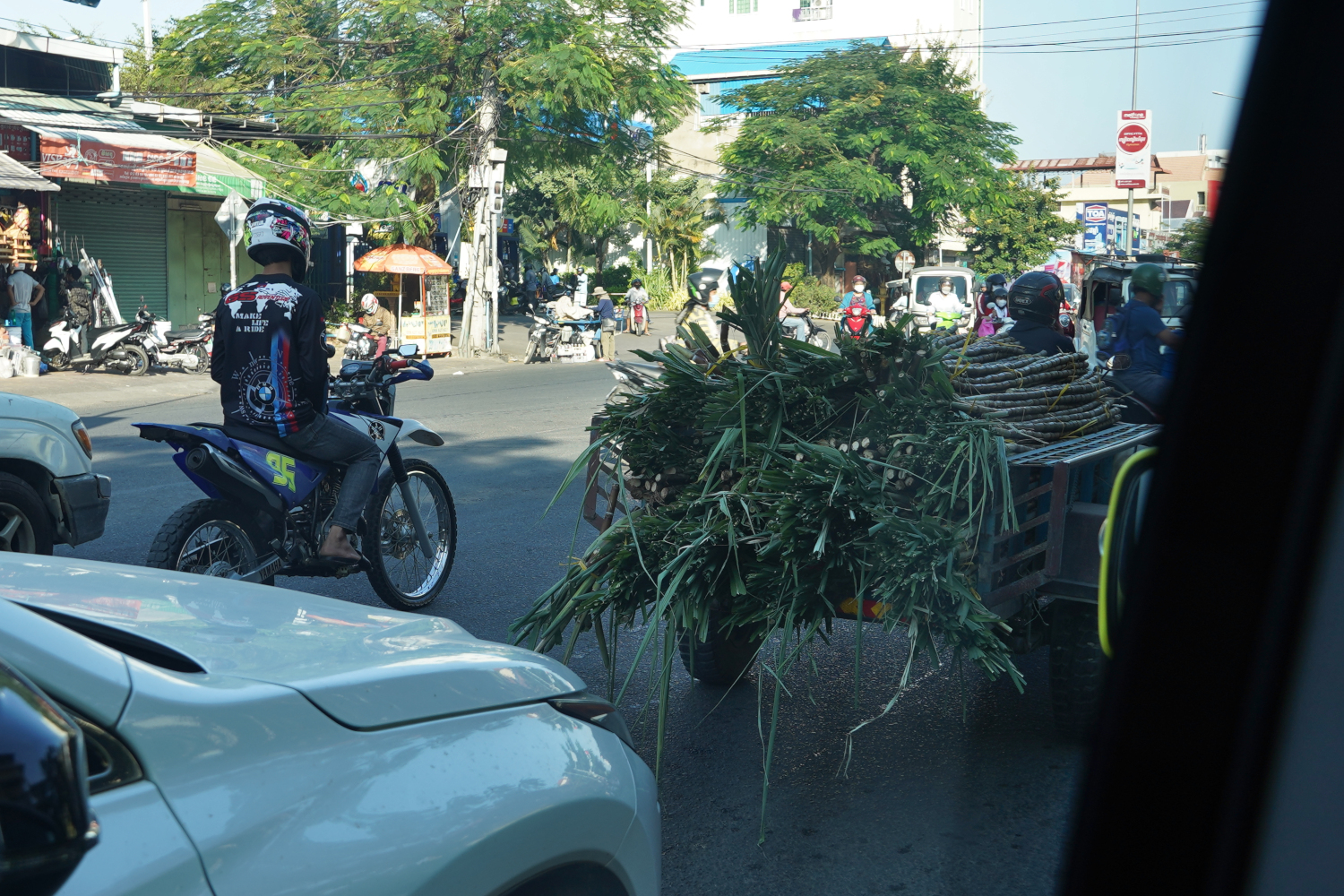 Everyone piled into three school vans, and when we say “piled”, we do mean piled. And stacked. In the Cambodian custom of squeezing an infinite number of bodies into a finite space, we really pushed the envelope on passenger capacity. This even included accommodating the new music teacher, an Italian named Alessandro, who towers at about six-foot-six.