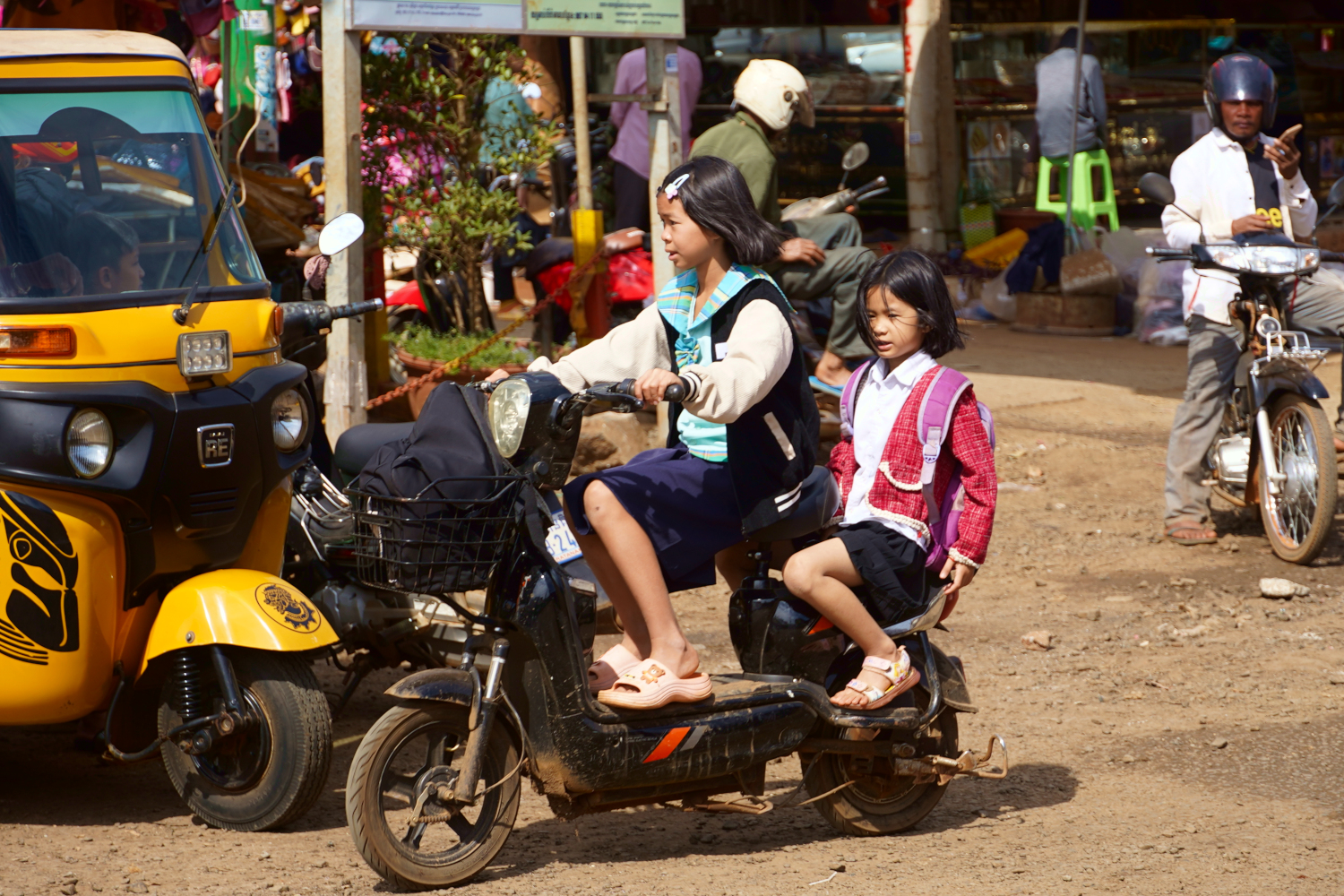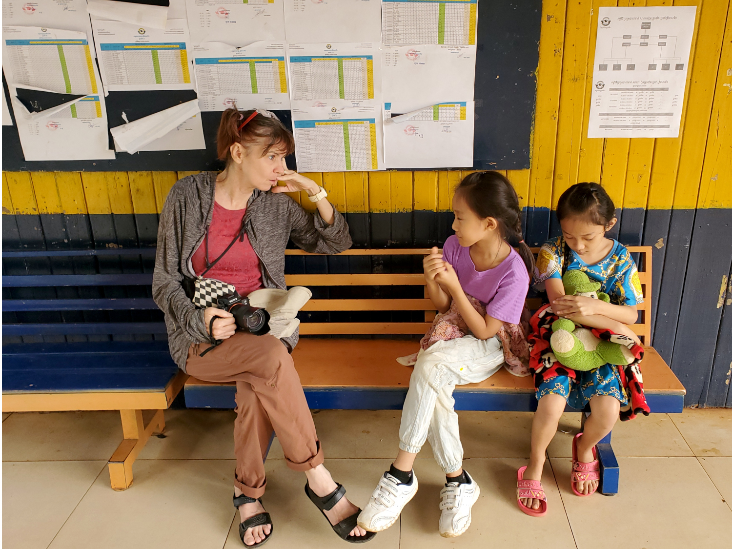 Our first order of business the day after our evening arrival was to take a tour of the school, though with it being Saturday, the activity on campus was minimal. Though the teachers were still hard at work, scrubbing mats, cleaning and prepping classrooms for the upcoming week. We were escorted on the grand tour by Mr. Sopheap’s congenial twin daughters.