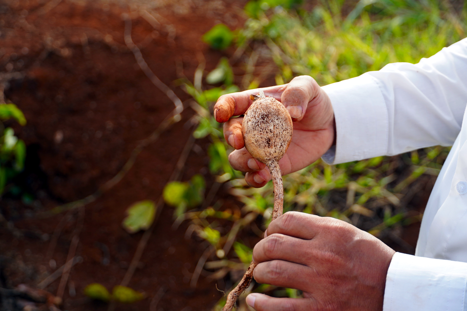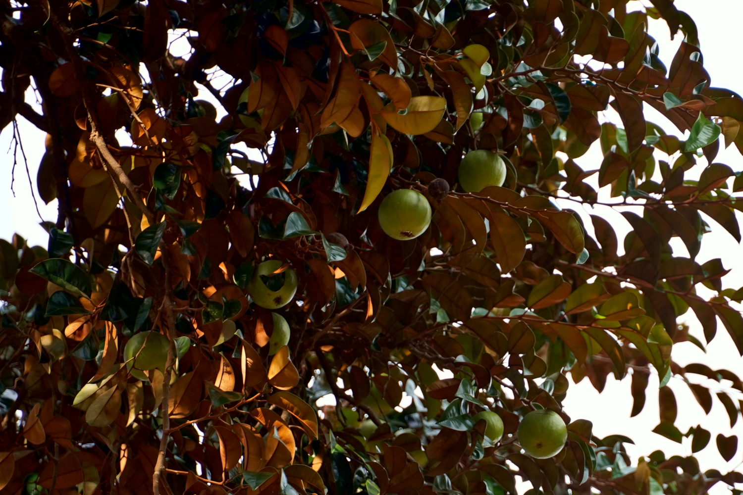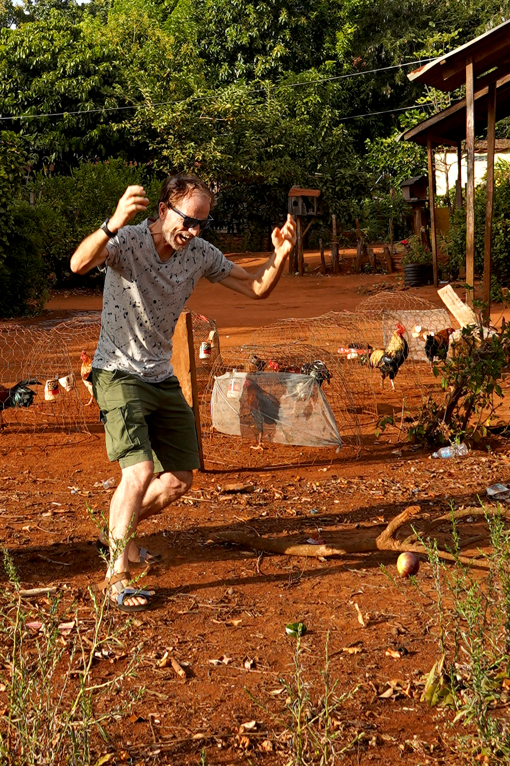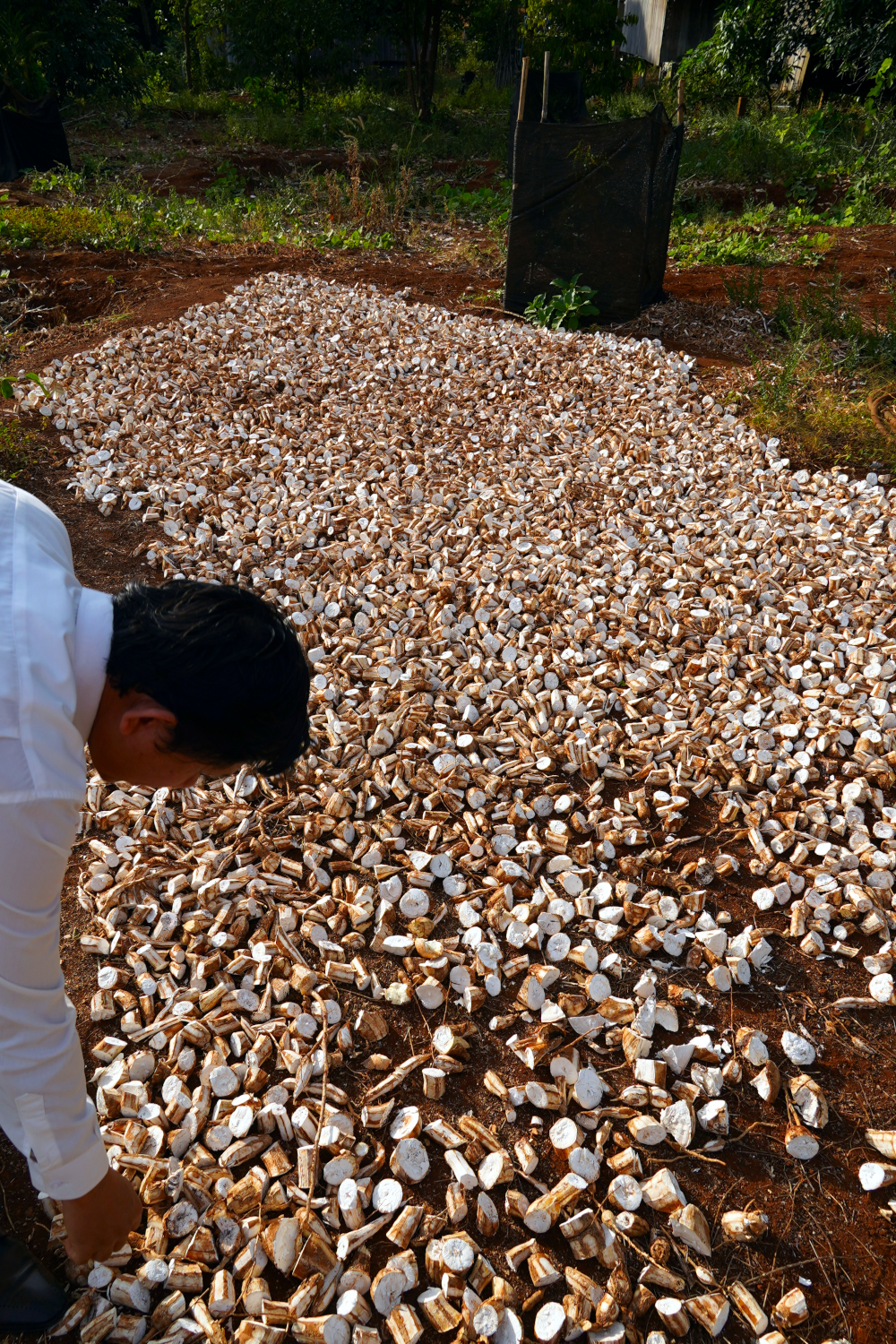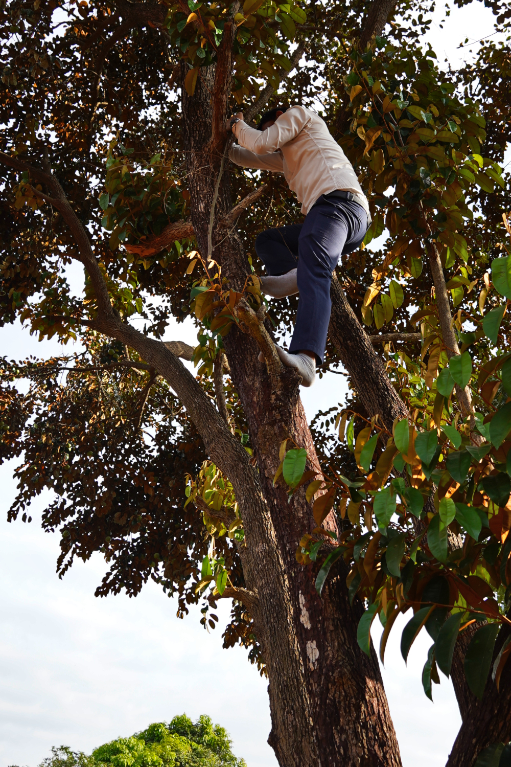 Beside Kompheak’s old homestead was a tall, sturdy tree that he identified as a milkfruit tree. He climbed up into it with ease, and threw down some of the fruit, which we did our best to catch, with limited success. We had heard of milkfruit, but were not terribly familiar with it, and can’t say that we’d ever tried eating it. But on this day we did. And our verdict? Well.. it’s not bad if you’re hungry.