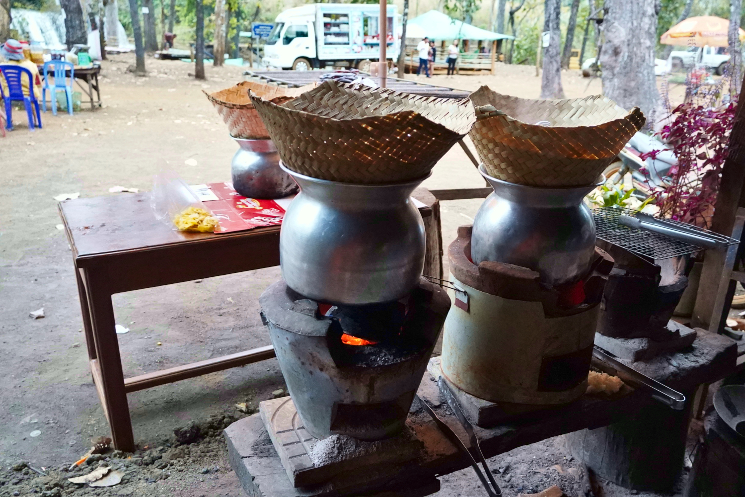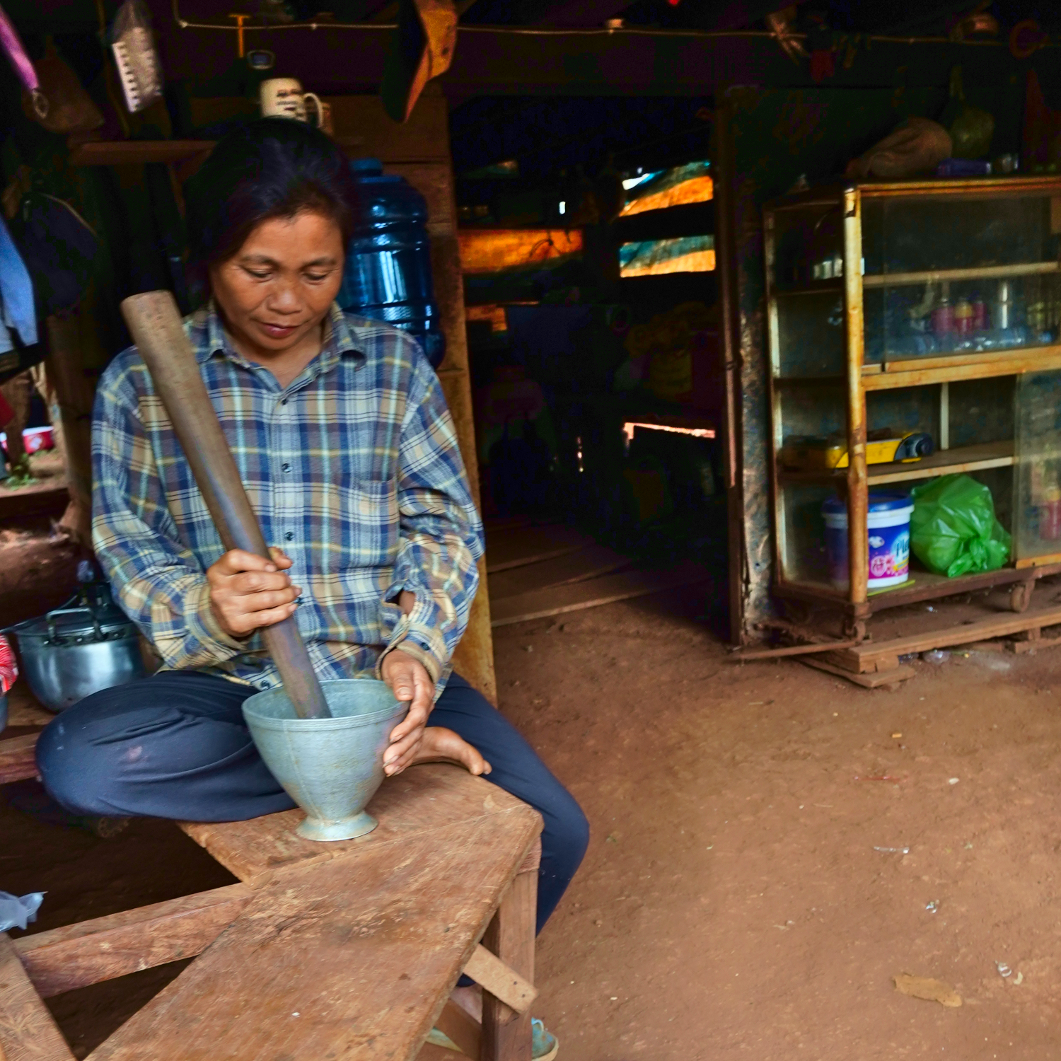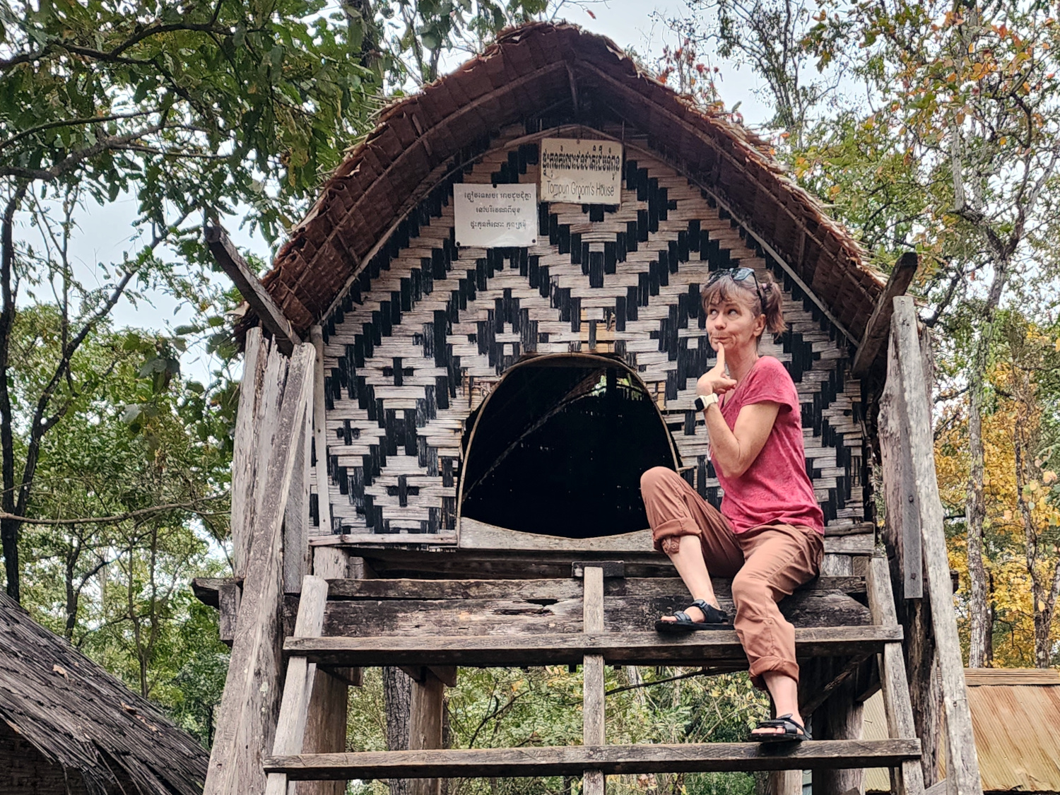 There was also something else that piqued our interest: some examples of the traditional Khmer “maiden hut”. In the good old days, parents would build one of these beside the home for their coming-of-age daughter to sleep in alone. Except… well, not always exactly alone. The young men might come a-courting, and if one of them caught her fancy, she might invite him to spend the night too. And then if all went well, they might get hitched.