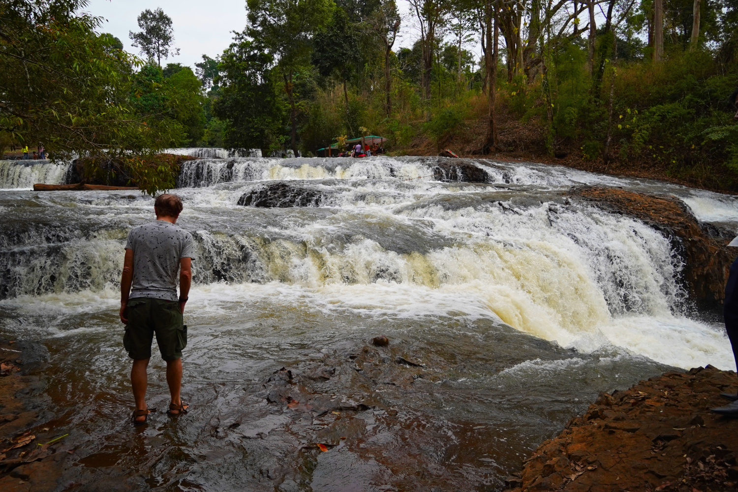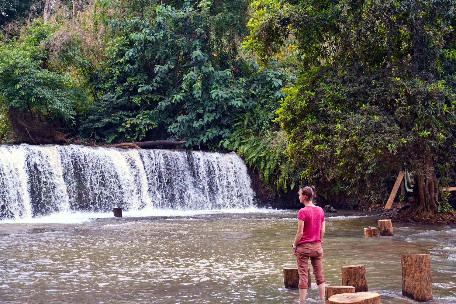 To cap off the day, we went to a waterfall and did some wading in the water. Nearby were the obligatory concession stands, where at our hosts’ insistence, we had an ice cream cone — coconut flavored — that was not bad.