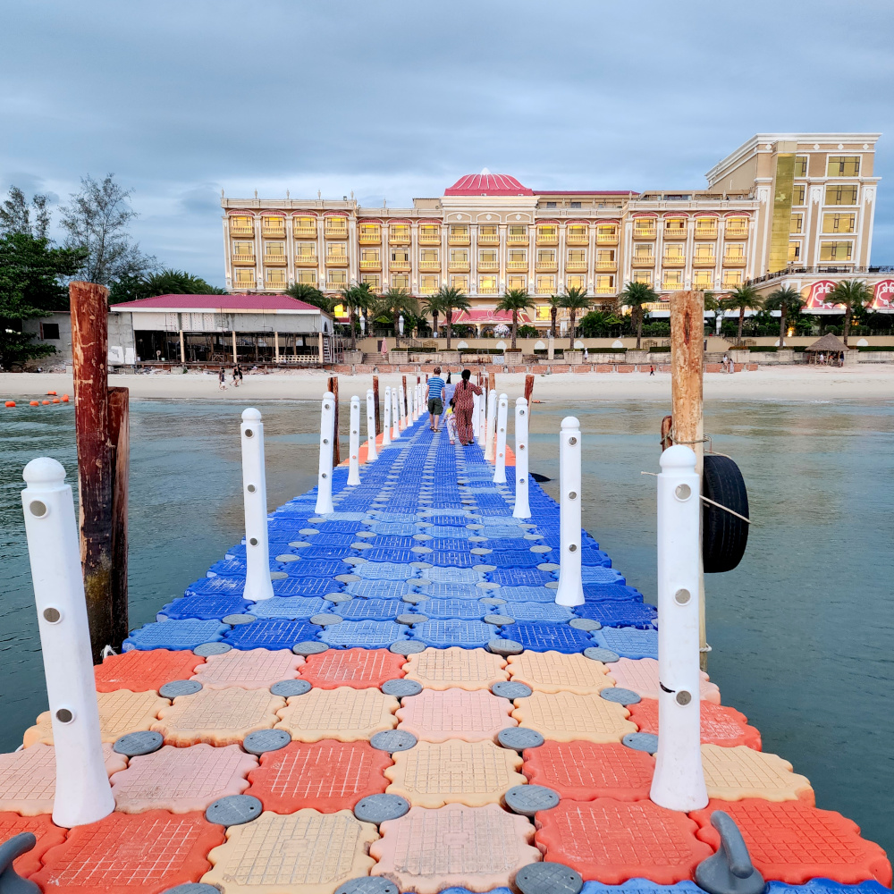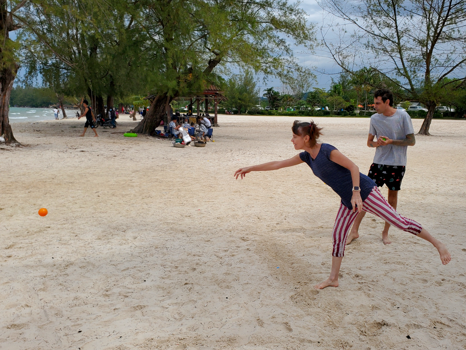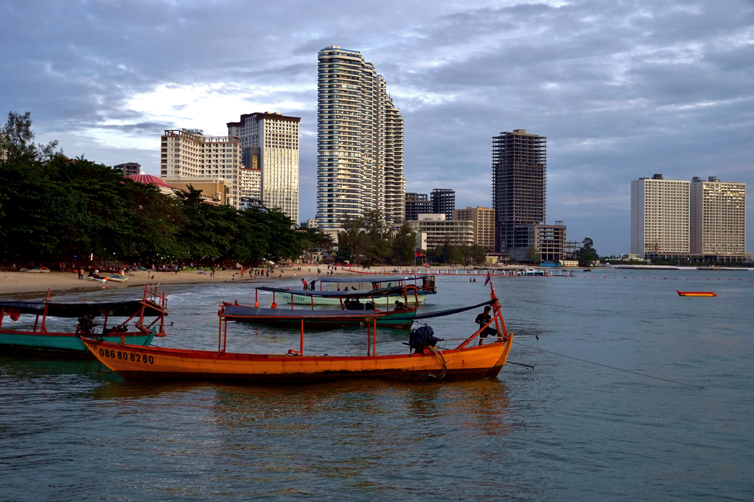 School teachers in Cambodia, like members of every other profession and occupation, often put in some long, hard hours. But there are quite a few holidays and special occasions when they get a break. And, for our school at least, there was an occasional weekend getaway for teachers and staff collectively. One of these occurred during our time volunteering, and we were invited to tag along. It was an overnight “team building” excursion to the coastal resort town of Sihanoukville (pronounced See-a-NOOK-ville).