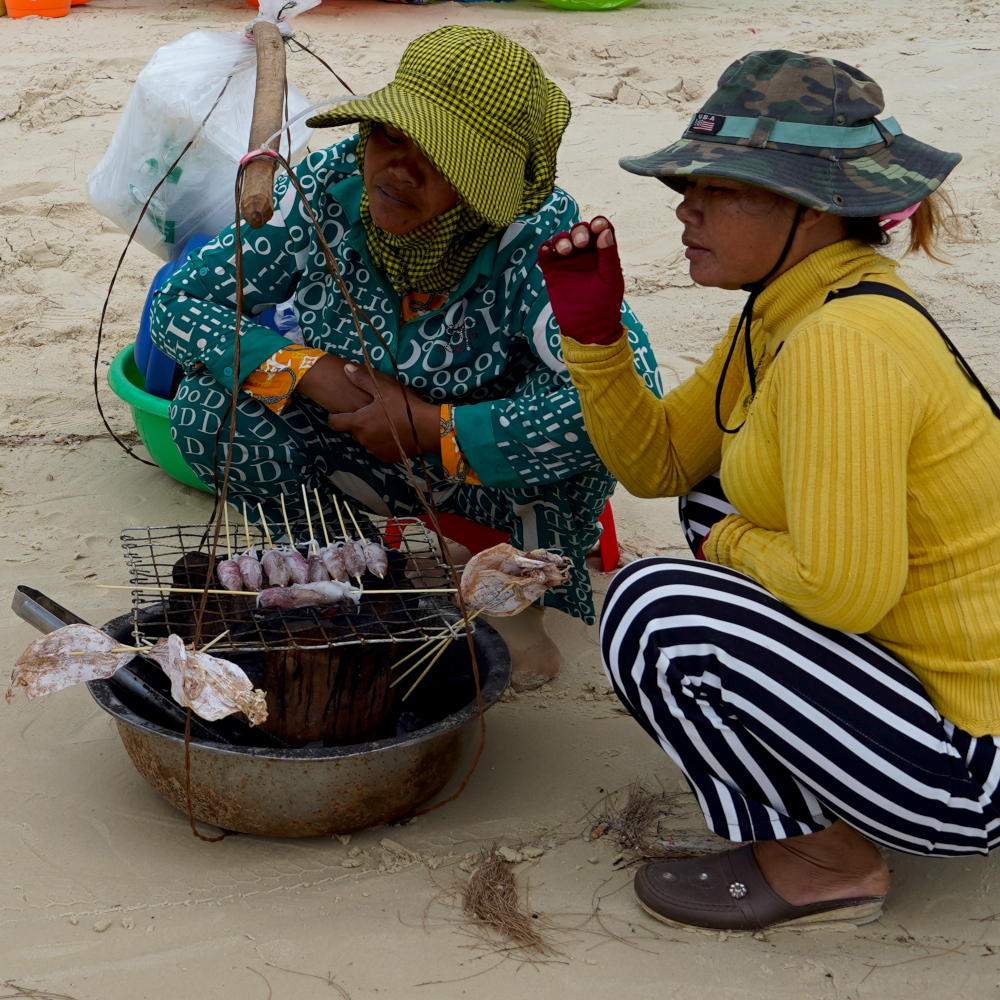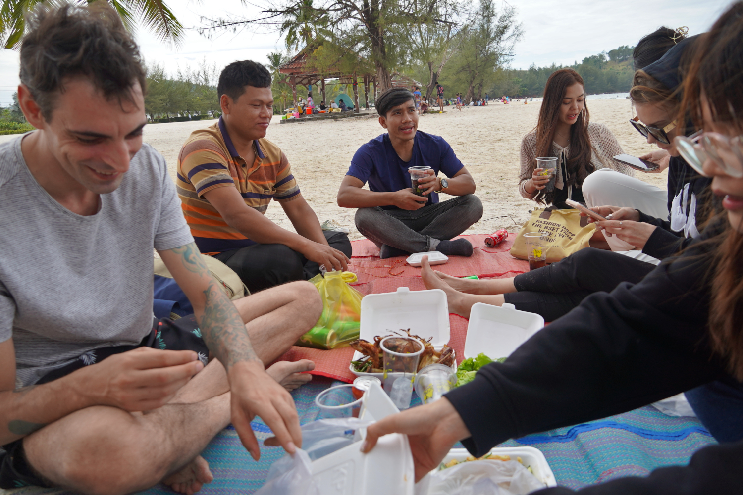 But we arrived, safe and sane, and unloaded onto a nice beach. Everyone began ordering lunch from some local vendors; and while vegetarian fare can be difficult to find in Cambodia, we managed to round up some grub.