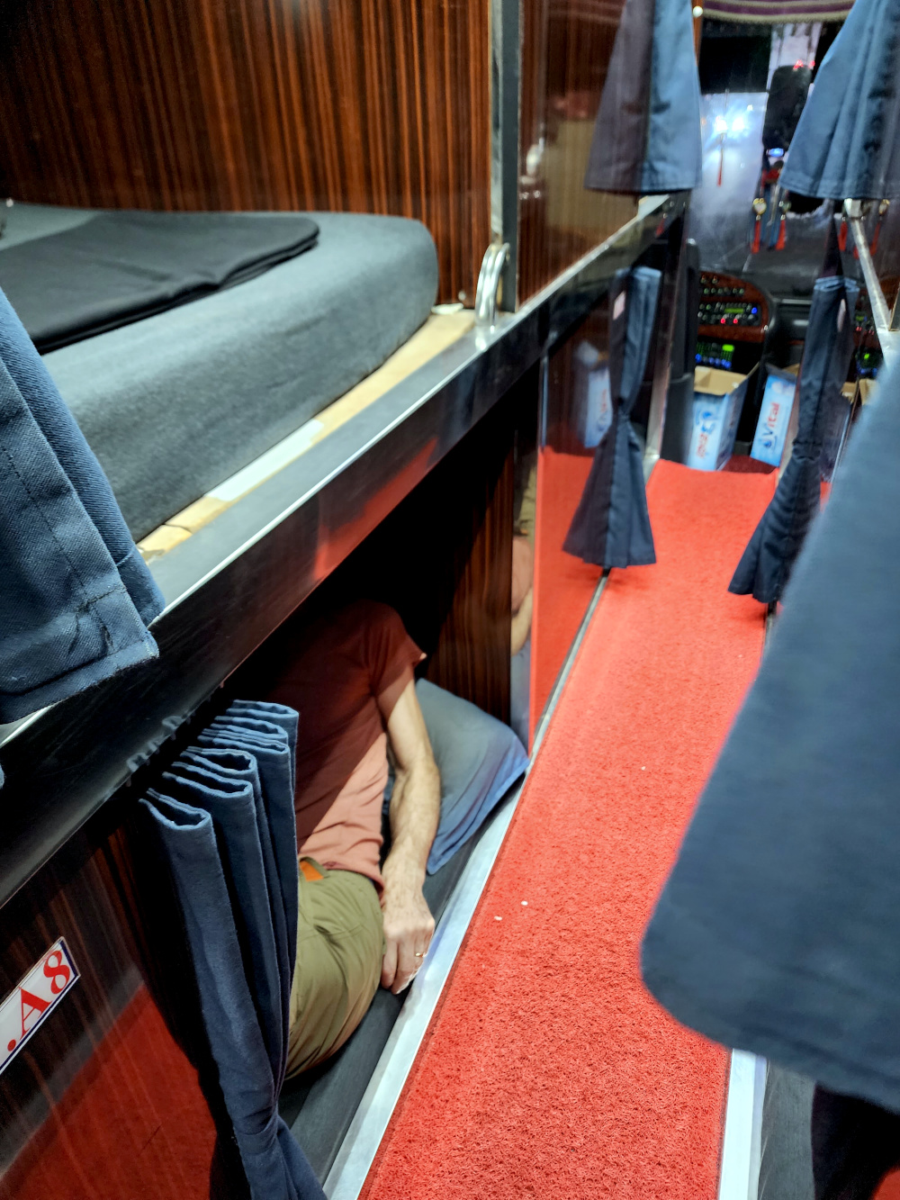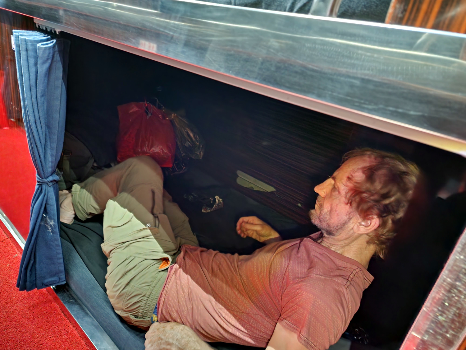Our bus to the Thailand border was another night bus. But this one was much more comfortable than the last; this bus had actual bunks in it, so we could actually lie down and at least attempt to grab some winks along the way.