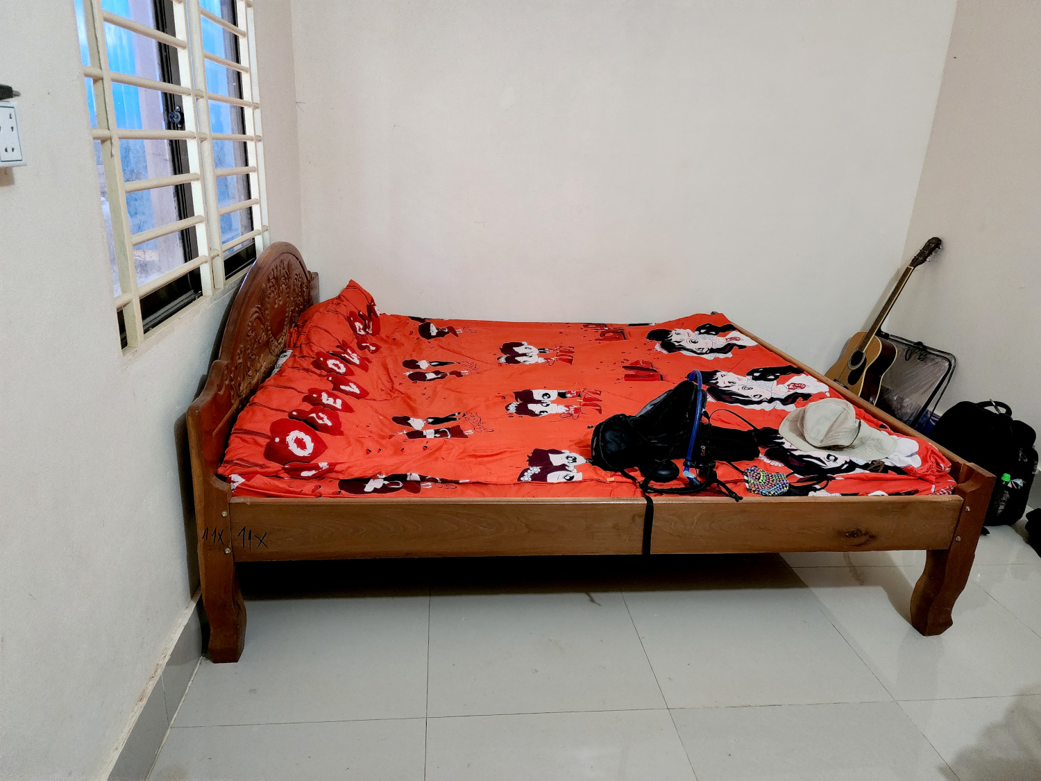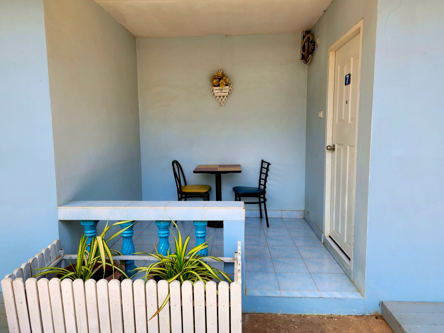 And then someone gave us a lift to our new living quarters, about half a mile away. It was really like a motel room, a single room with a bathroom, but it was in a little complex of about half a dozen such rooms that were being used as permanent dwellings. There were no curtains on the window, so we had to improvise. But at least there were new sheets to put on the not-too-uncomfortable bed. There was no AC, but there was a (somewhat noisy) overhead fan — one of the first things we did was to purchase another fan, as the room could get quite warm. There were no kitchen facilities, but there was an electric kettle, which was really all we needed.