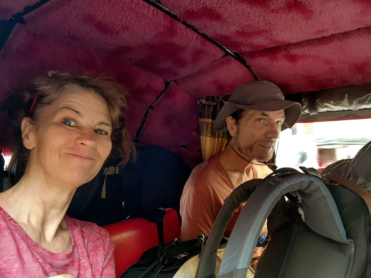 But when we looked more closely at our paperwork, we saw to our horror what the problem was: we’d mistakenly printed out our old visas, which had indeed expired, rather than our new ones. We pulled up the new ones on our phones to show him that we were indeed legit, but he said that regulations required that they be printed out — and there was a little shop back down the stairs in no-man’s land that could do it for us.