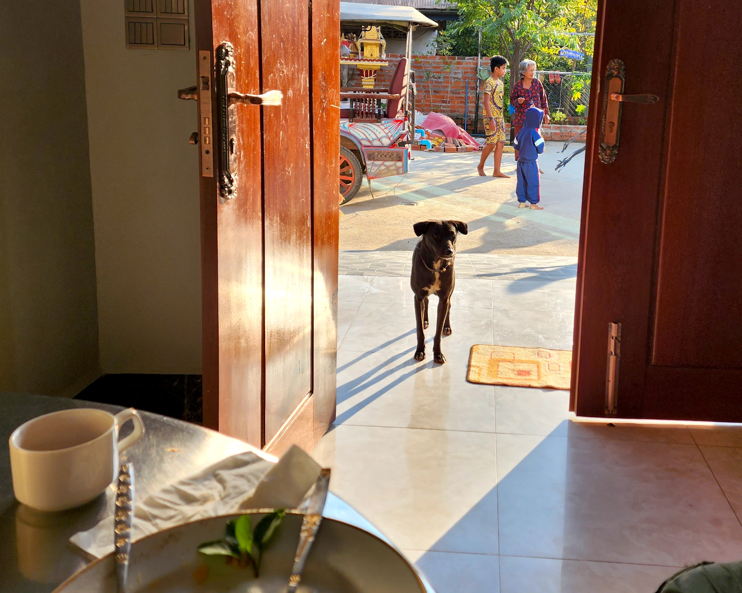 The room was quiet, comfortable and immaculate, and the host family was very welcoming. It was going to be a restful respite away from the noise of the temple — while there were temples in Battambang producing amplified sounds as well, they were far enough away that they didn’t disturb us.