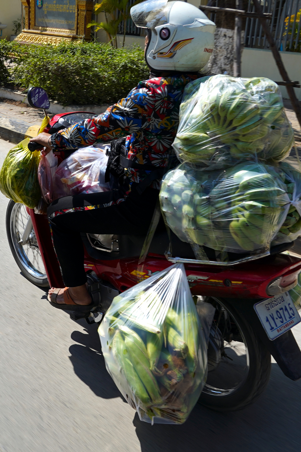 One reason we wanted to make a getaway was to shop for supplies. Technically, our meals were all provided at the little open-front restaurant around the corner (one of the perks of being a WorkAway volunteer at a local school). But we sometimes supplemented the food they served with other ingredients, like nuts. And we usually provided our own breakfast of oatmeal at home. And there were no grocery stores in Phnom Sampov except for a handful of tiny “mom and pop” stores. (Eventually, we discovered that there was also a little marketplace where vendors sold produce. But it was well hidden and not on our route we walked to twice a day to and from the school .)