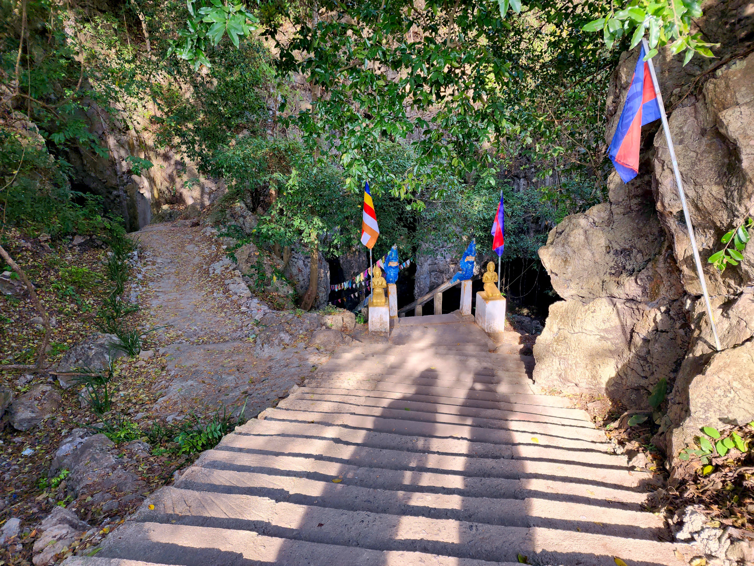 The mountain called Phnom Sampov, which stood in front of our little apartment in the village called Phnom Sampov, was a fascinating place to explore – for the bats, the monkeys, the pagodas, the history, and the hiking. It was so intriguing that, having hiked up it once, we repeated the experience the following day. Except it wasn’t really a repeat at all.