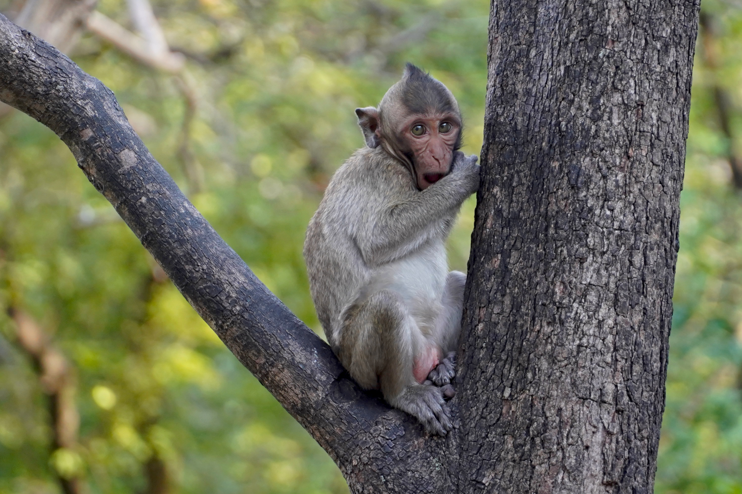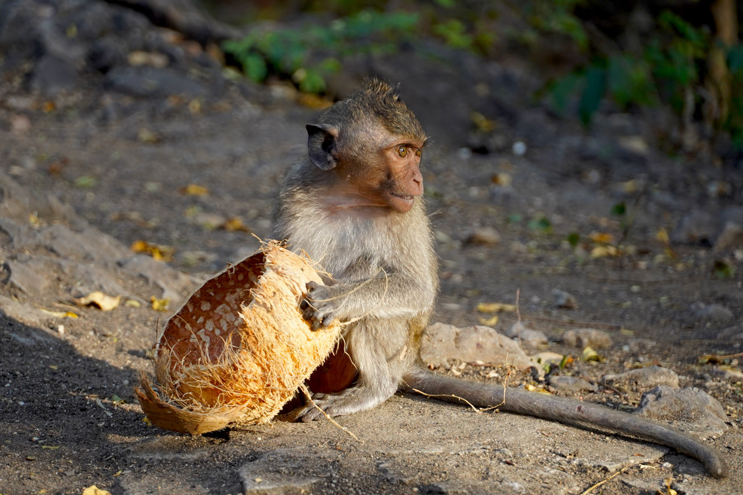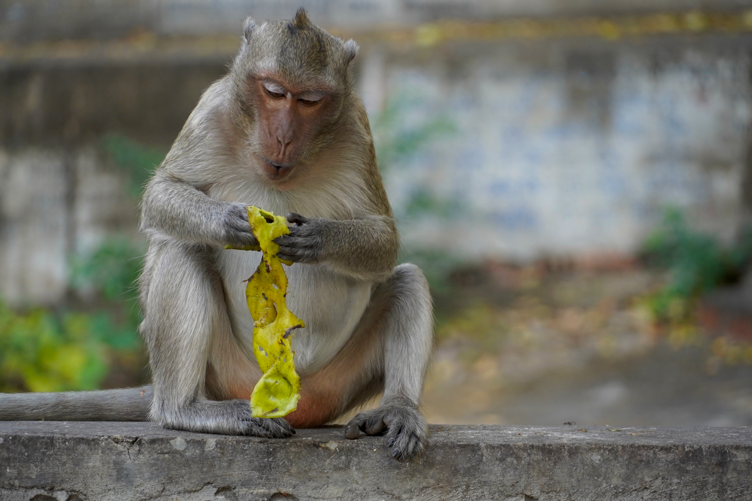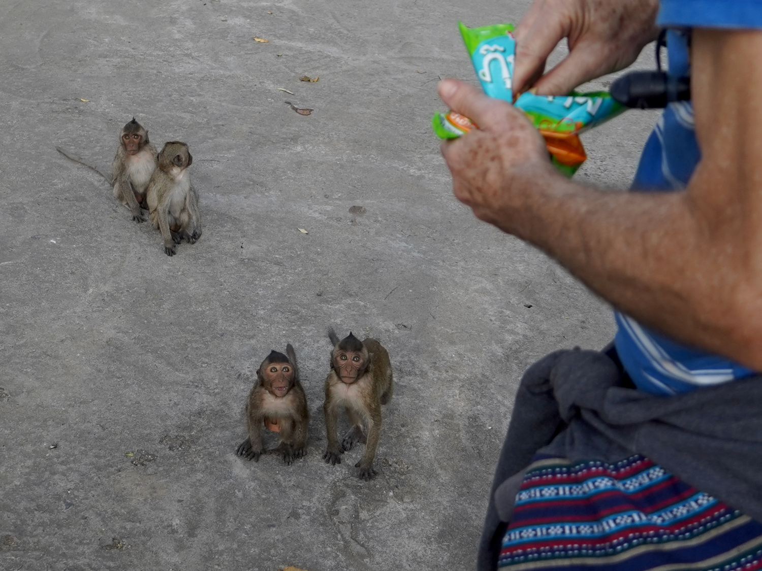 The monkeys know the sight of those packages. They know the crinkly sound when those packages are opened. They know the smell of the treats therein. They know that sometimes, the hairless upright primates who purchase those goodies will accidentally drop a morsel or two on the ground – or even, oh joy, deliberately cast one or two in their direction.