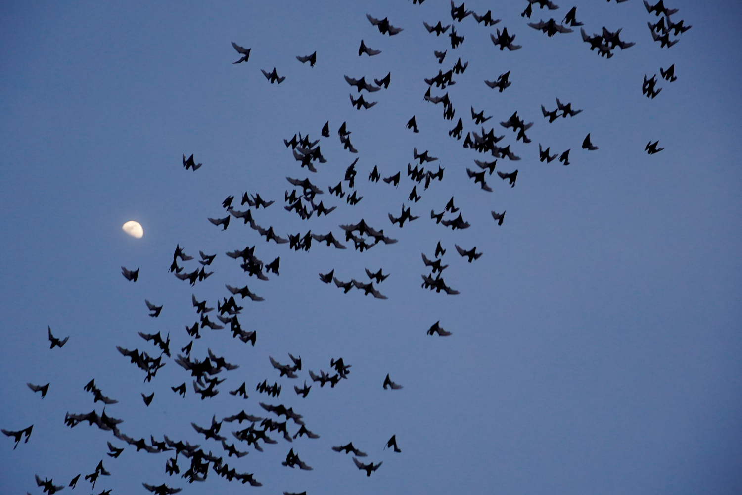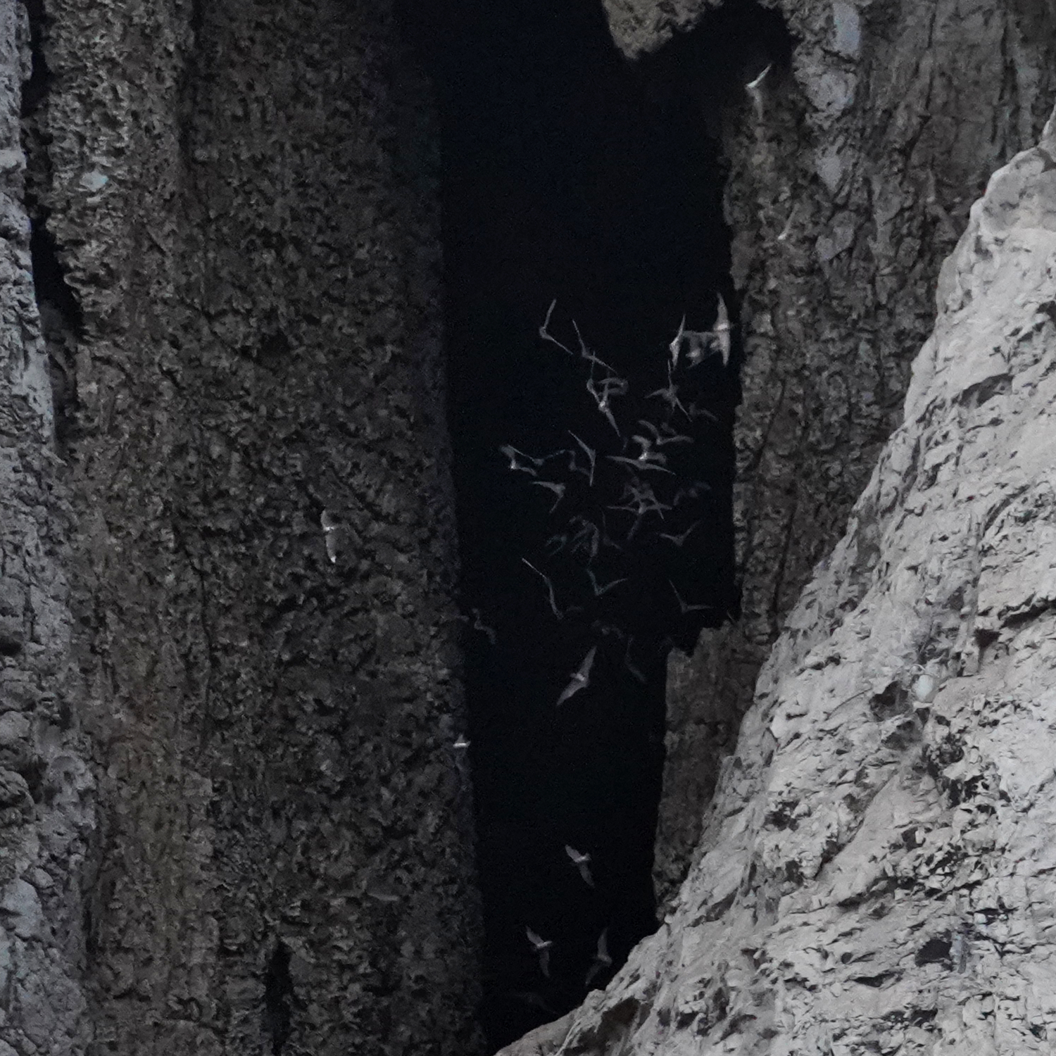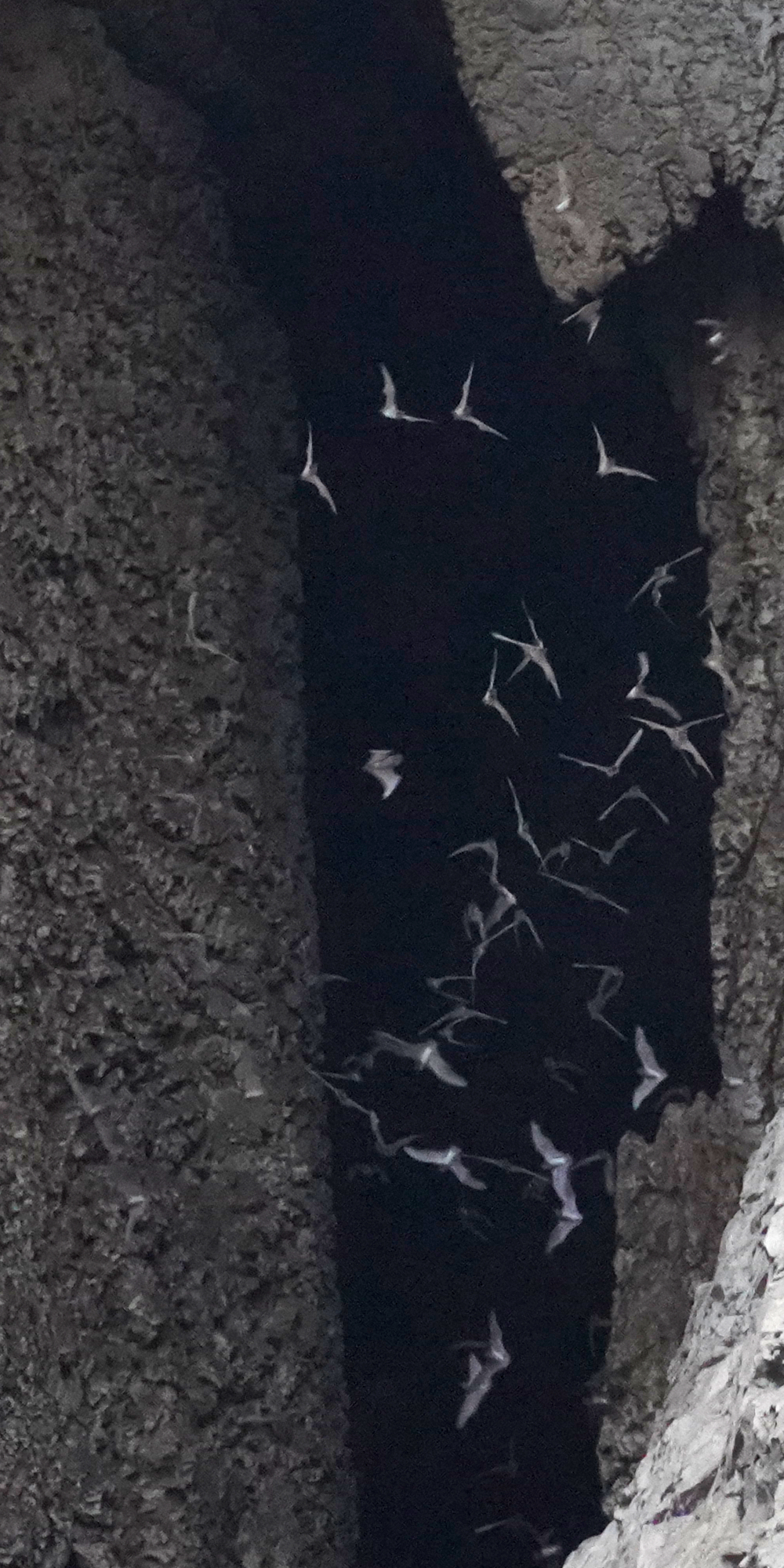 From this comic scene, we hiked back down the mountain to get ready for the big show: the magnificent exit of the bats. As on the day before, they began swarming out at 6:00 on the dot – though of course their timing was calibrated to the sunset rather than to the clock.
