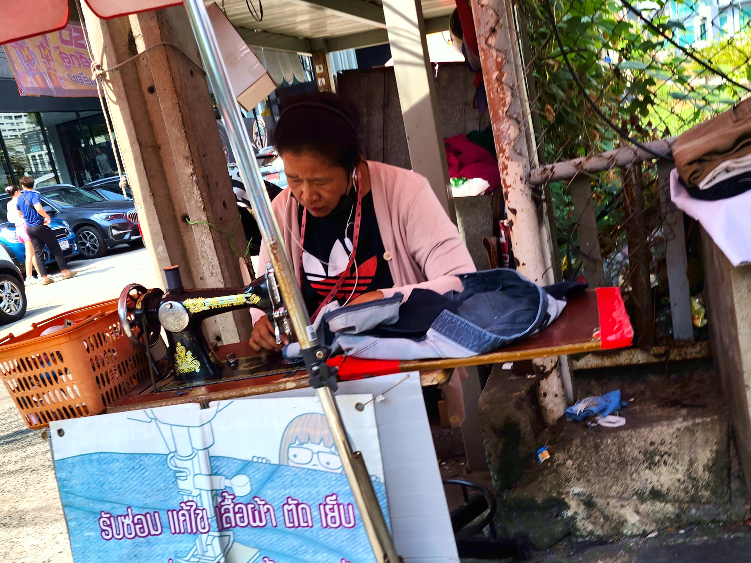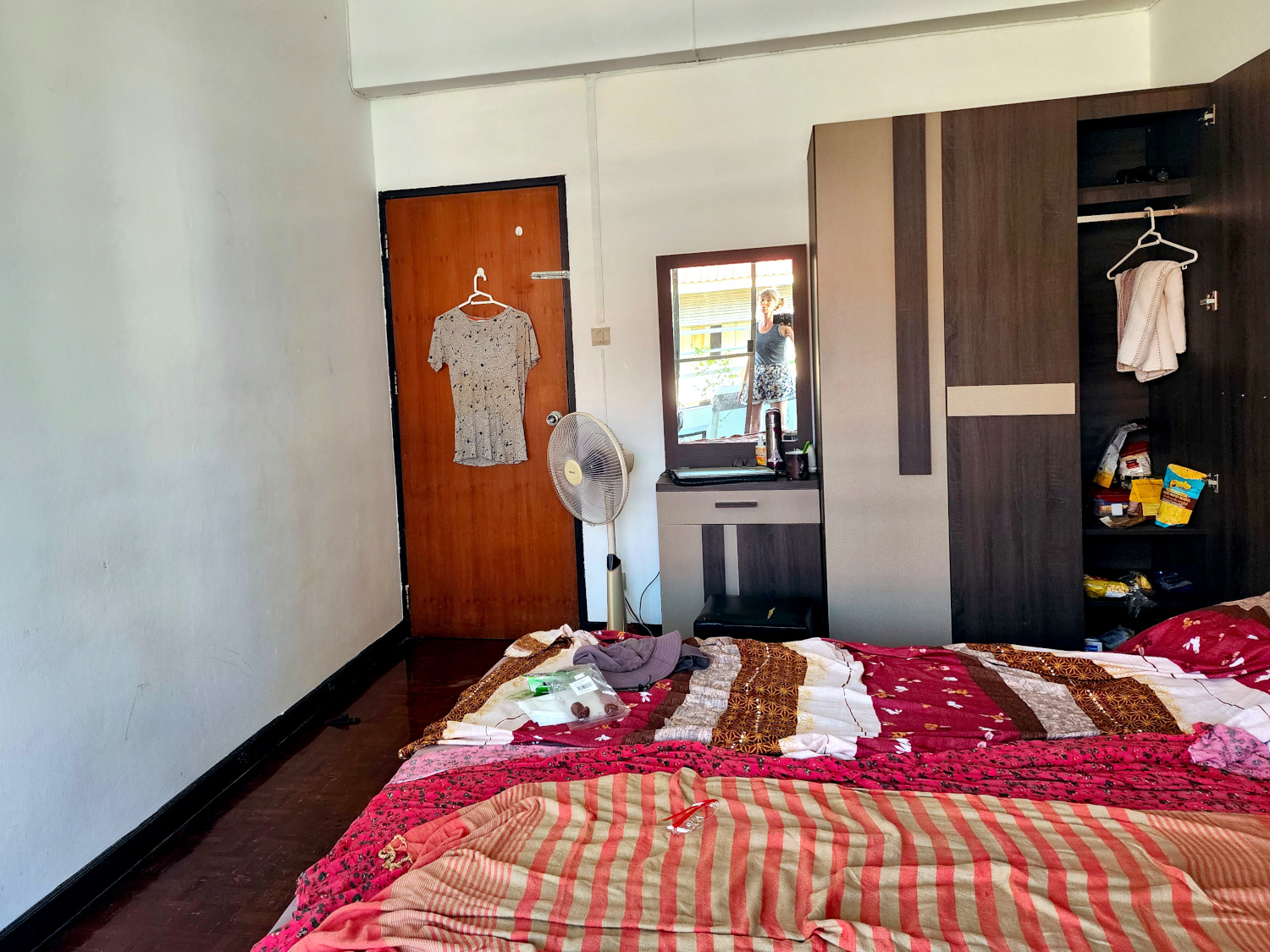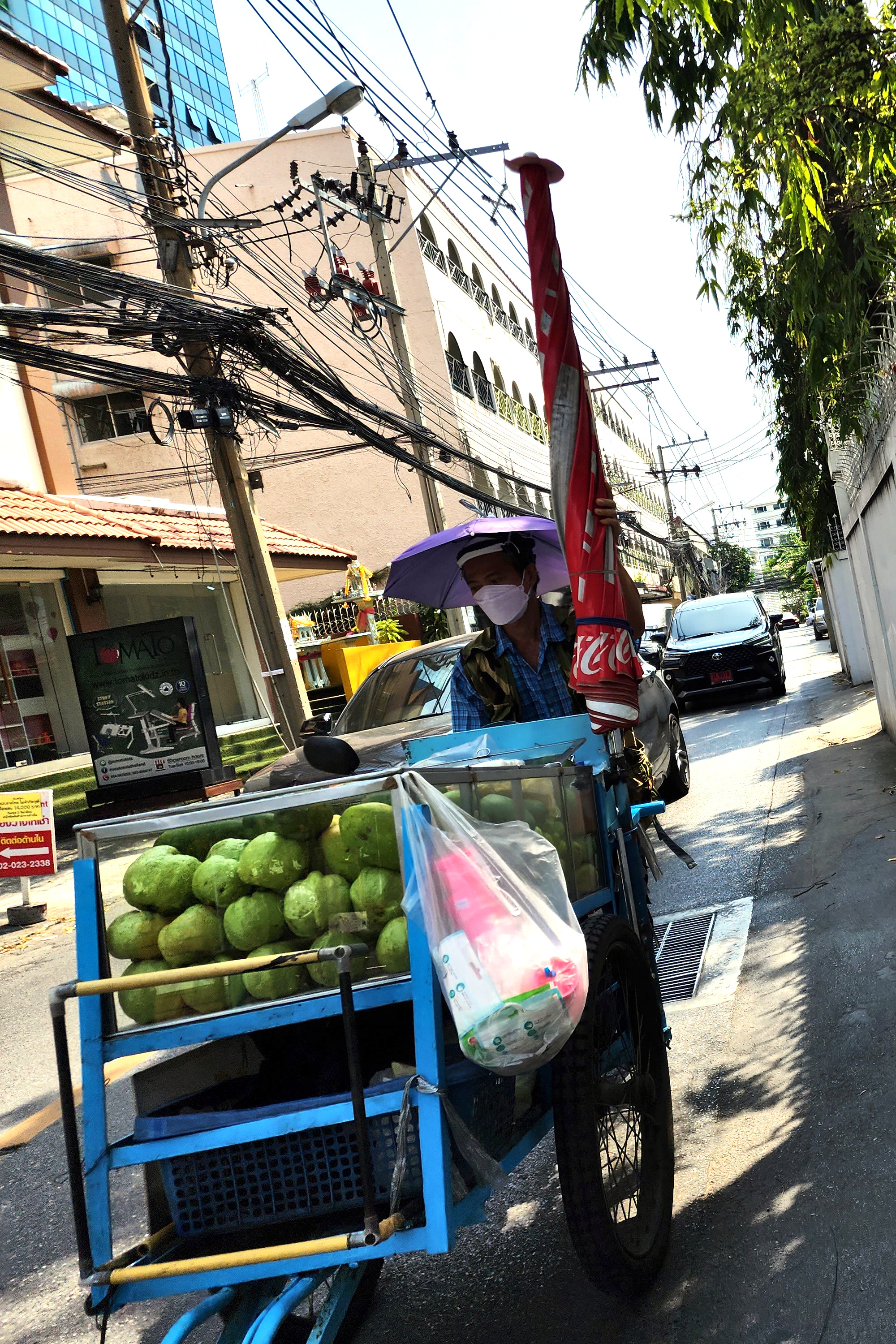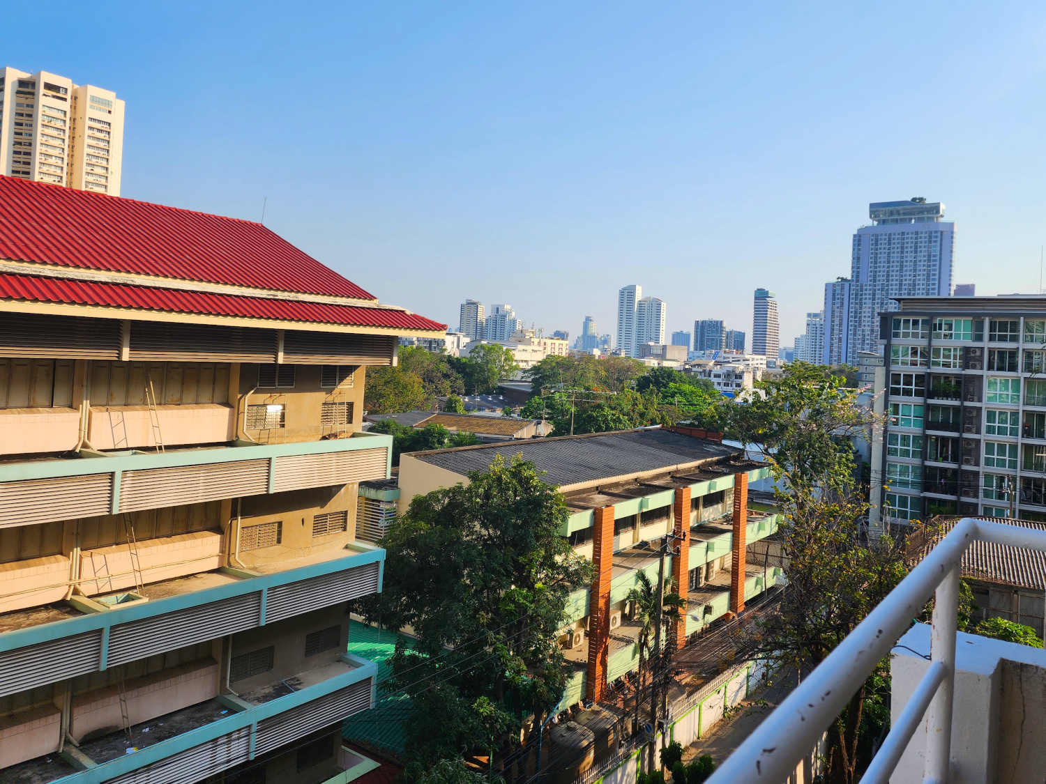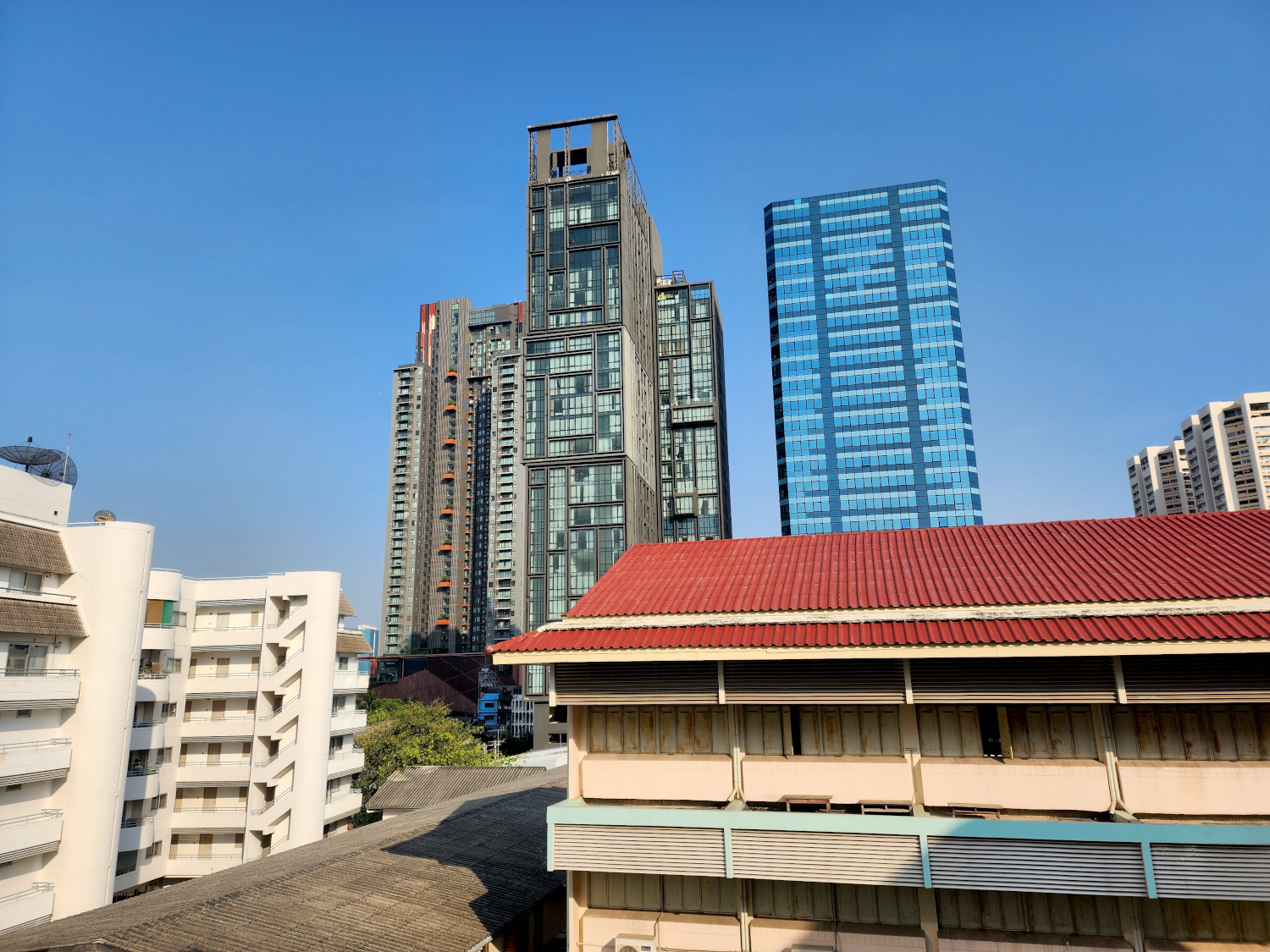 After having a late dinner and finally getting settled into our digs in Bangkok, we had a good night’s sleep in our comfortable room. It required first going into the living room and asking one of our hosts to please hold down the noise a little, as he was engaging in an animated (i.e., boisterous) conversation with a lady friend. He cheerfully complied, and we got some snoozing accomplished, not waking up until about 8:00, thanks to the bell from the school across the street. Not to mention the boisterous students, some of whom were climbing out the second story window and onto the awning of the school building. Kids will be kids, in any country.