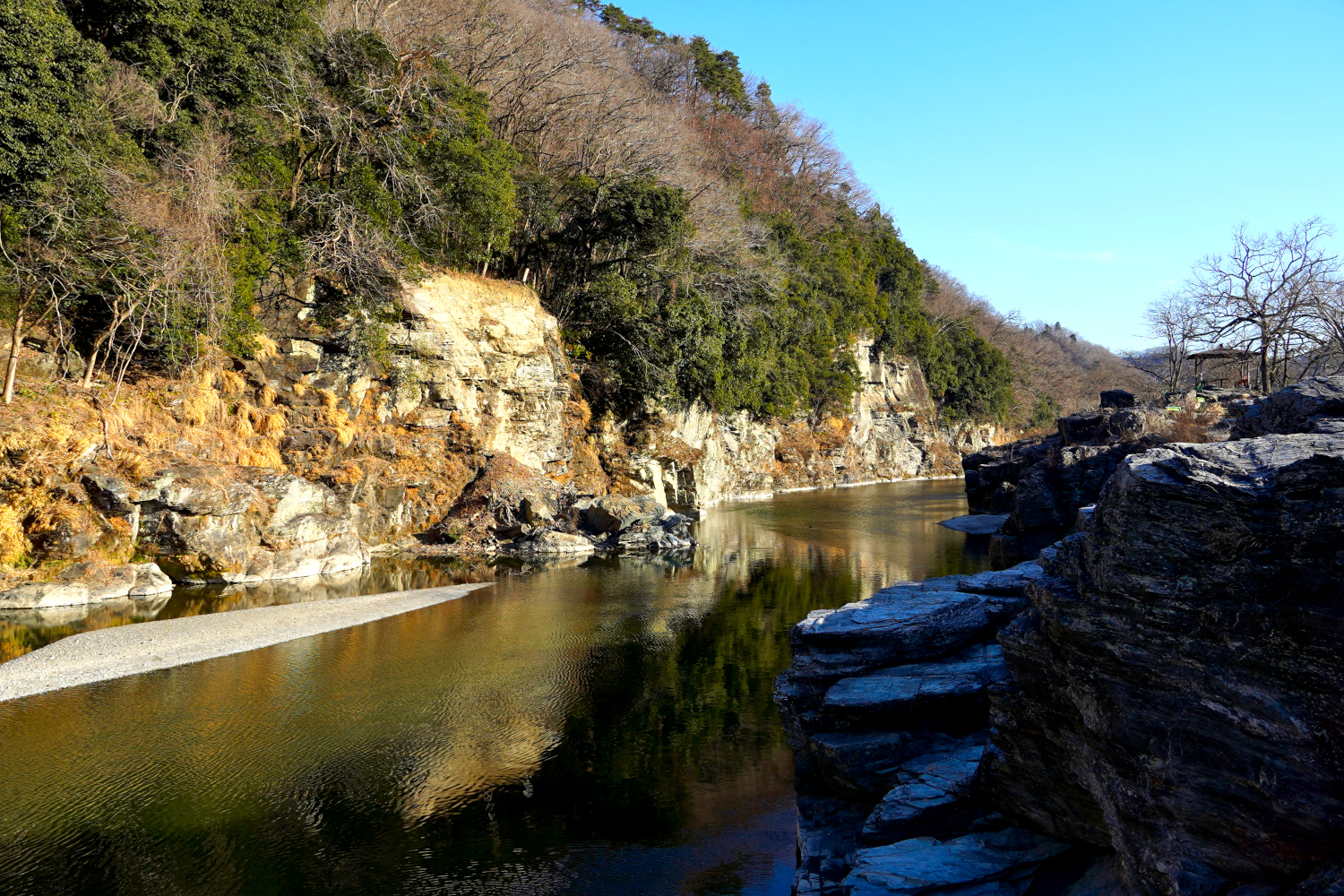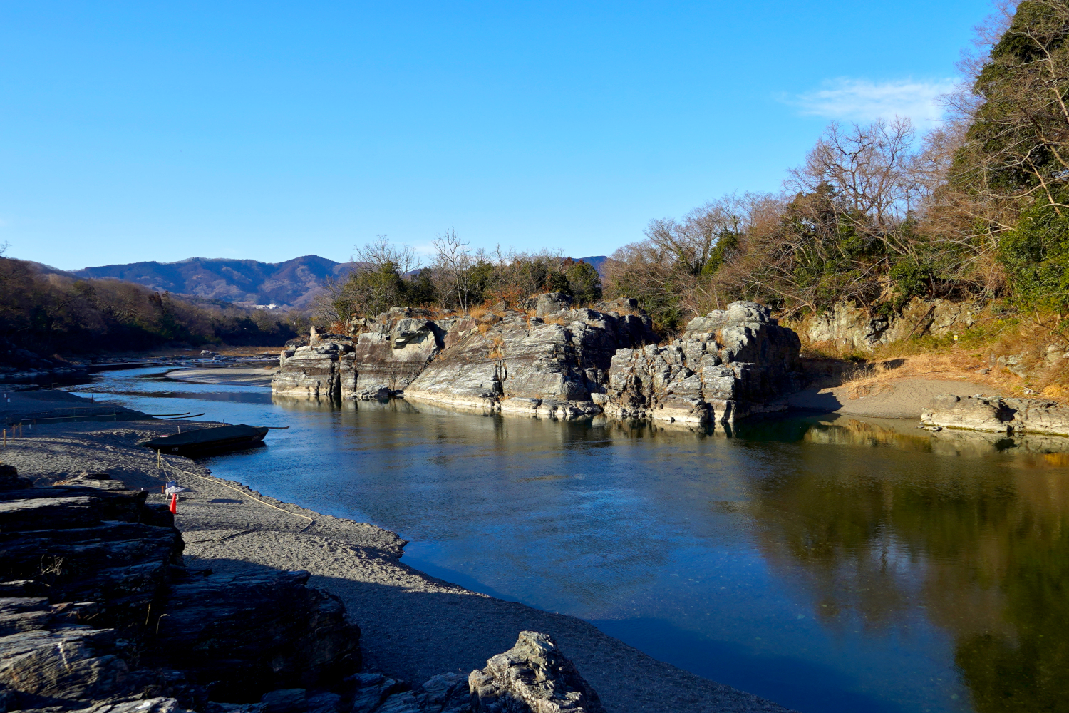 But even in winter the river was quite scenic. The gorge you walk down into has riverbanks layered with rock to form natural steps. This famous formation, which geologists among others are fond of, is known as Nagatoro Iwadatami. The latter word means something like “rock tatami”, because the slabs look like… well, tatami. If you squint.