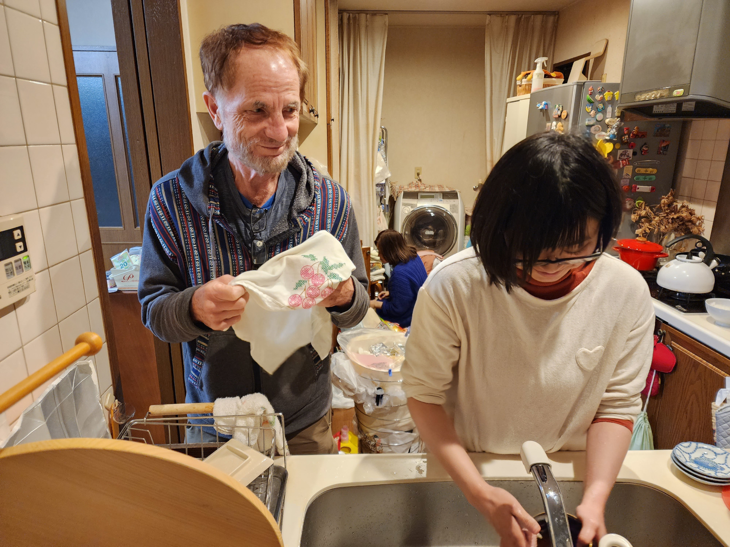 We were back at home for dinner, and another one of Yukari’s imaginative home-cooked meals. And we were happy to help with the dishes afterward.