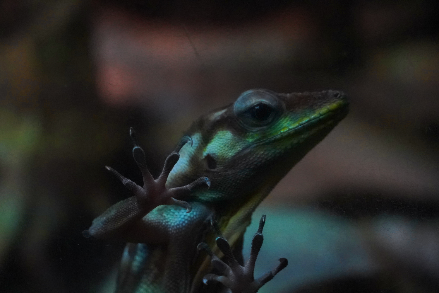 Next came the reptile house, one of our favorite features of the zoo — though its name is not entirely accurate, because inside you’ll find not only reptiles but amphibians — including the rare Northland Park Gecko.