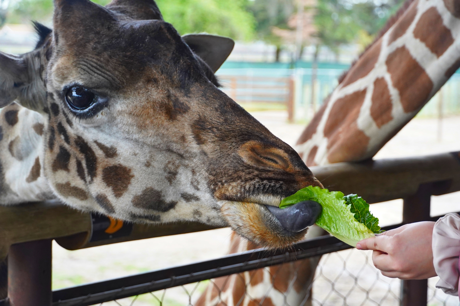 But for us, the highlight on each of the two times we’ve patronized this zoo has been the giraffes. Not only because they get up very close to you, poking their heads right over the fence on the special platform built for viewing them, but also because you can feed them lettuce and other vegetation. Unfortunately, you’re not allowed to pet them. But you can make friends with them by providing them grub, and it doesn’t cost anything to do so. You just have to be careful that those long, agile tongues don’t slime you.