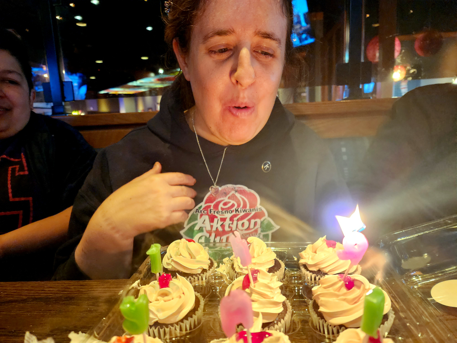 Lori really got into the spirit of the occasion; but what she enjoyed even more was her birthday, which came a couple of days later. For that milestone, we all went to Chuck E Cheese, and had a blast with all the little games. Who isn’t a sucker for carnival games, especially when you can compete against each other. We were joined by Lori’s sister Dawn, who lives a pretty good drive away, and whom we’d met only a couple of times previously.