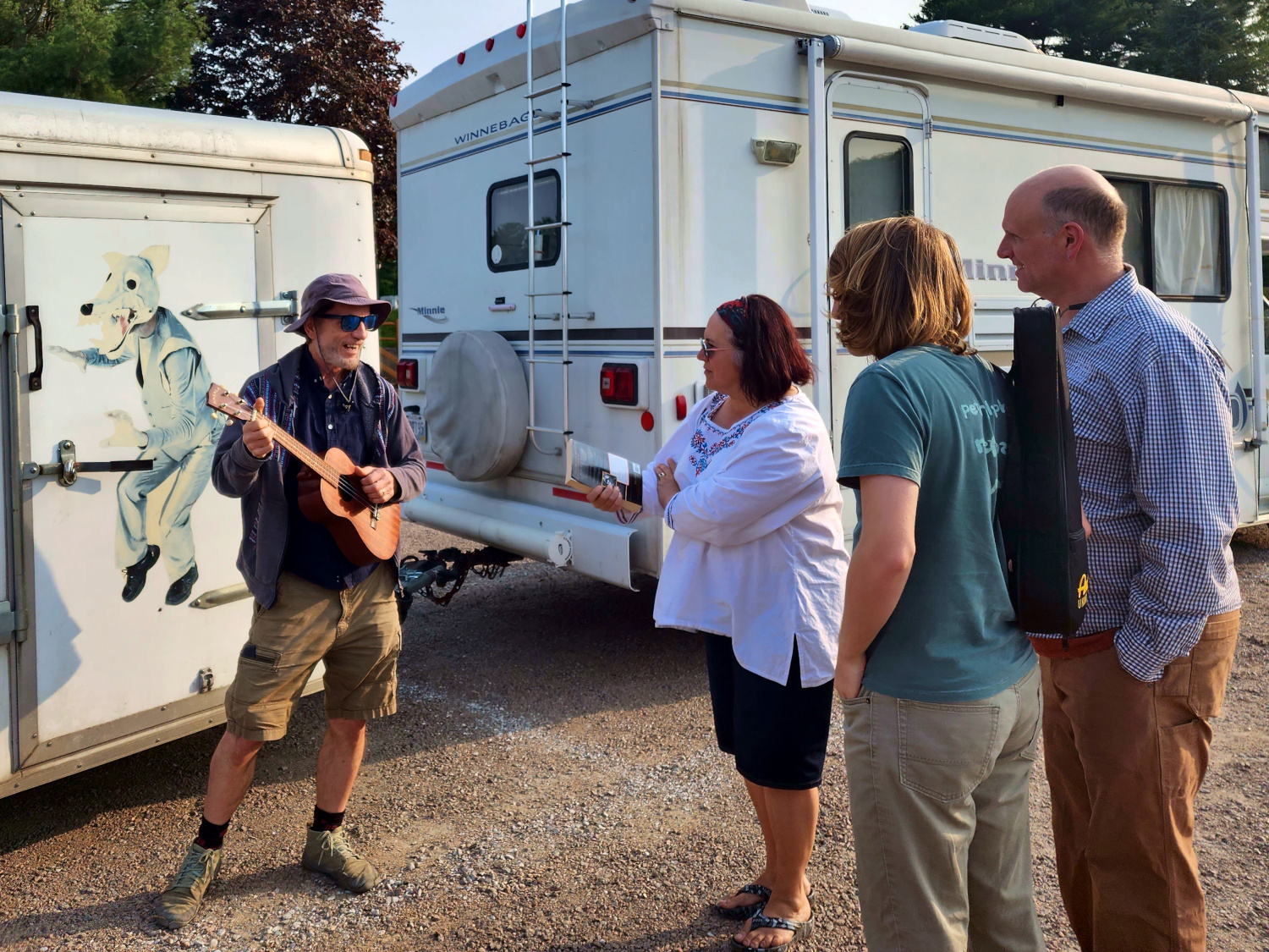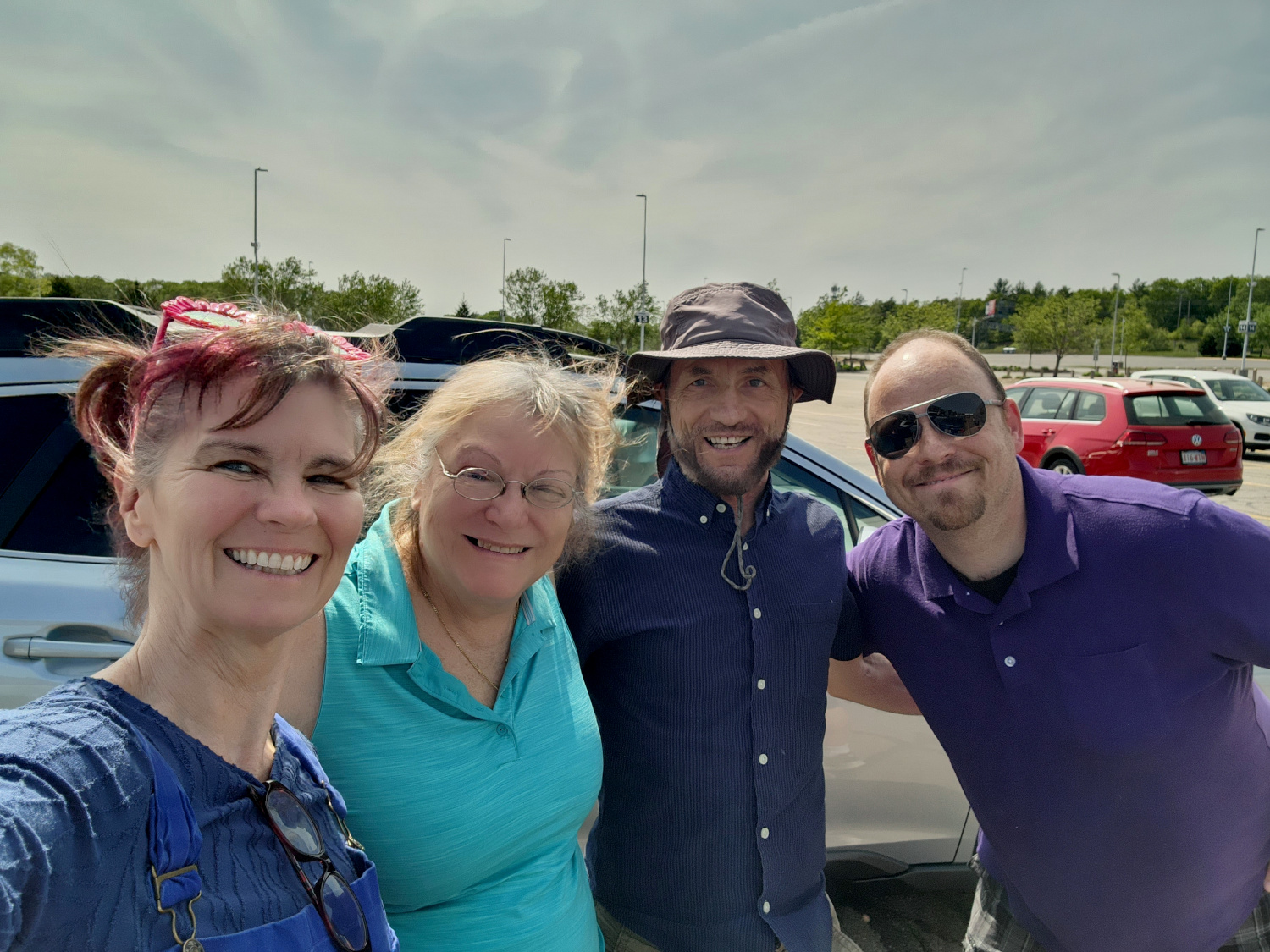Zephyr, as we’ve mentioned, was a homeschooled kid (actually roadschooled, as we were always traveling.) And we knew quite a few other homeschool and/ or RV families. We were able to catch up with one of them, the Weed family, in nearby Foxboro, as they were staying at the Normandy Farms Camping Resort. (“Camping resort” sounds like a bit of an oxymoron to us, but there are quite a few of them out there.) They have three kids, whom we recall seeing as knee-high guys when we were touring the NASA Johnson Space Center near Houston. They’re not knee-high anymore. Since these youngsters have an interest in music, Dennis persuaded them to take his extra ukulele, as we’ve been trying desperately to lighten our load even more than it’s already lightened.