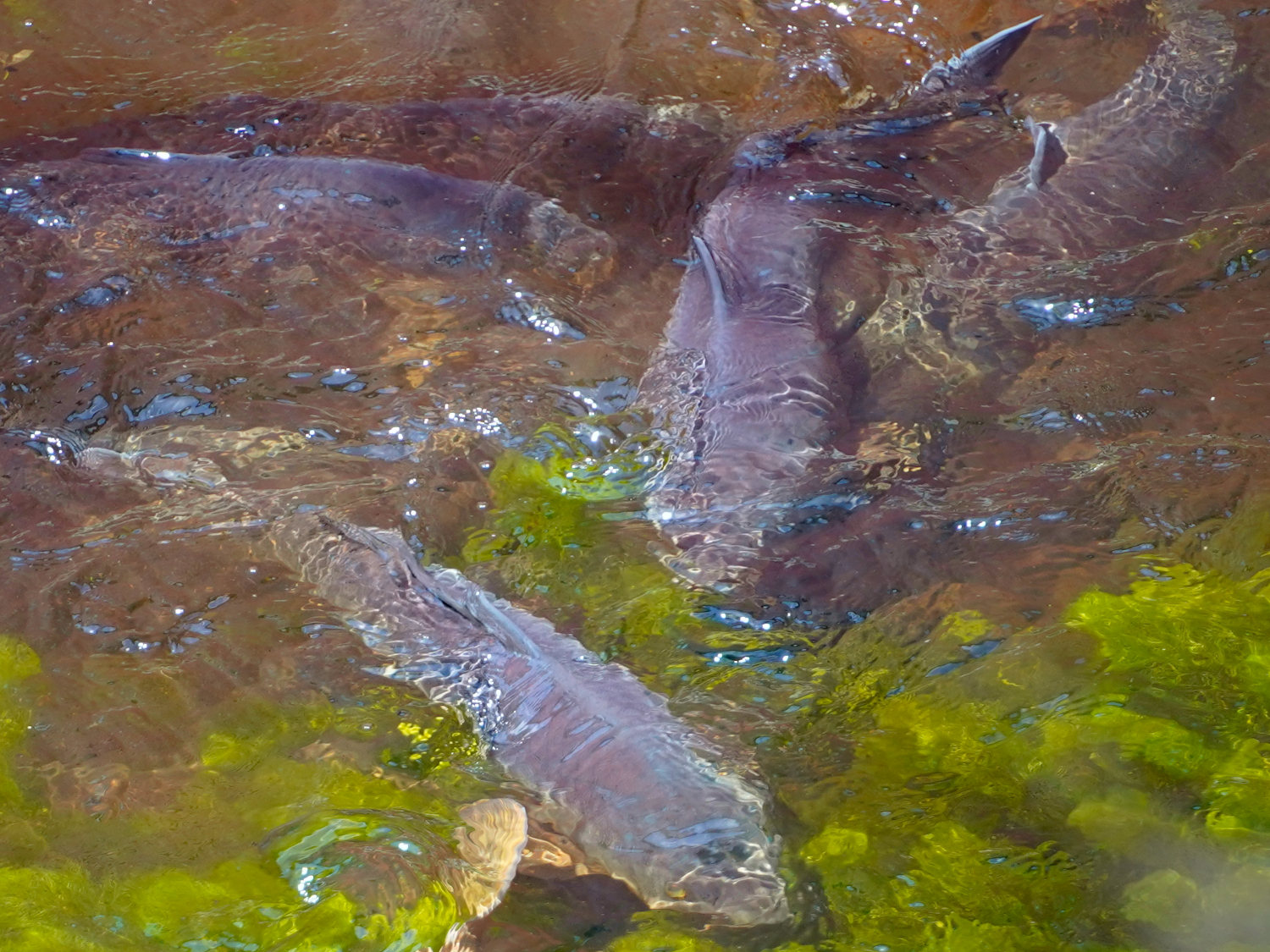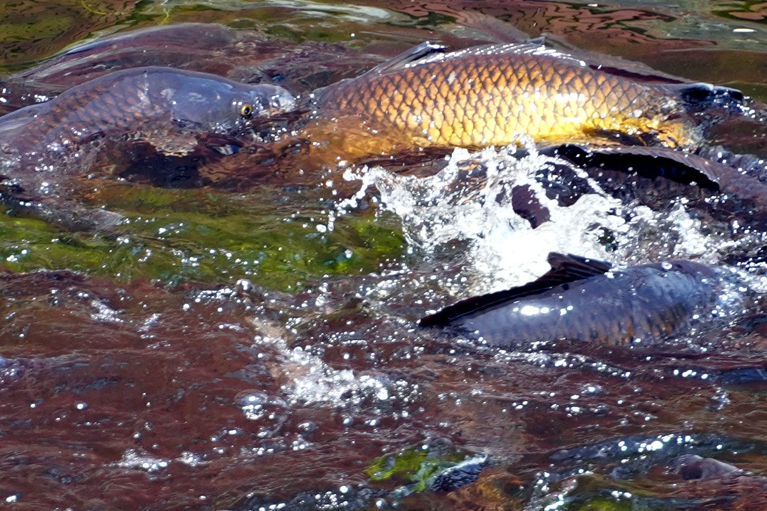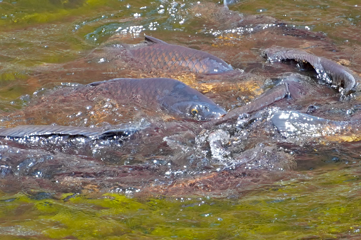 One day we took a walk with friends Jeff and Carol through Balfour Park in Attleboro, alongside the Ten Mile River, and marveled at the many fish that were frolicking on the surface. We’re not sure what variety they were, as we’re not “aFISHionados”, (trout and catfish, among others, are plentiful in this river) but they were so frisky we wondered if perhaps they were mating. As it turned out, yes they were; whatever breed they were, breed they did. As Jeff put it, we had witnessed “fish porn”.