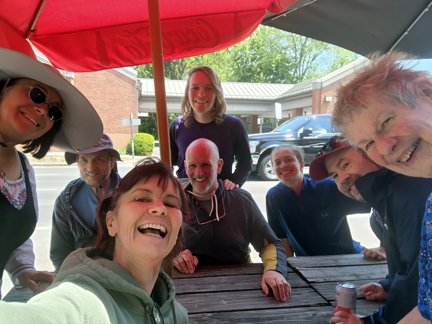 Our plan was to have a cookout, but a storm came along and caused us to relocate everything to the front porch. We still had a good meal and a good time swapping road stories.