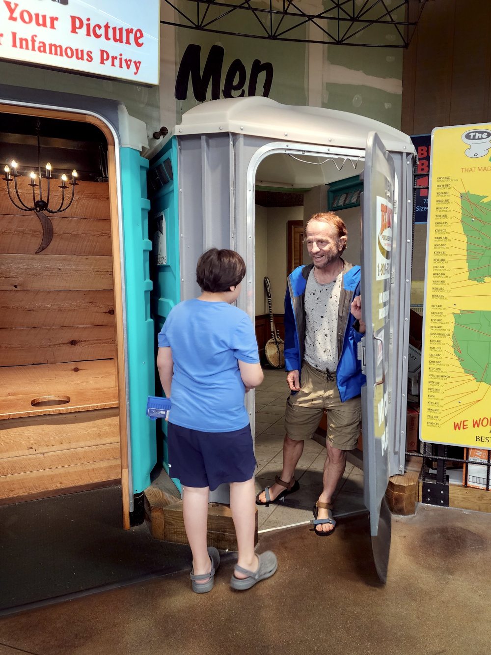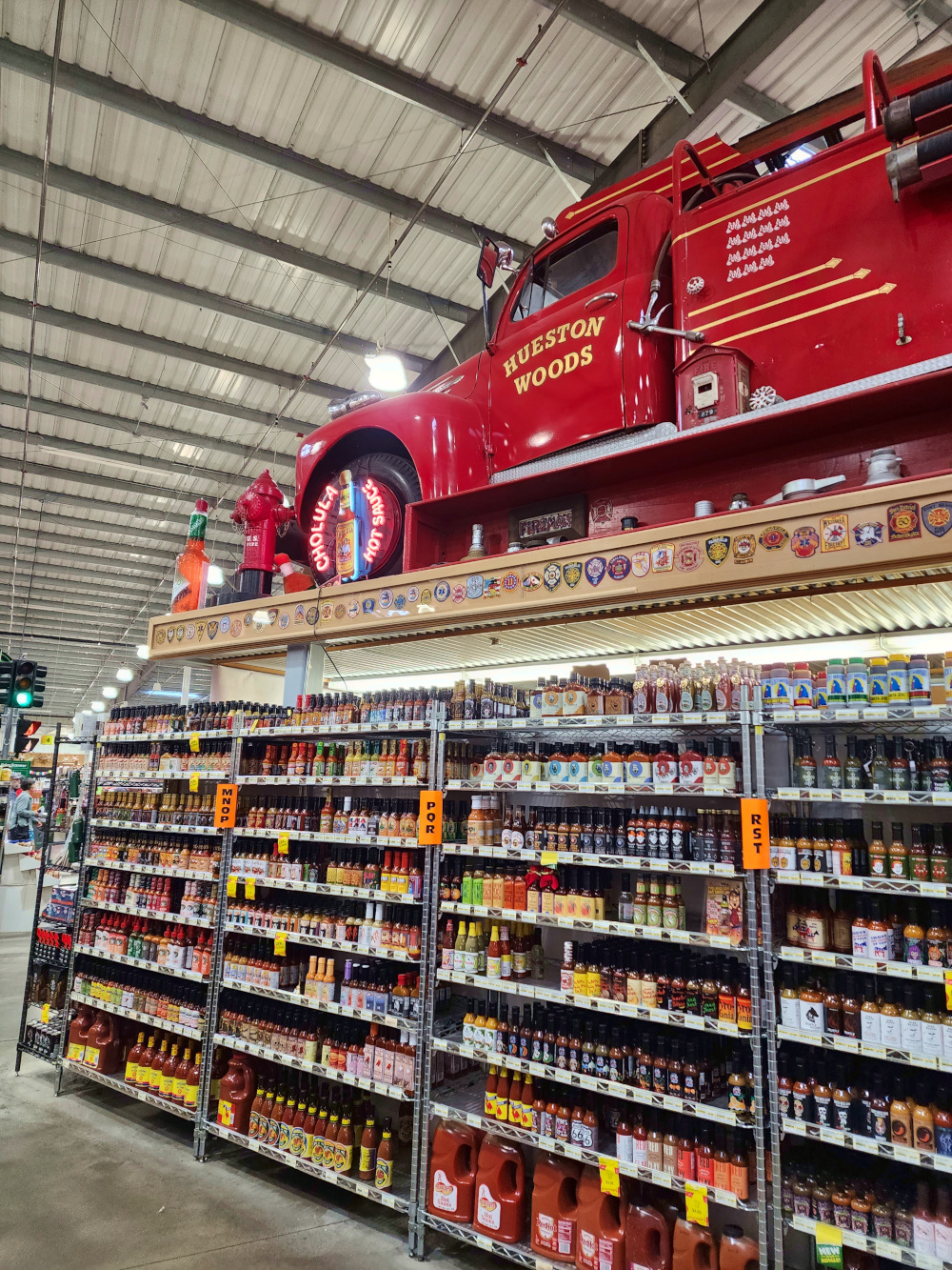 On the inside, even greater wonders await you, hovering somewhere between spectacle and kitsch, with grocery displays highlighted by such items as motorboats and other vehicles. Then there’s the “infamous privy”, a photo op old-fashioned outhouse. (If you happen to need the real thing, modern restrooms are nearby with their entrances disguised to resemble portable toilets).