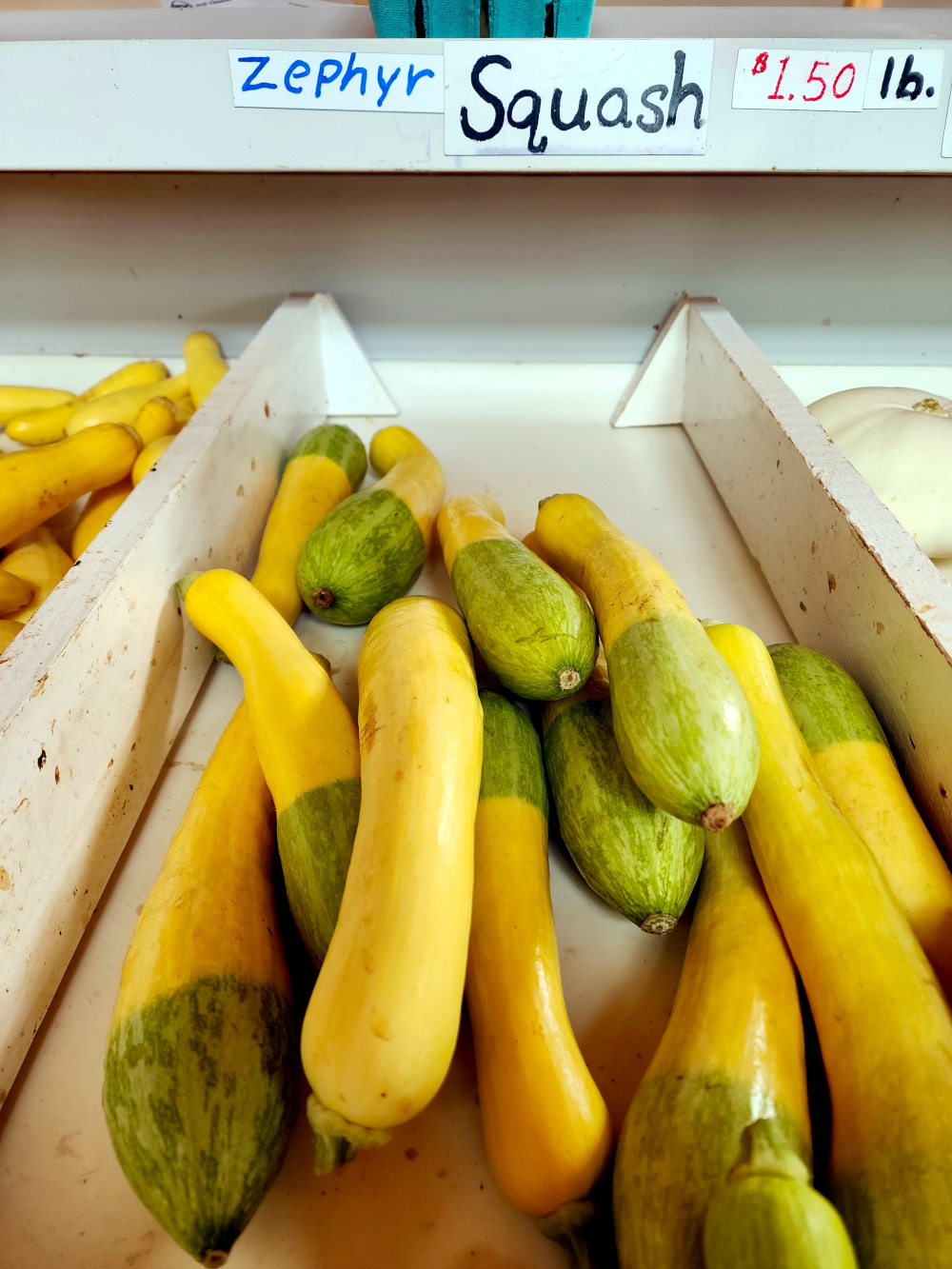 We spent the afternoon driving through the countryside with Gene and Linda. One place we popped in at was an Amish farm that sold produce to the public. And excellent produce it was too, including a section of (drumroll please) zephyr squash. We’ve seen this particular vegetable before, but never realized it was named after our son.