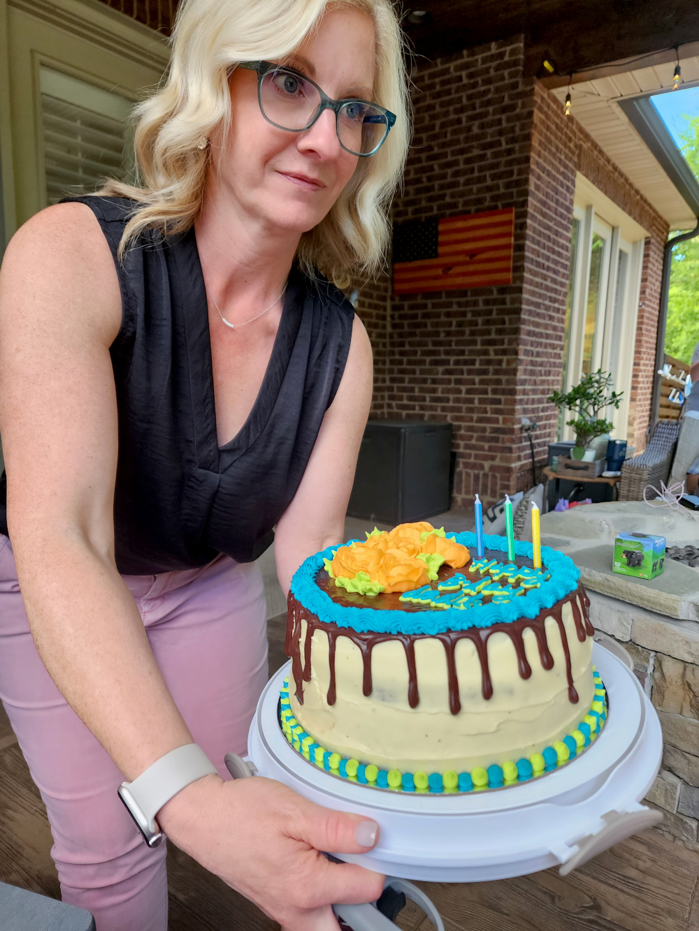 Back at home, which in this case was the home of our nephew Jake and his wife Kellie (he’s a dentist with a practice in the area), we celebrated Jake’s birthday with a family gathering. And it was a good place to have a birthday gathering, because among other things he has a swimming pool. He also has two kids who are a lot of fun.